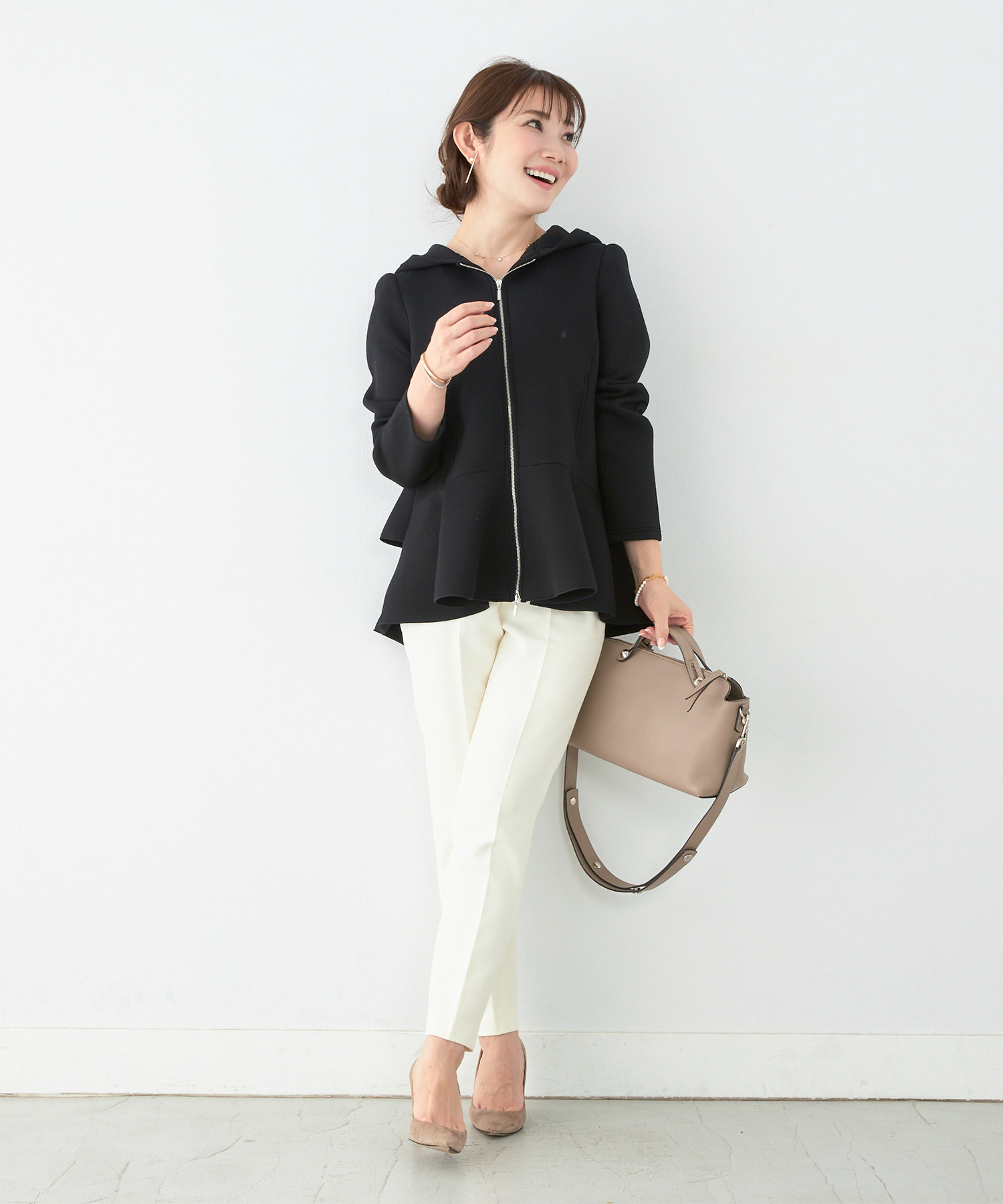 バックフリルを施すことで後ろ姿まで女性らしい印象に仕上げた、ジャケットスタイルをアップデートしたい方にもオススメの一着です。