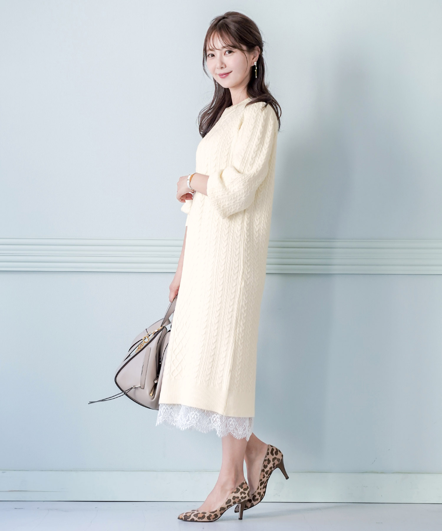 こちらはデザインで裾にレースが付いているので、少し短くなっても気になりにくい丈感。