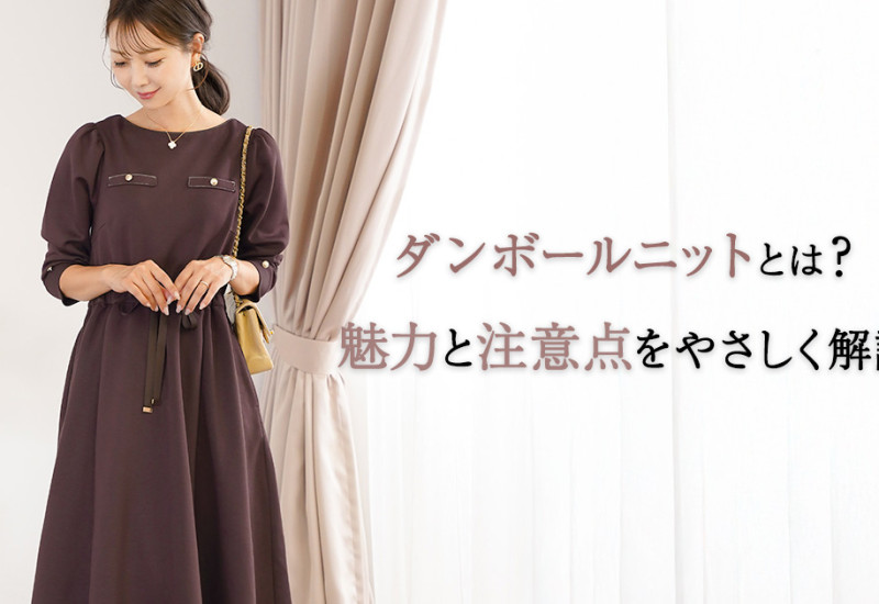 軽くて伸縮性抜群のダンボールニットで出来たワンピースはカジュアルに見えすぎない素材感で
