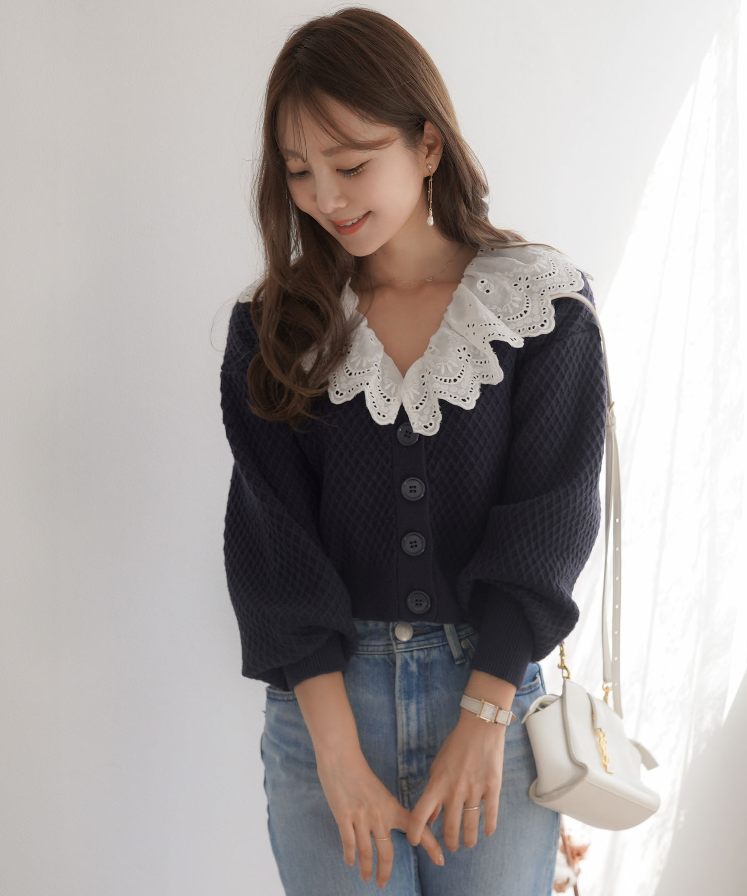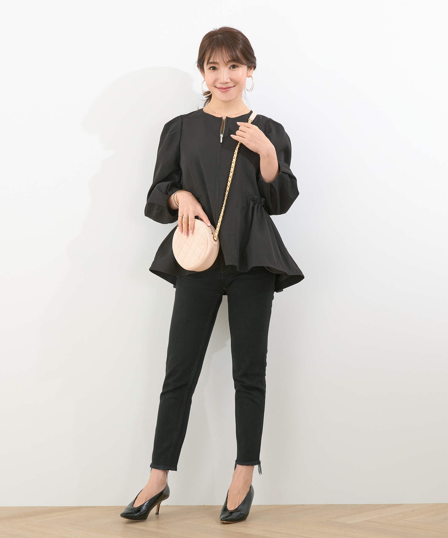 トレンドライクなボリューム感のあるバルーンスリーブは着膨れの不安がありますよね。そんな時は”引き算”されたデザインがポイントになってきます。