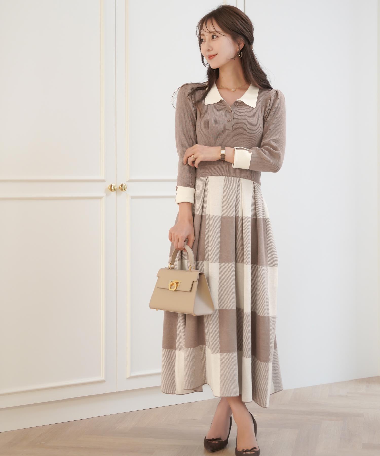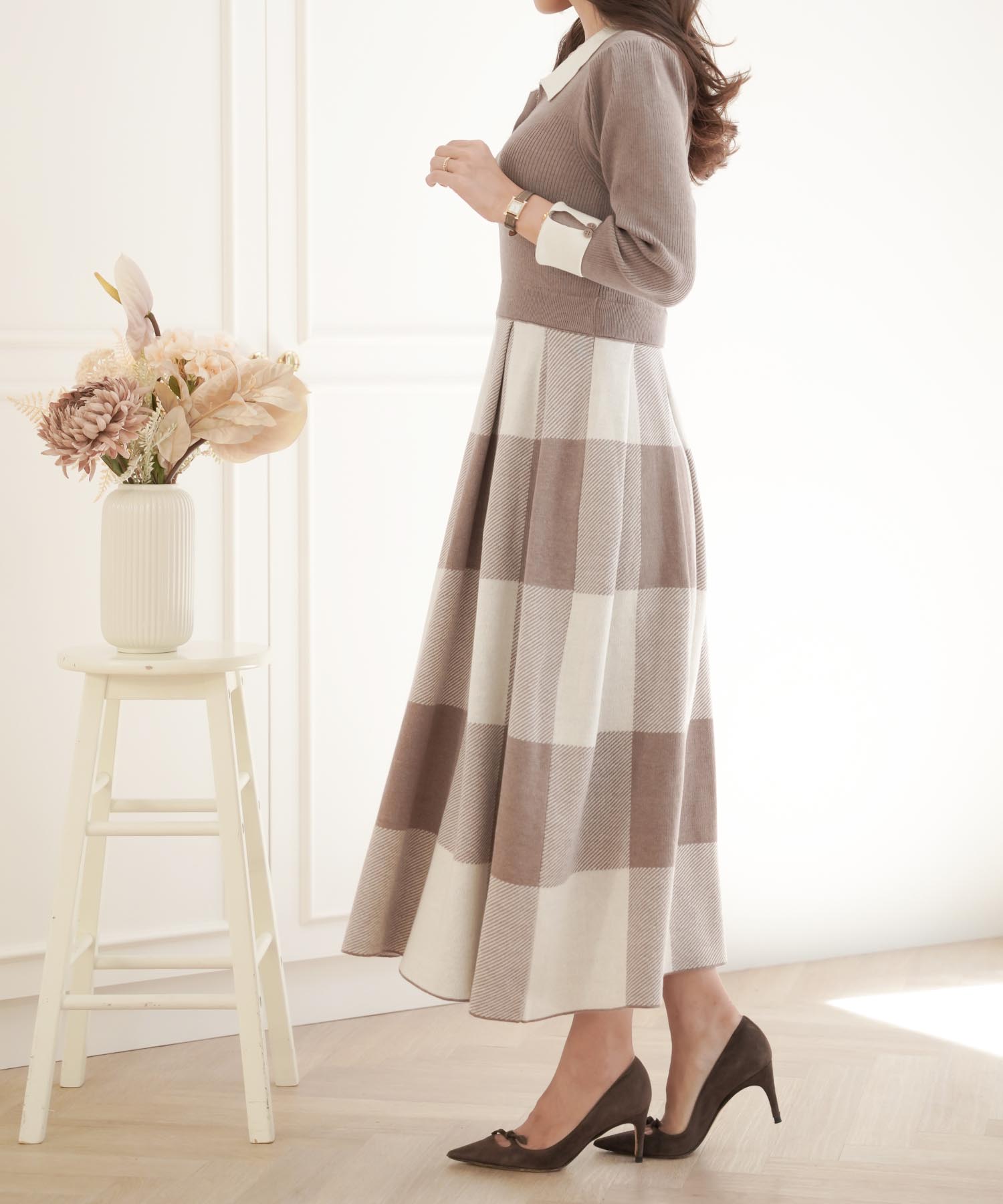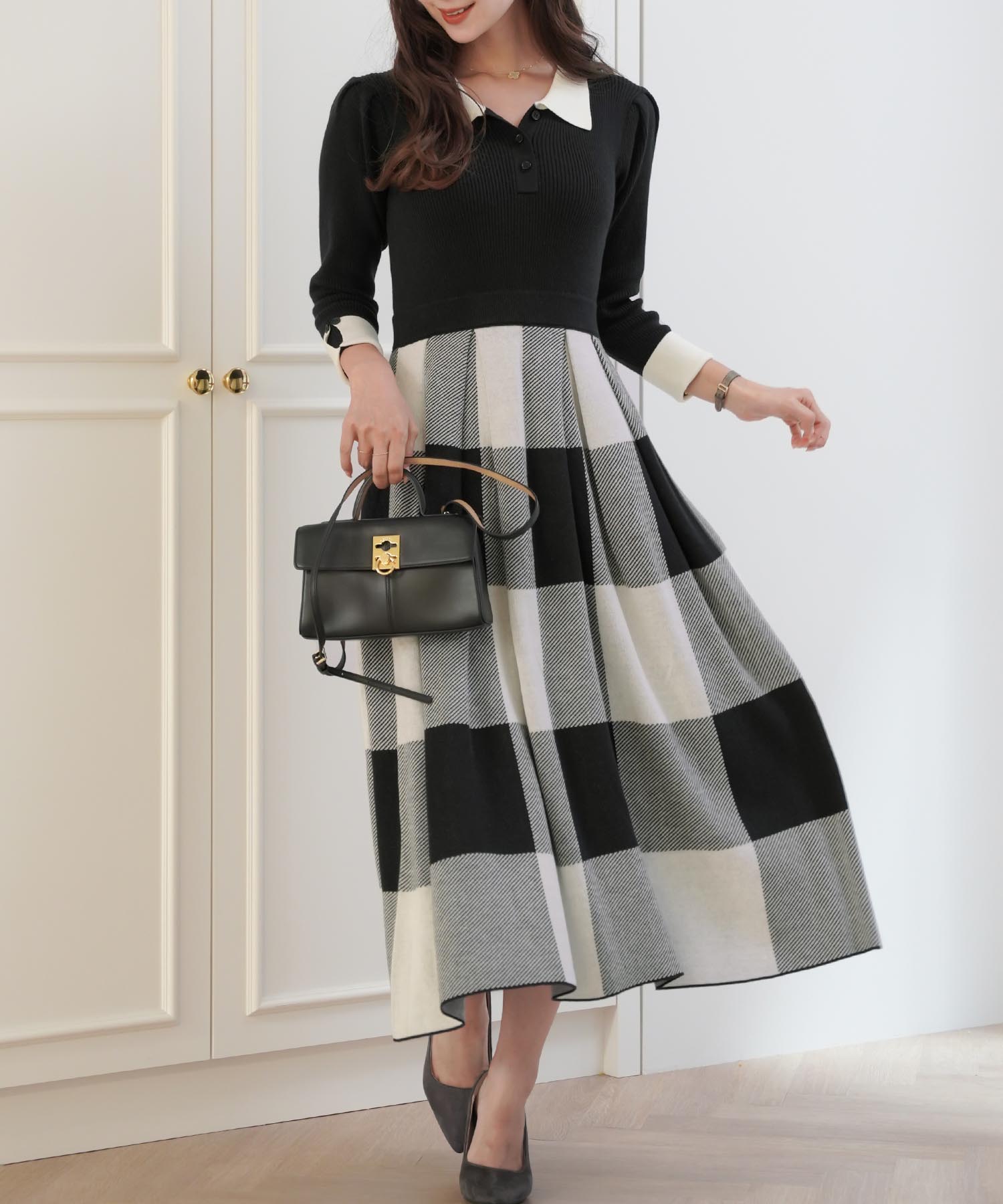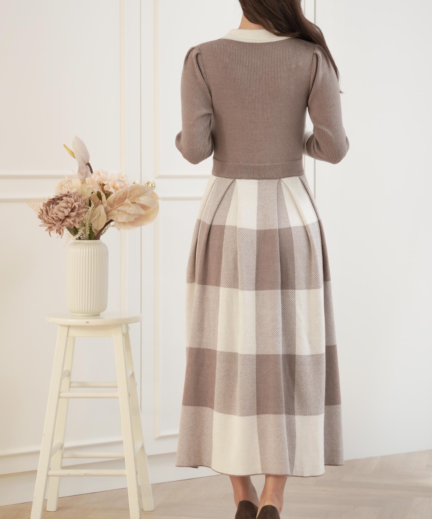 ■チェック柄のニットワンピース