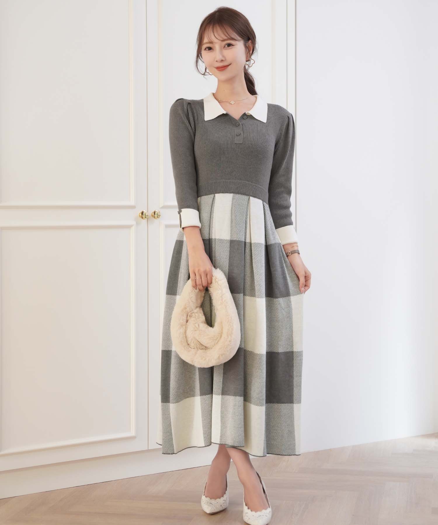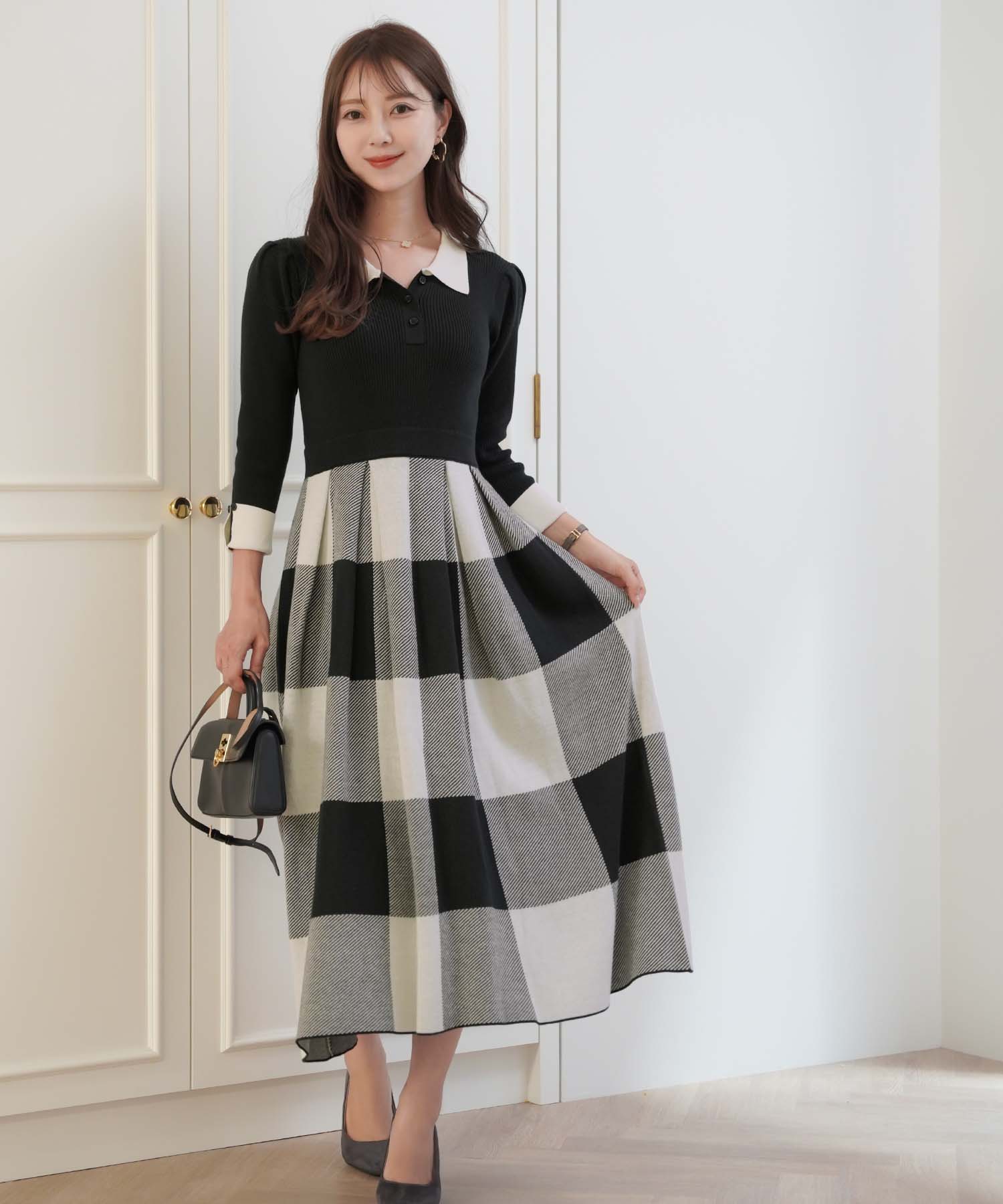 チェック ジャガード ニット ワンピース (le reve vaniller)¥16,390