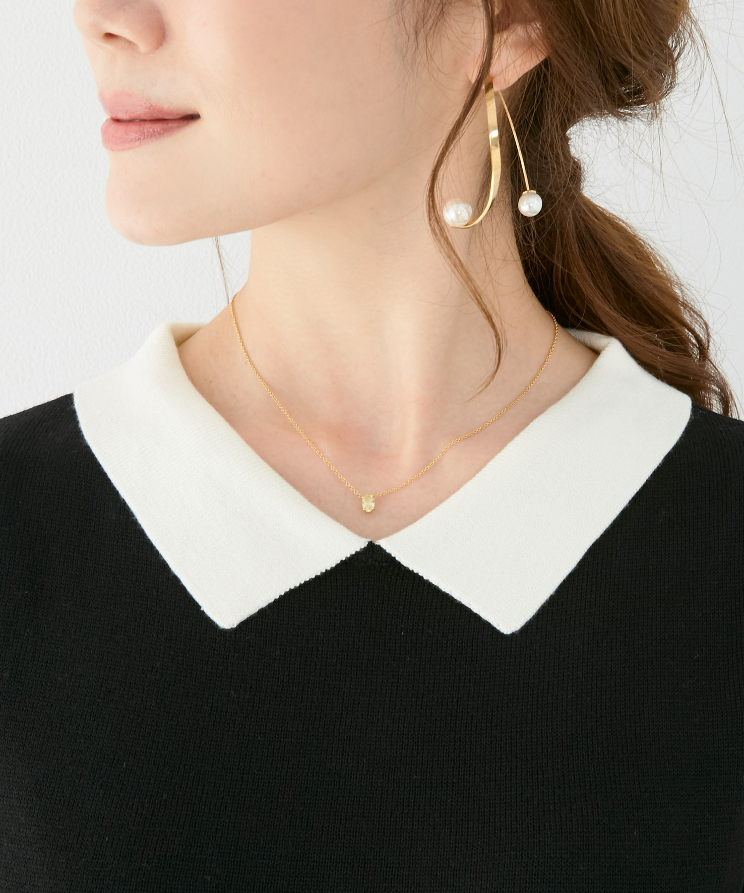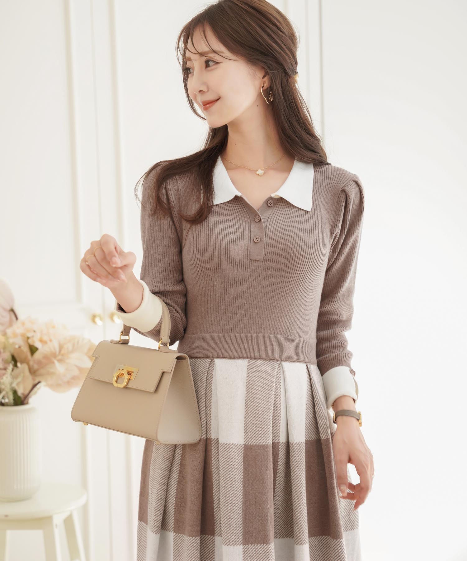 ■首元パールのニットワンピース