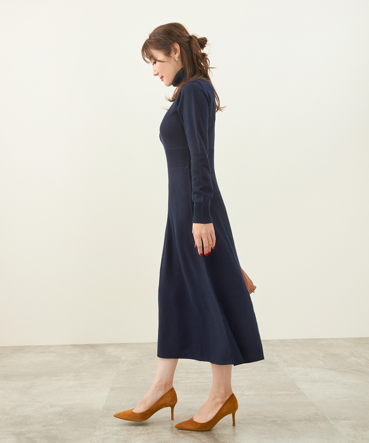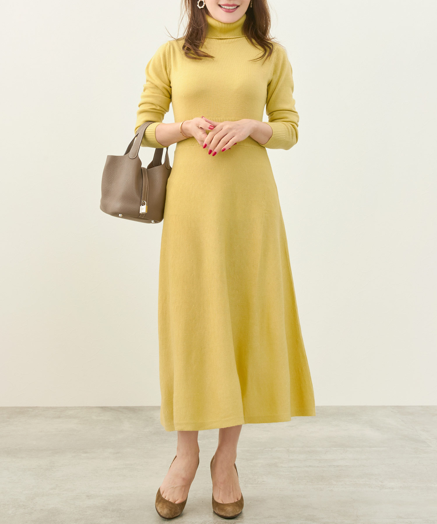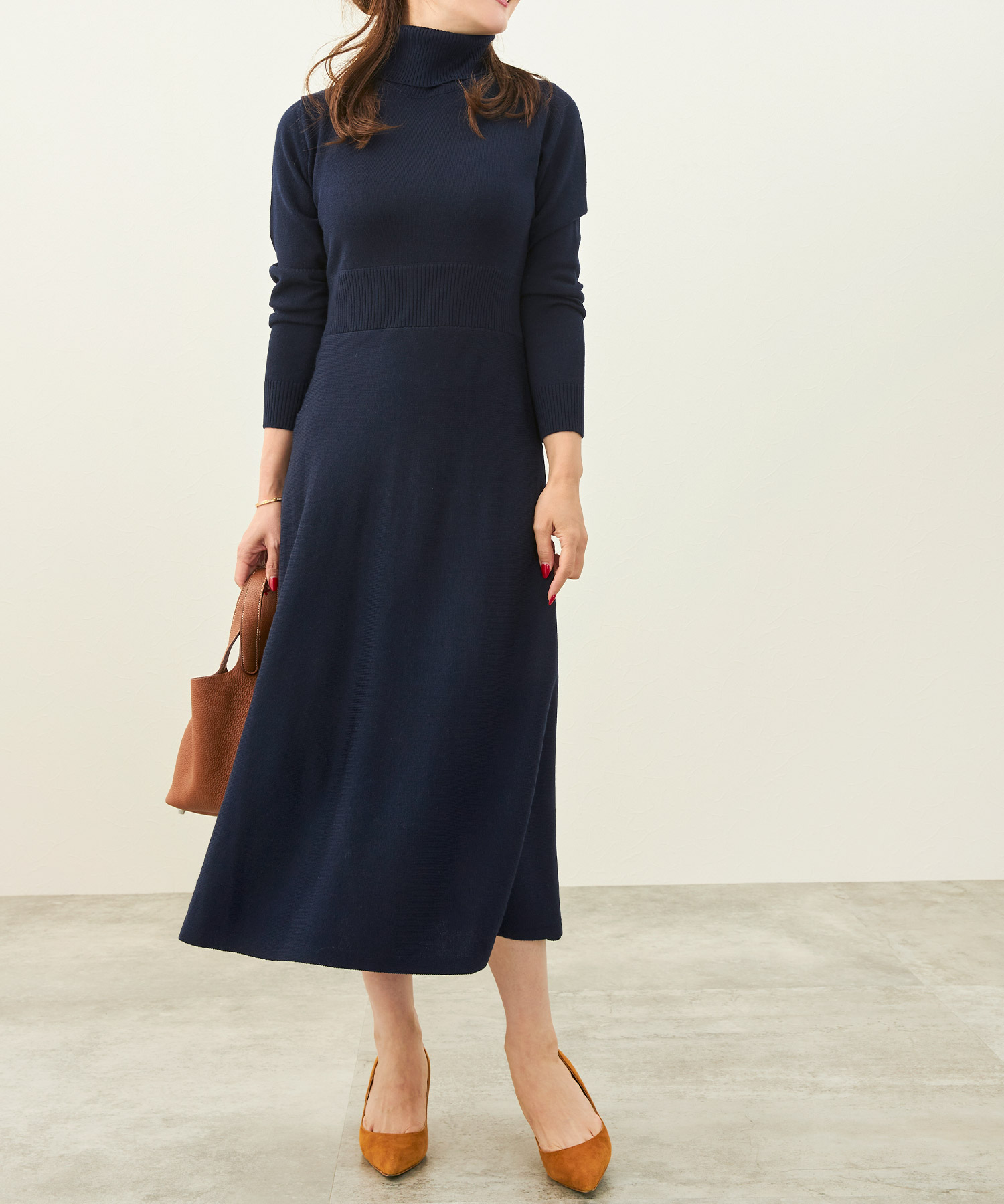 ■上品な落ち感のハイゲージニットワンピース