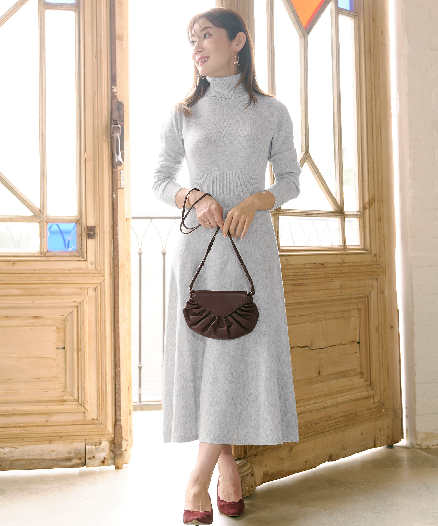 POINT1:温かくて動きやすいニットワンピースなら、長時間の座り移動も快適です