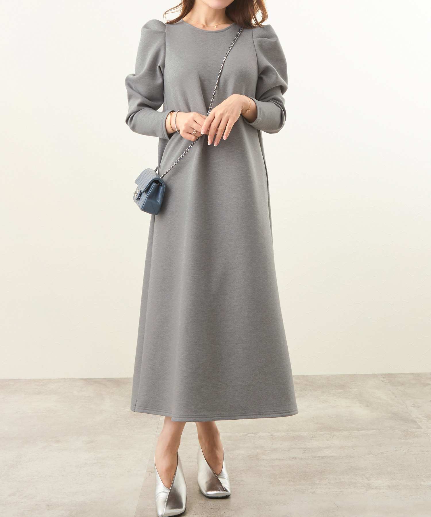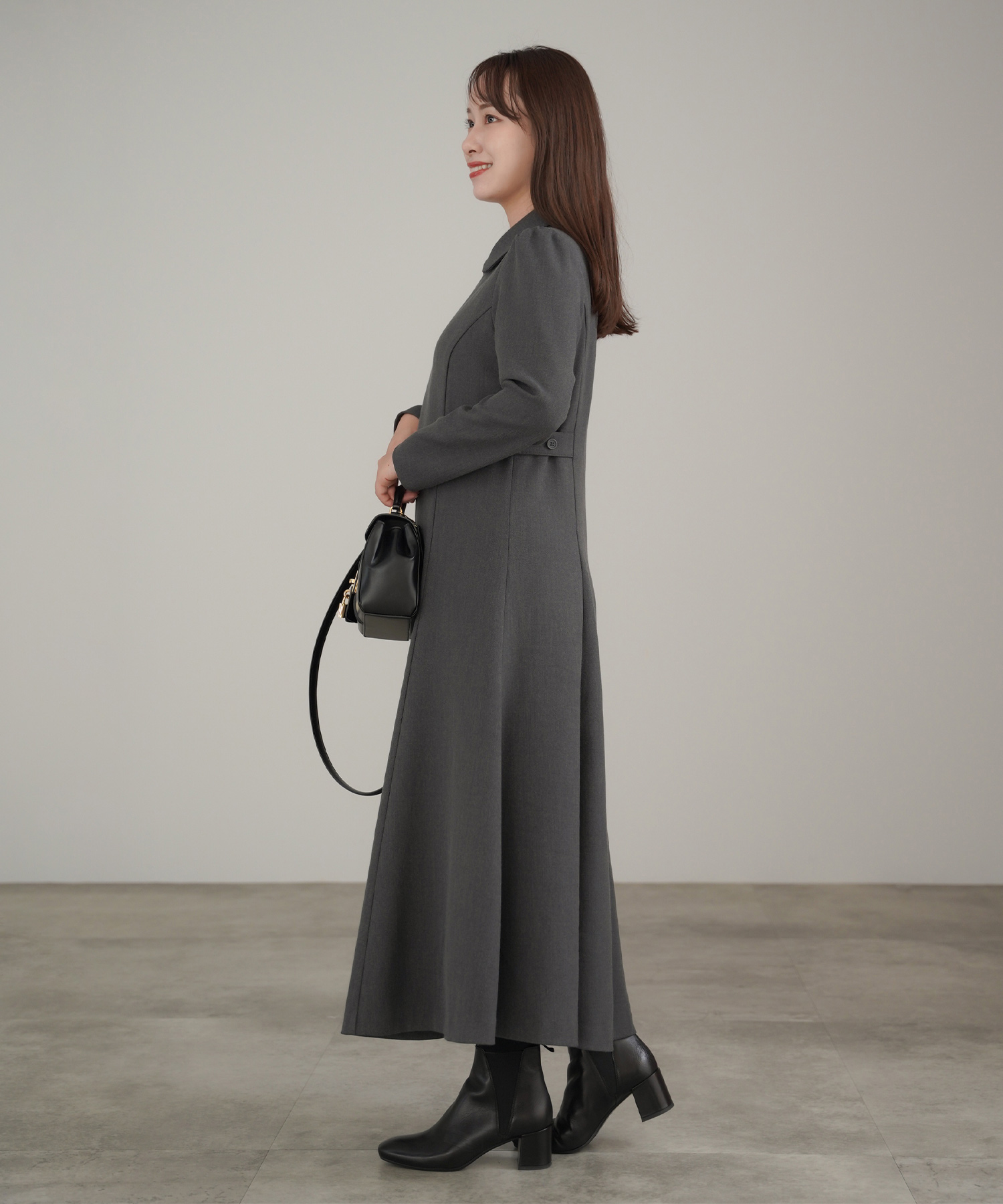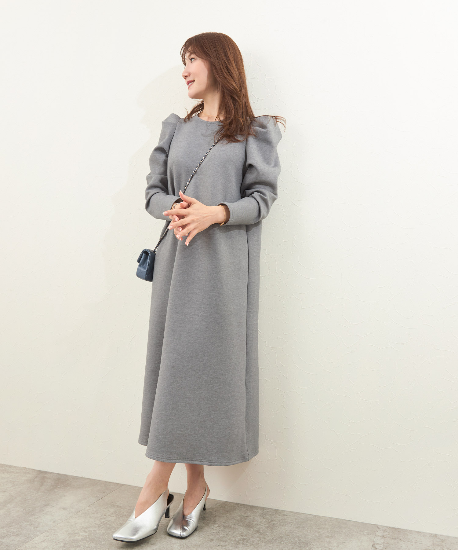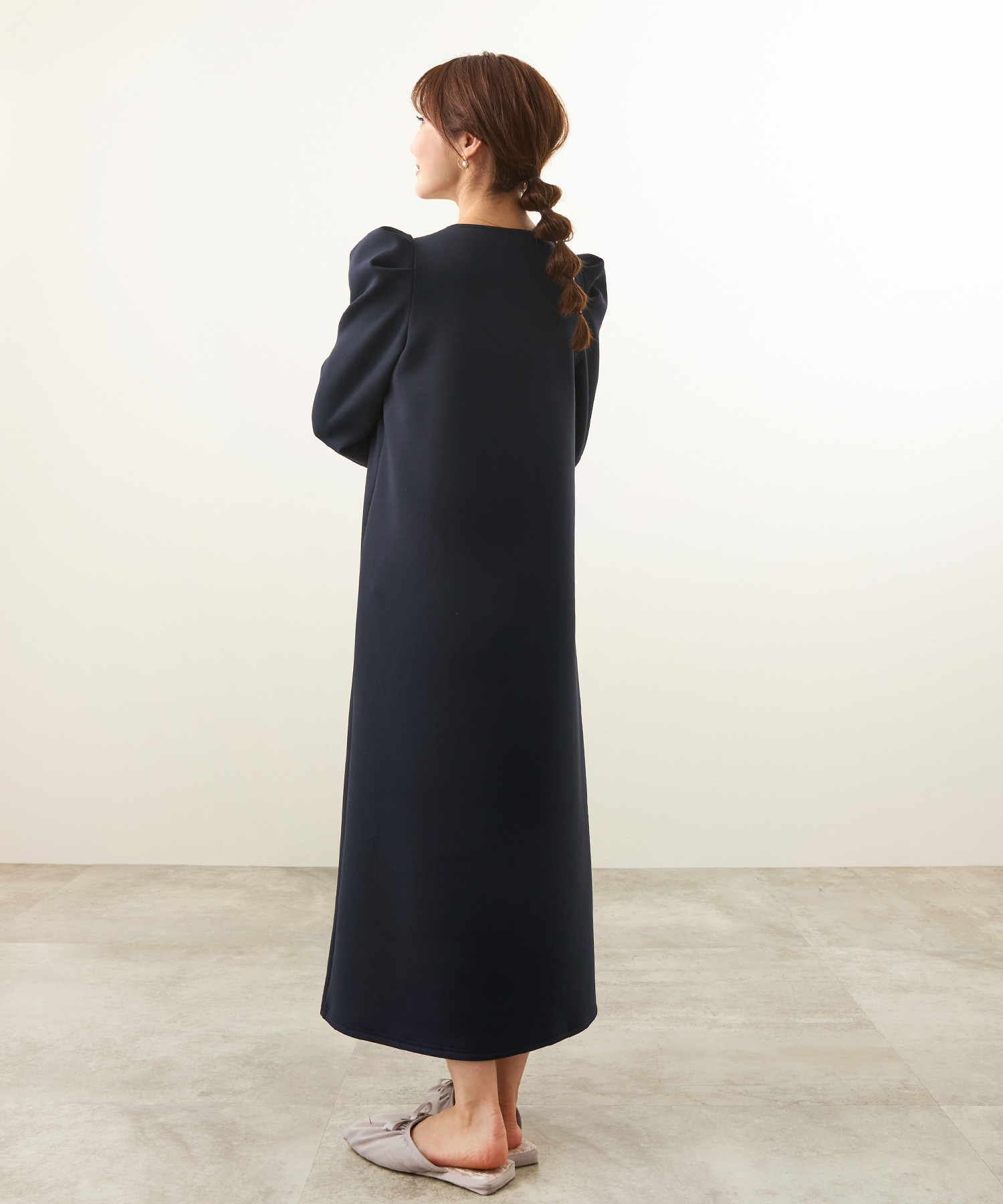 リラクシーな形ながら袖にタックが入りさり気なくエレガントに決まるワンピース。適度な肉感と張りを持ちながらスポンジィで軽量な素材を使用。さらに保温性があるので初詣スタイルにもぴったりです。