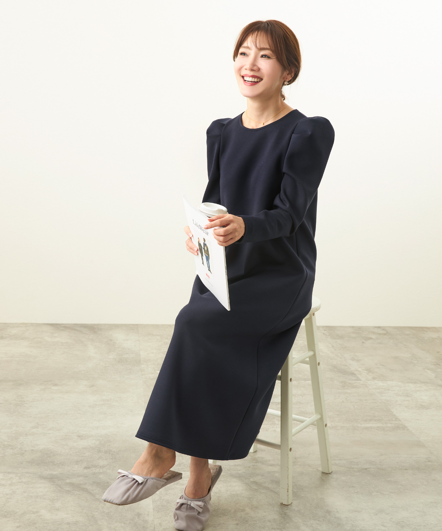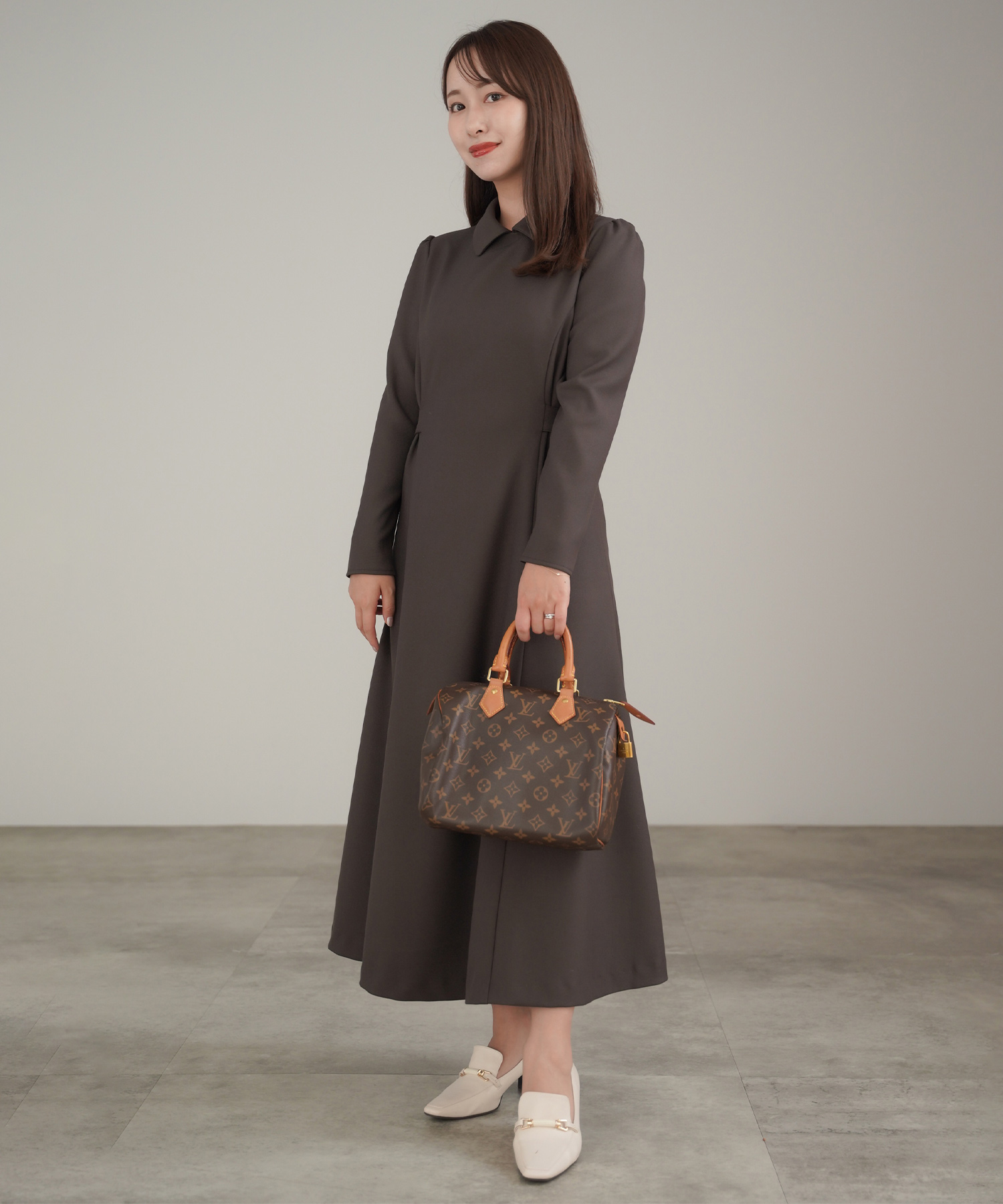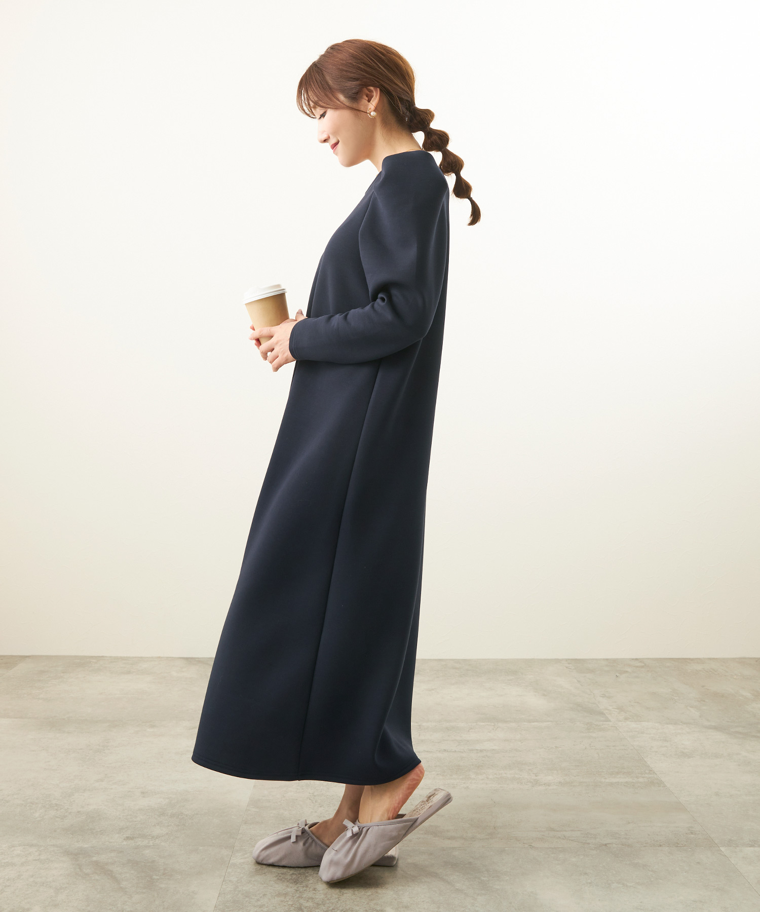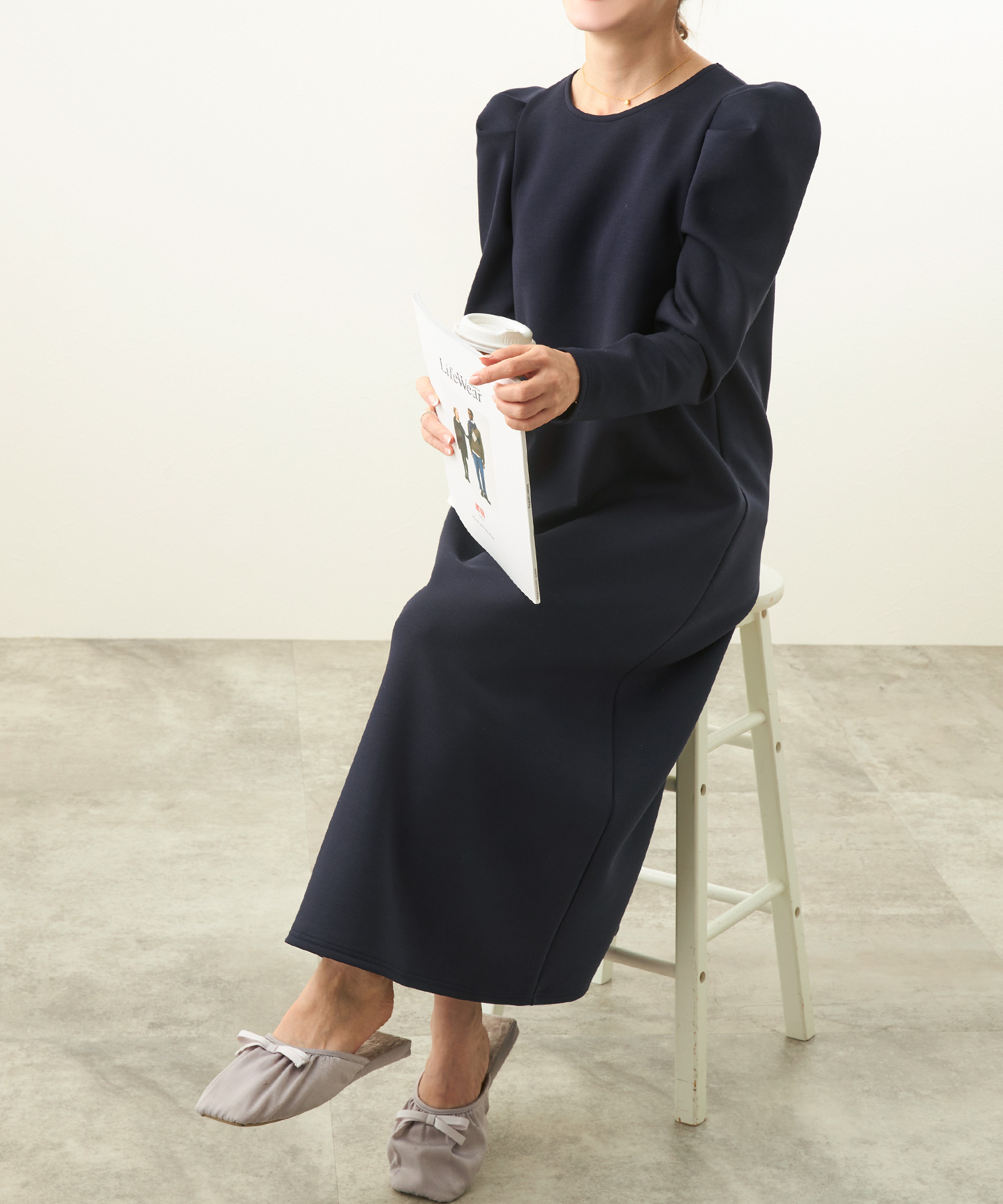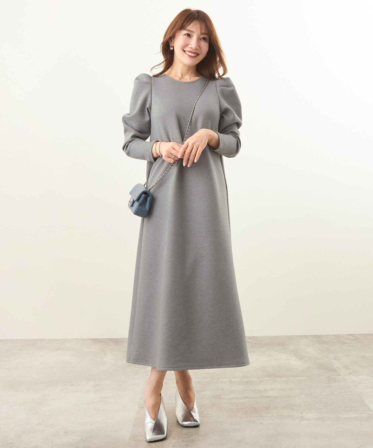 リラクシーな形ながら袖にタックが入りさり気なくエレガントに決まるワンピース。適度な肉感と張りを持ちながらスポンジィで軽量な素材を使用。さらに保温性があるので初詣スタイルにもぴったりです。