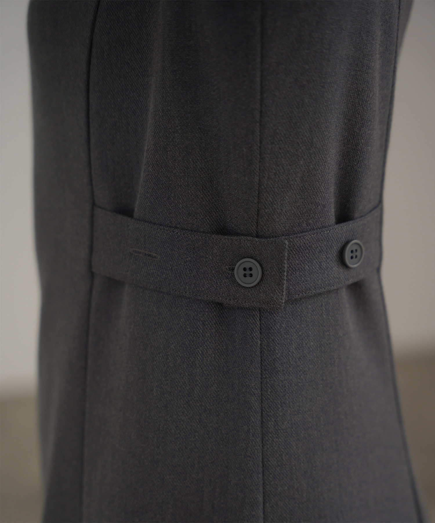 高級感のあるサージを使用したワンピースならエレガントできちんとした印象をあたえます。デザインポイントにもなっているサイドベルトは留め方次第でストレートにもフィットアンドフレアシルエットにも変えることのできる2way。見え方の変化を楽しめるところもこちらのワンピースの魅力です。