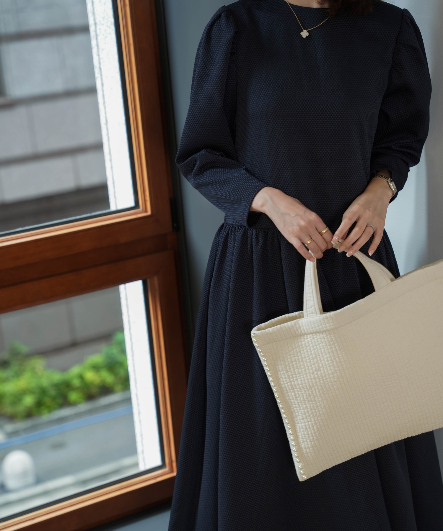 ふっくらとしたキルティング素材を使用したコクーンシルエットのスカートです。ボリューム感がありながらも、丸みのあるラインが上品で、ニットを合わせるだけで冬のレストランディナーにぴったりのコーディネートに。ウエストまわりはすっきりと仕立てているので、タックインスタイルもバランス良く決まります。
