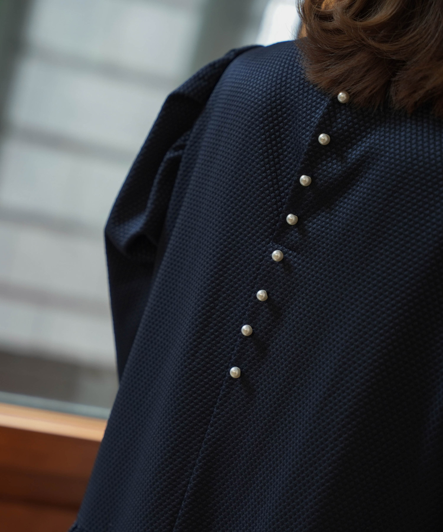 キラキラとしたツイードとレース襟が華やかさを添える一枚です。控えめなパフスリーブとやや長めの着丈が、二の腕やヒップまわりをさりげなくカバーしてくれる頼れるトップス。一枚でほどよくドレスアップ感が出るので、パンツスタイルでホテルディナーに行きたい方にもおすすめです。