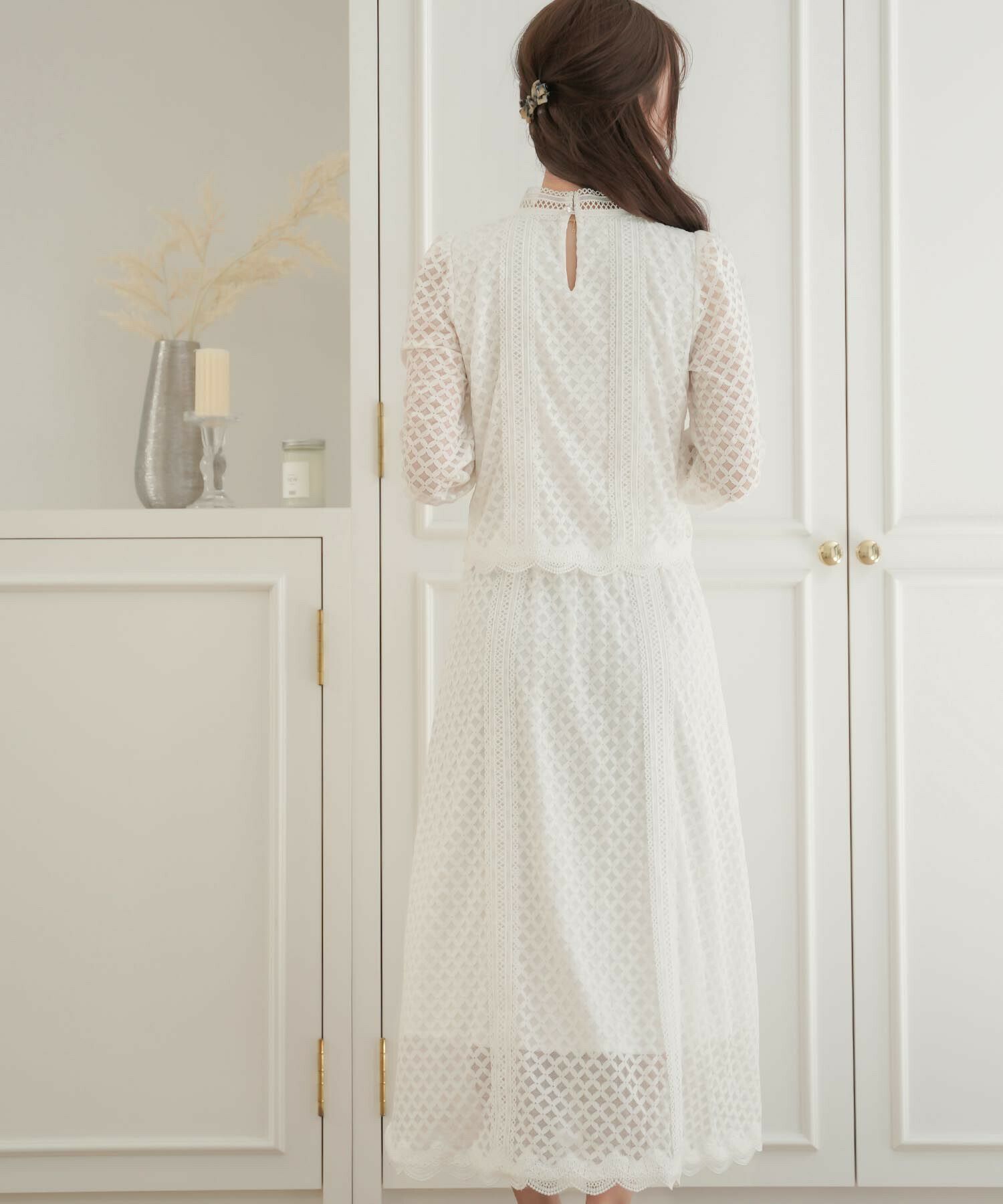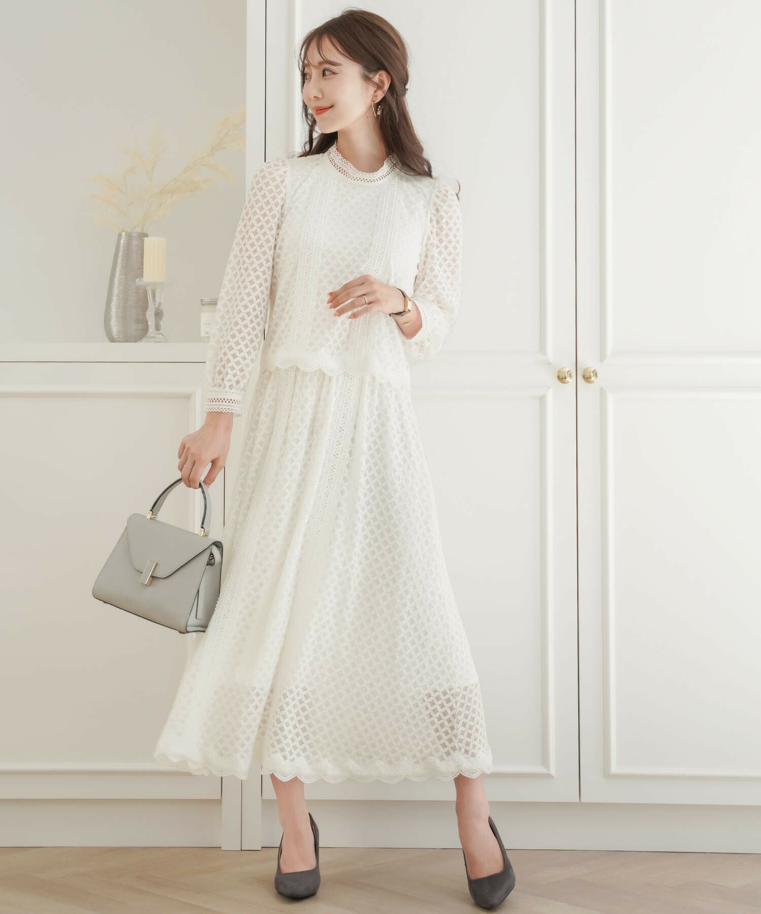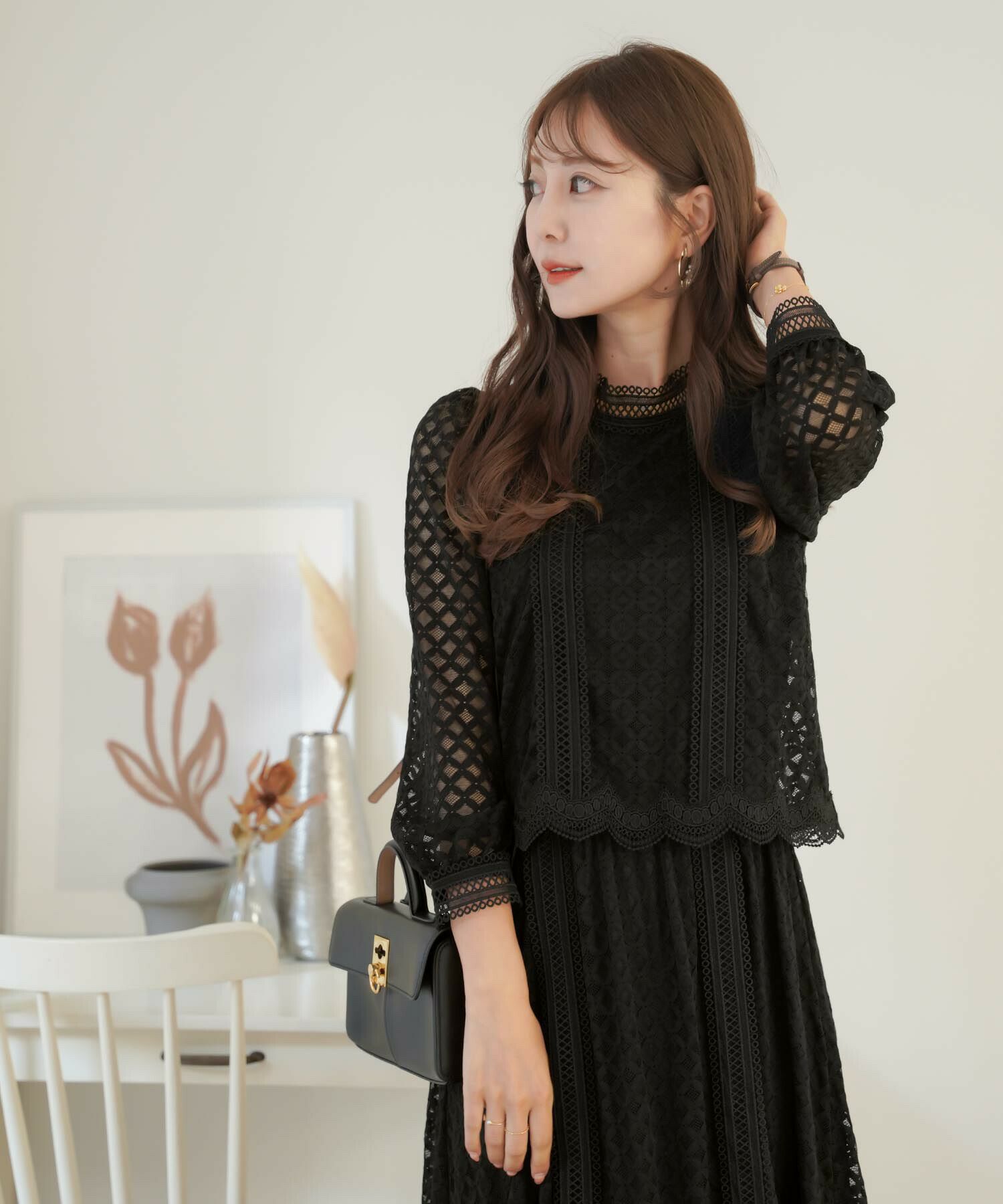繊細なレース襟とフィット&フレアシルエットが魅力のワンピースです。ウエストはすっきりと、裾に向かってふんわり広がるラインが、特別な日のディナーシーンにもふさわしい華やかさを演出。タイツやパンプスを合わせるだけで、上品で写真映えするコーディネートが完成します。