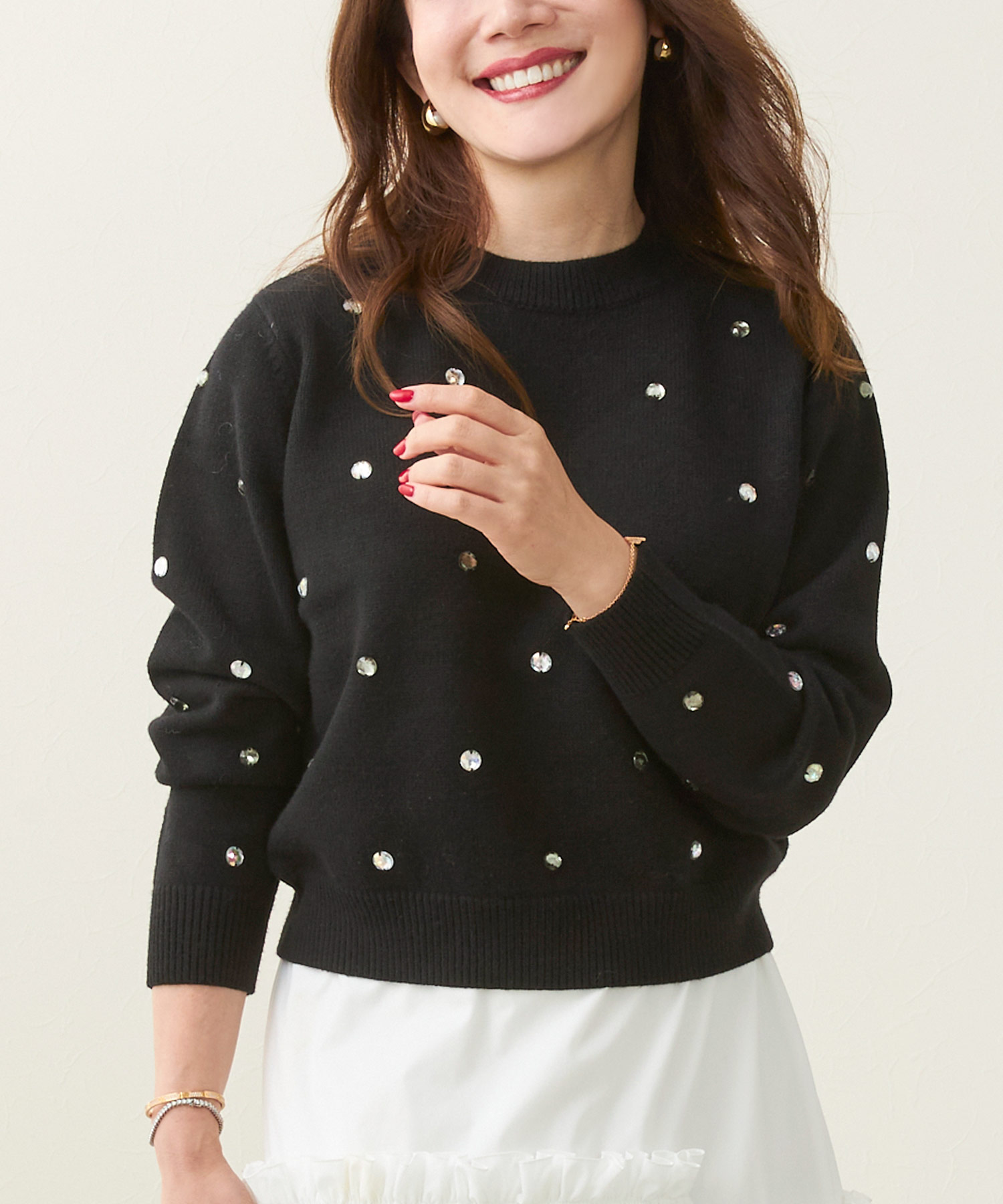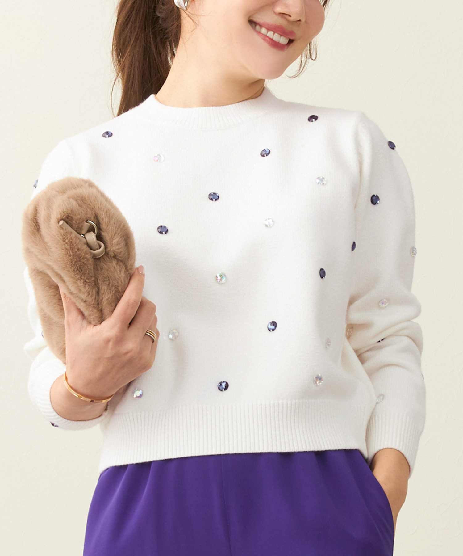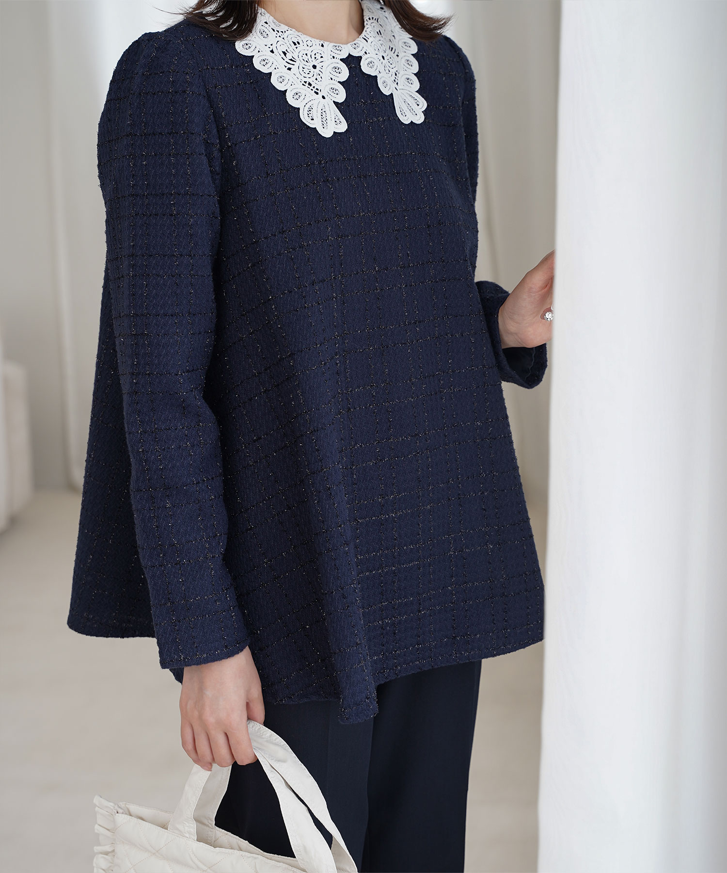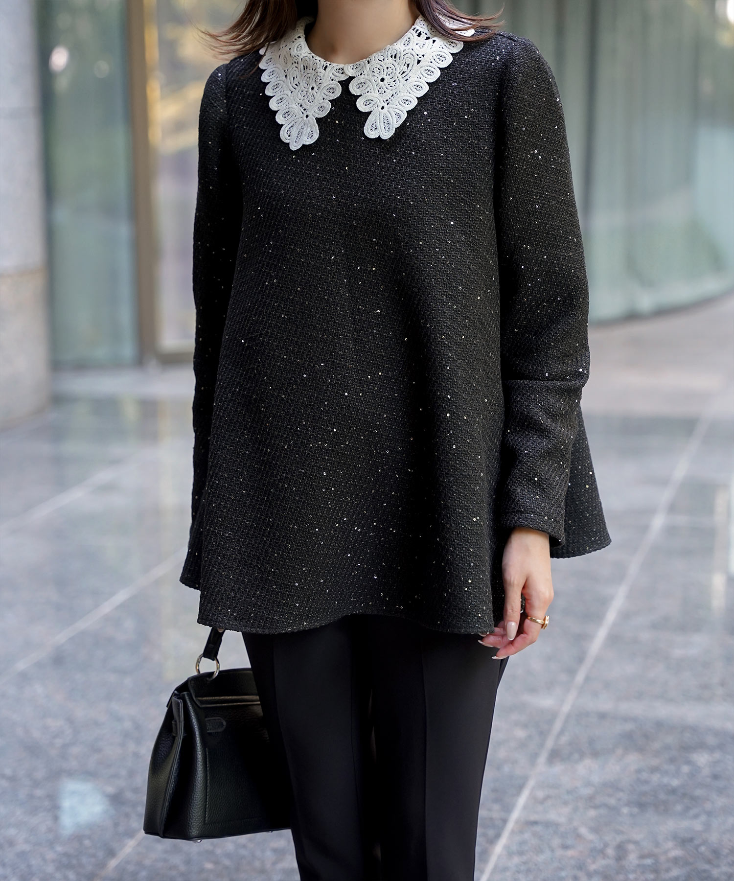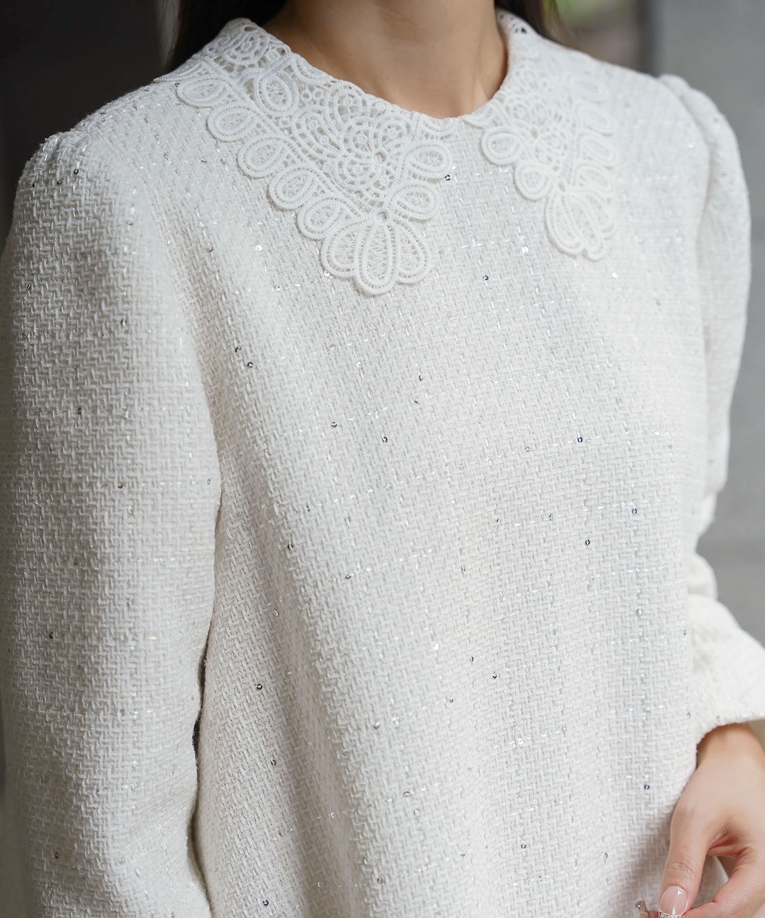 レース襟付き スパンコール ツイード トップス(HUIT bouquet) ¥9,790(税込)