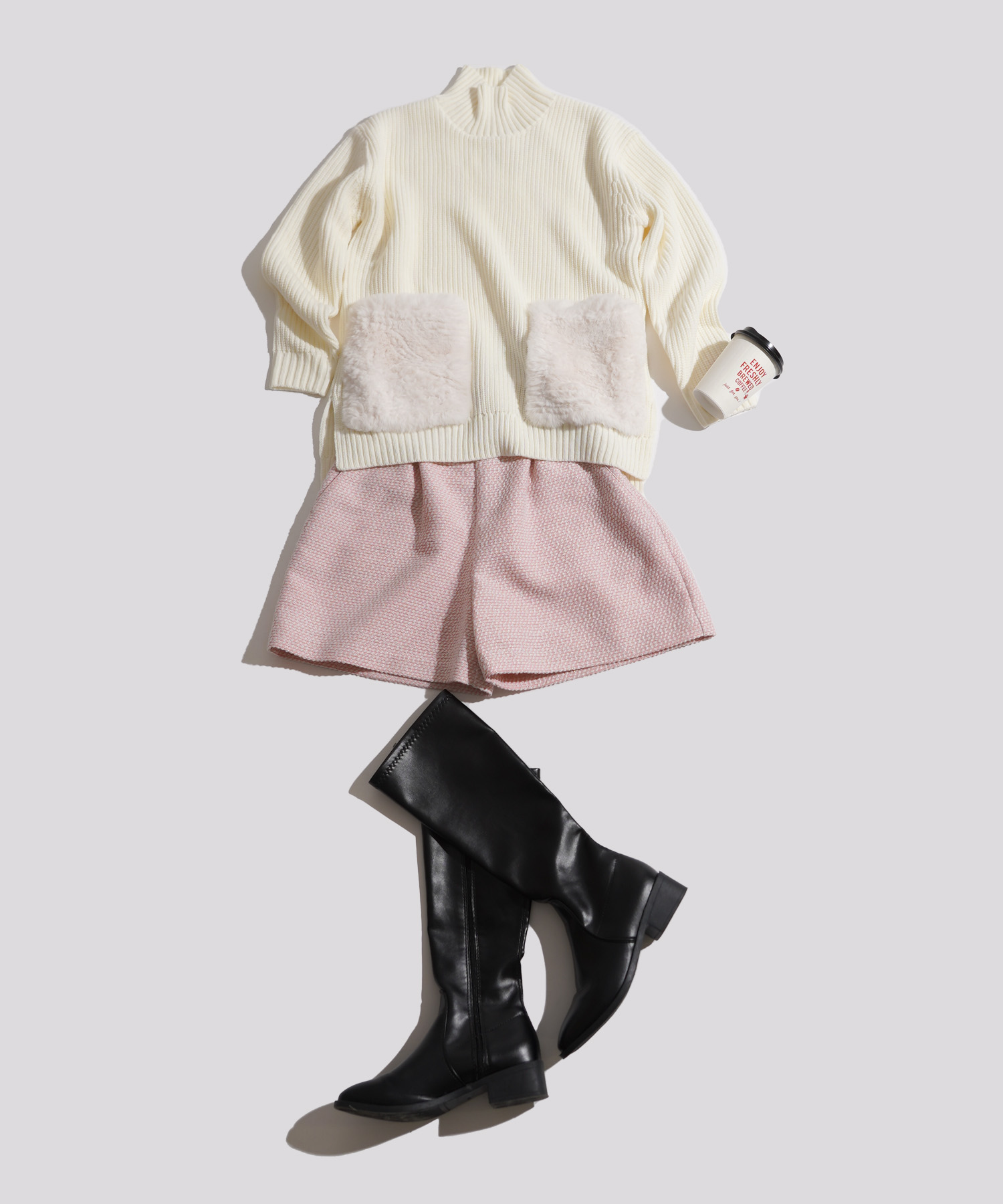 トレンドのショートパンツもデート服にぴったりのアイテム。ショート丈だと太ももの張りが気になるという人もフレアシルエットなら体型カバーが叶います。さらに今シーズン注目のロングブーツをプラスすればカジュアル見えし過ぎず、大人っぽいショートパンツコーデが完成します。