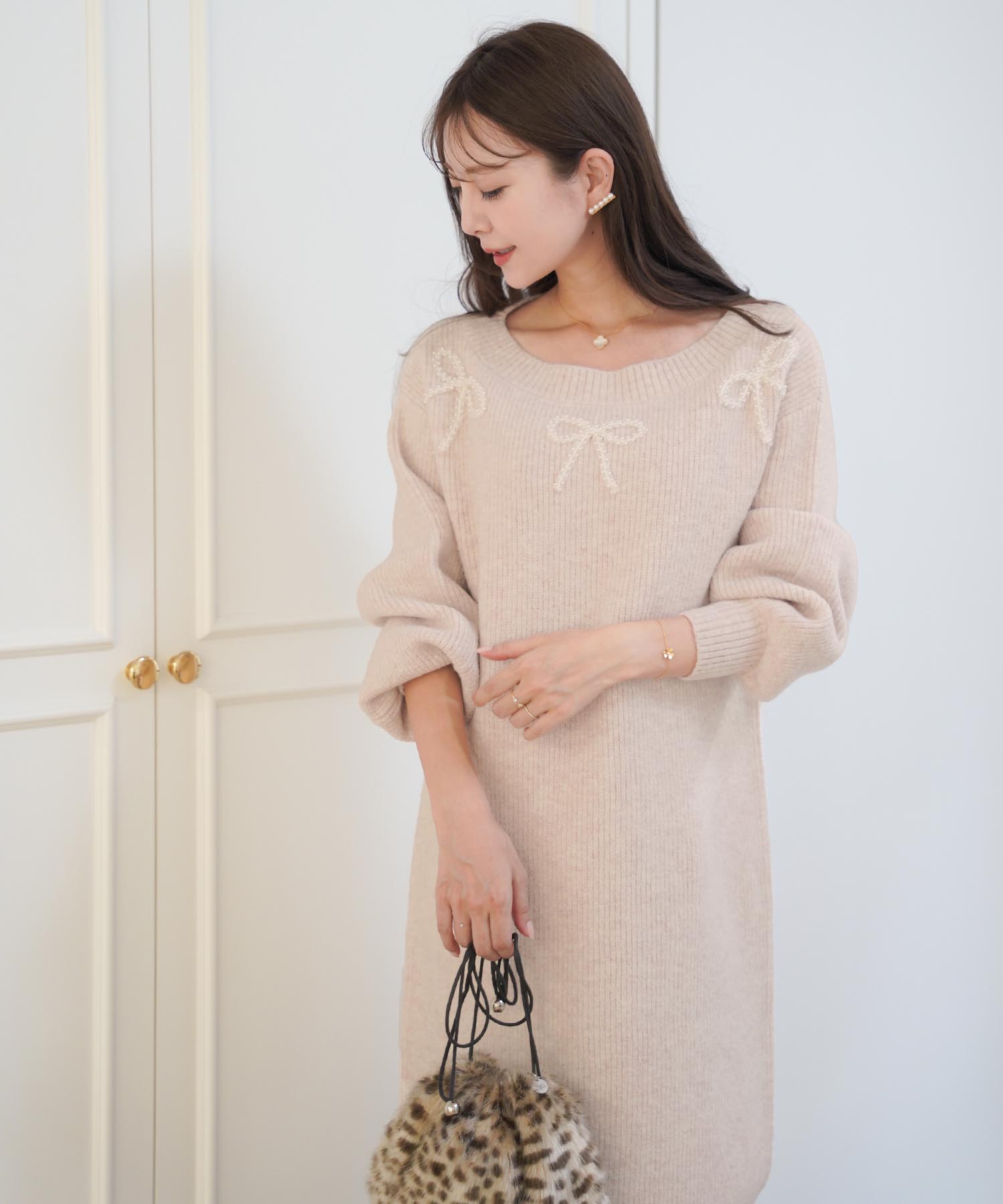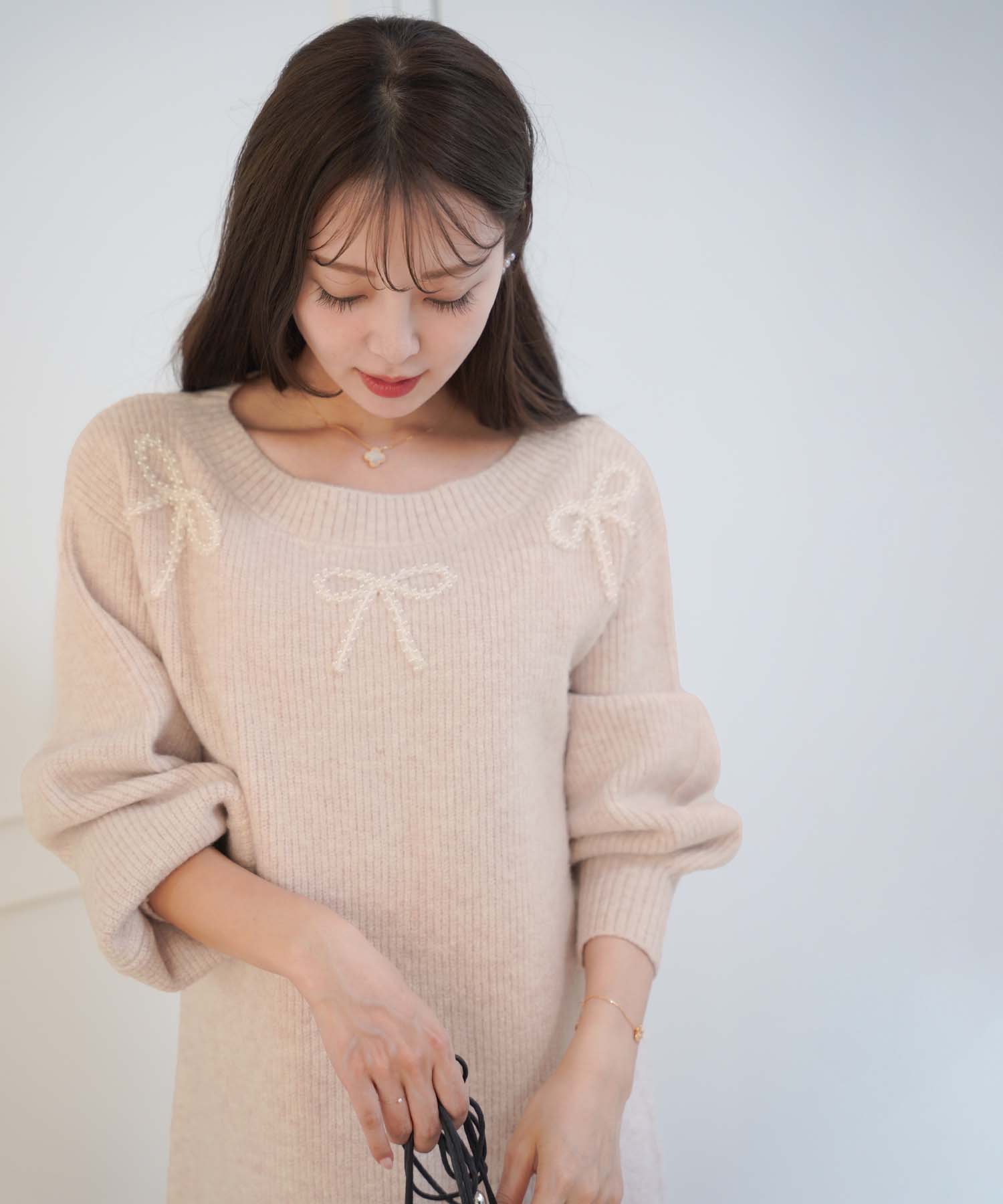 リボンモチーフ パール ニット ワンピース (le reve vaniller)¥12,980