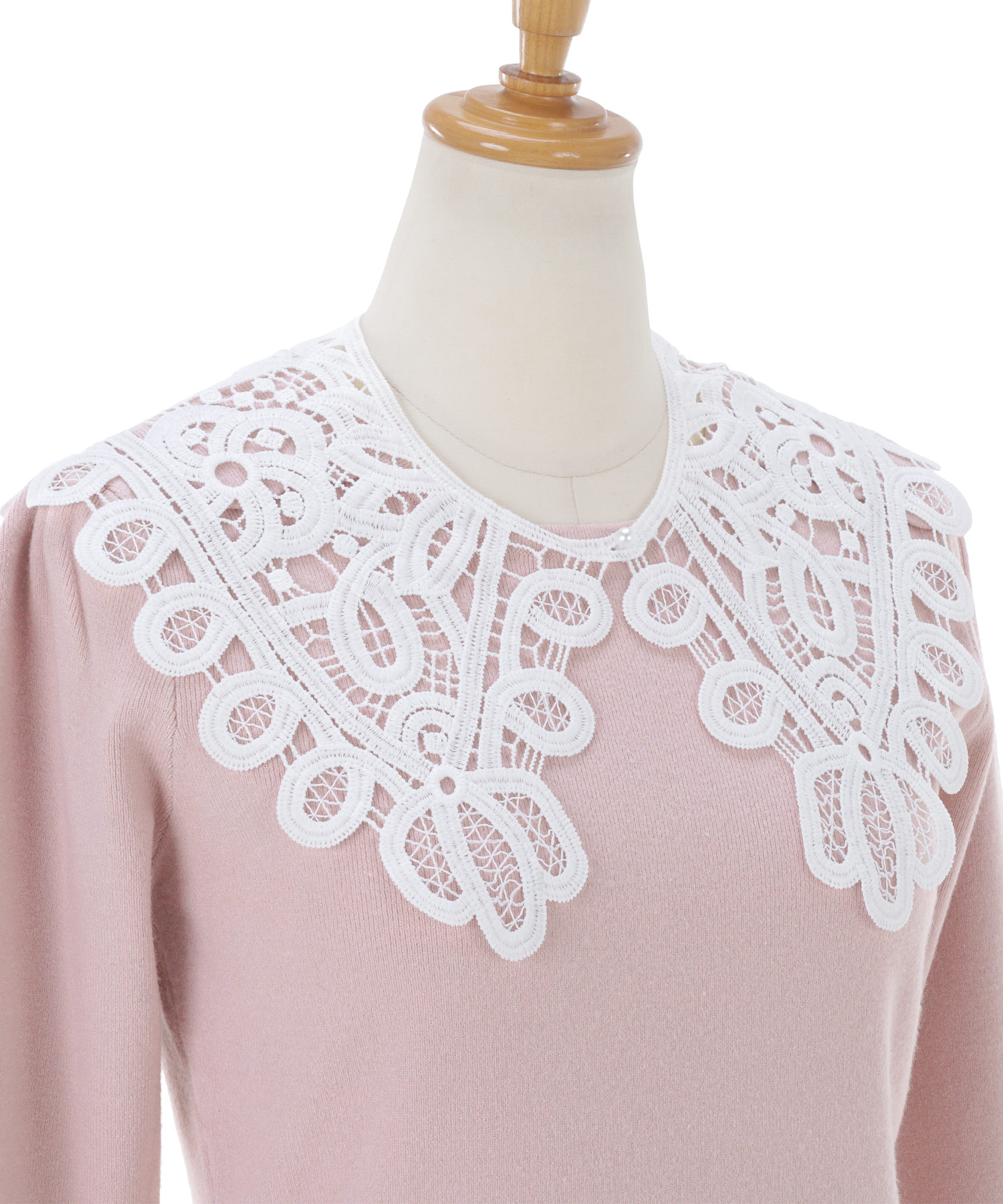 レース襟付 スカラップショルダー パールスリーブ ニット (Prima Scherrer)¥9,790