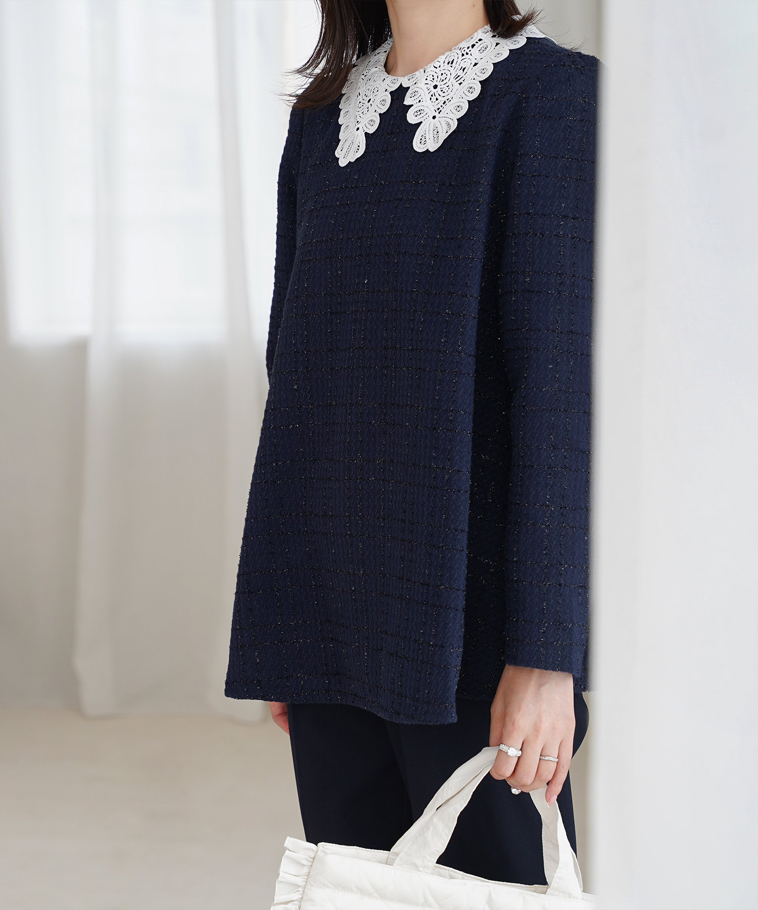 レース襟付き スパンコール ツイード トップス(HUIT bouquet)¥9,790(税込)