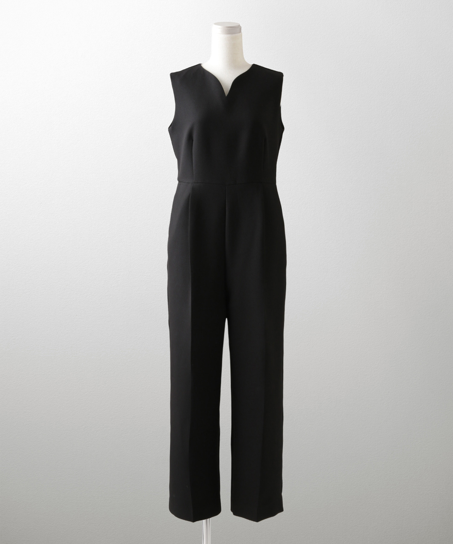 上品なキーネックが映えるオールインワン。高めのウエスト切り替えで脚長見えし、ほどよくゆとりのあるパンツ部分が動きやすさも叶えます。ジャケット合わせでフォーマルに、シューズ次第でデイリーにも活躍。しわになりにくいきれいめ素材で、頼れる一着です。
