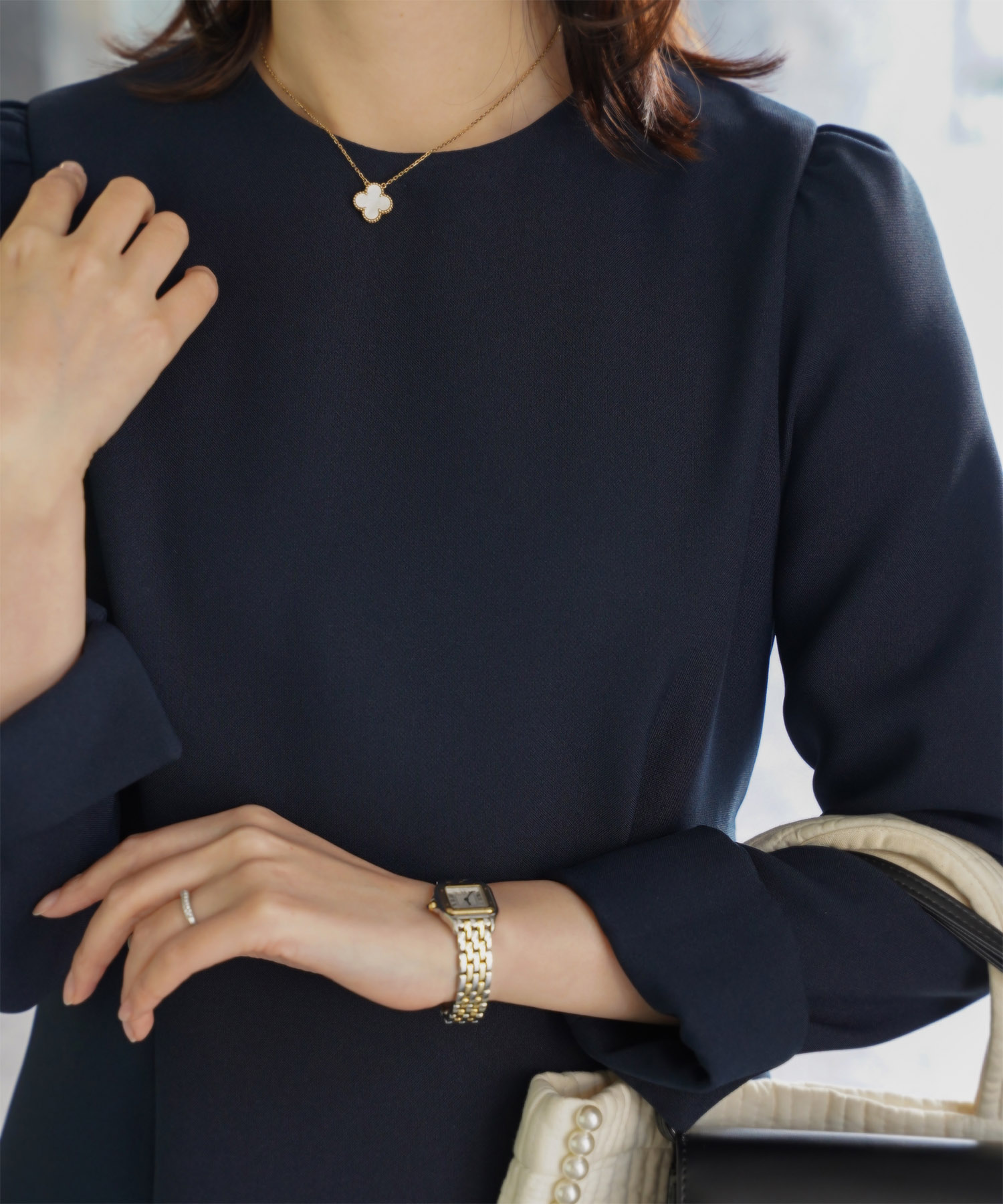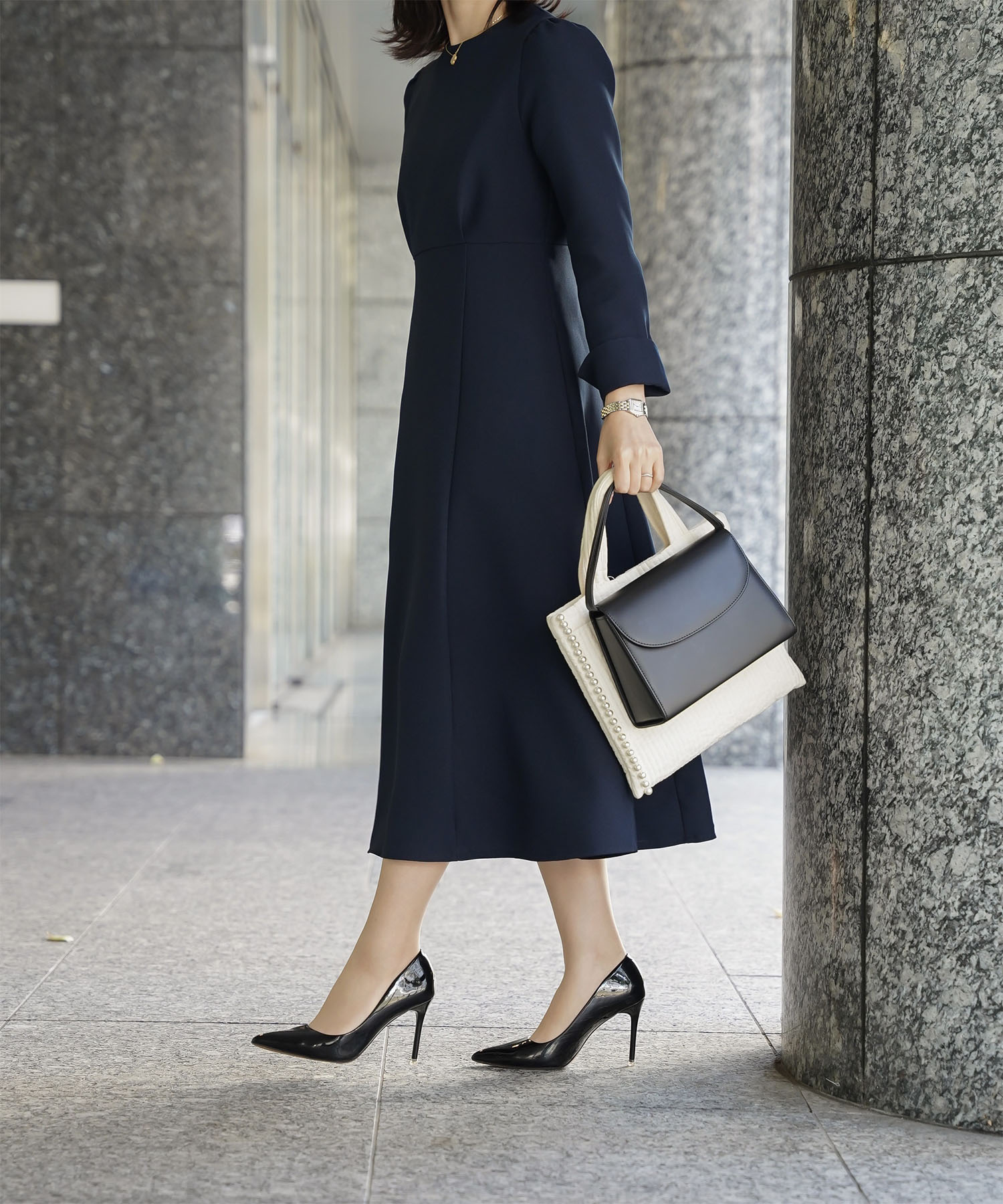 ワンピースは、コーデを考える手間が少なく、全身のバランスが取りやすいのが魅力です。ほどよい厚みの素材や、身体のラインを拾いにくいシルエットを選ぶと安心感があります。ジャケット合わせで式典仕様に整えやすくなります。