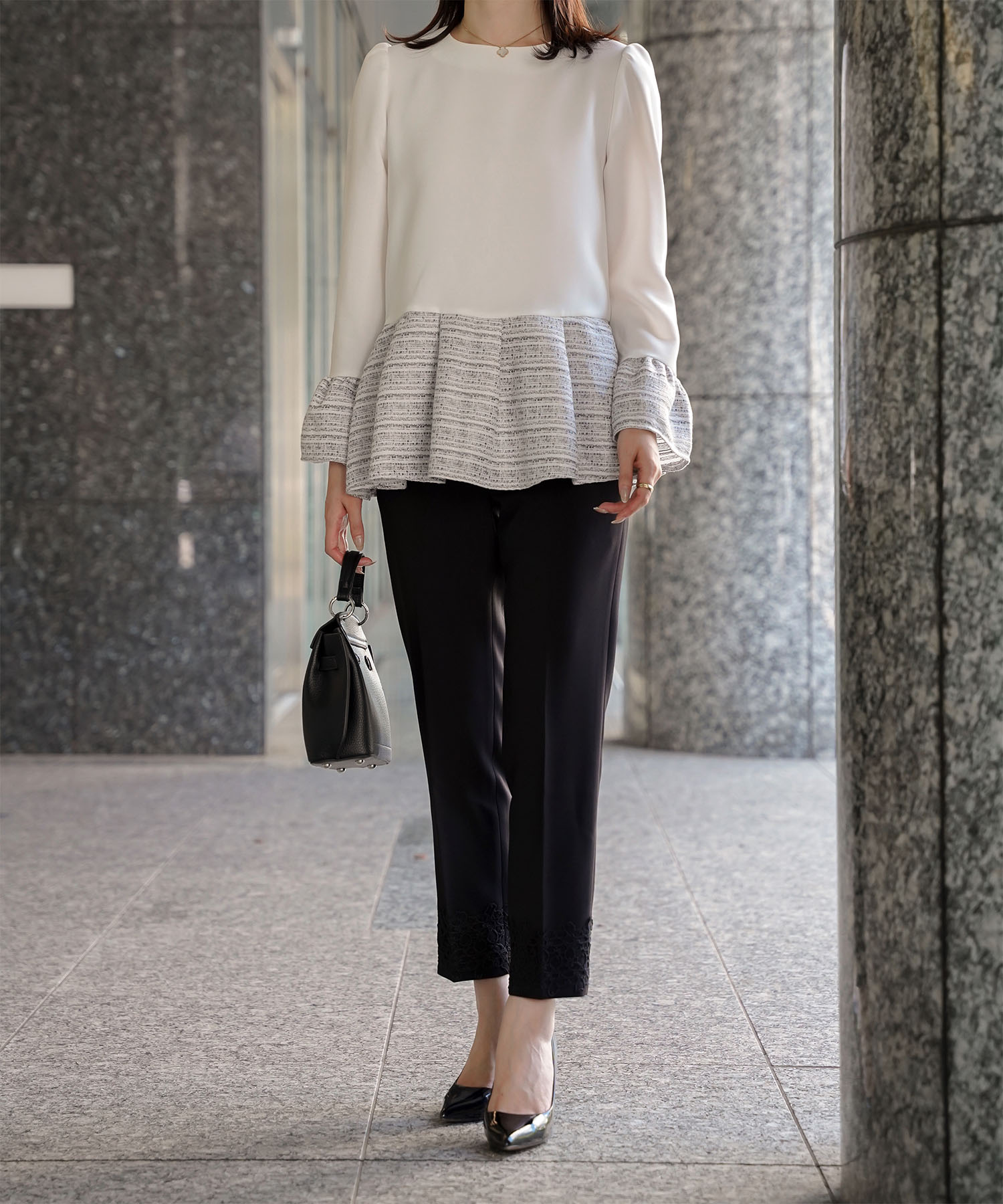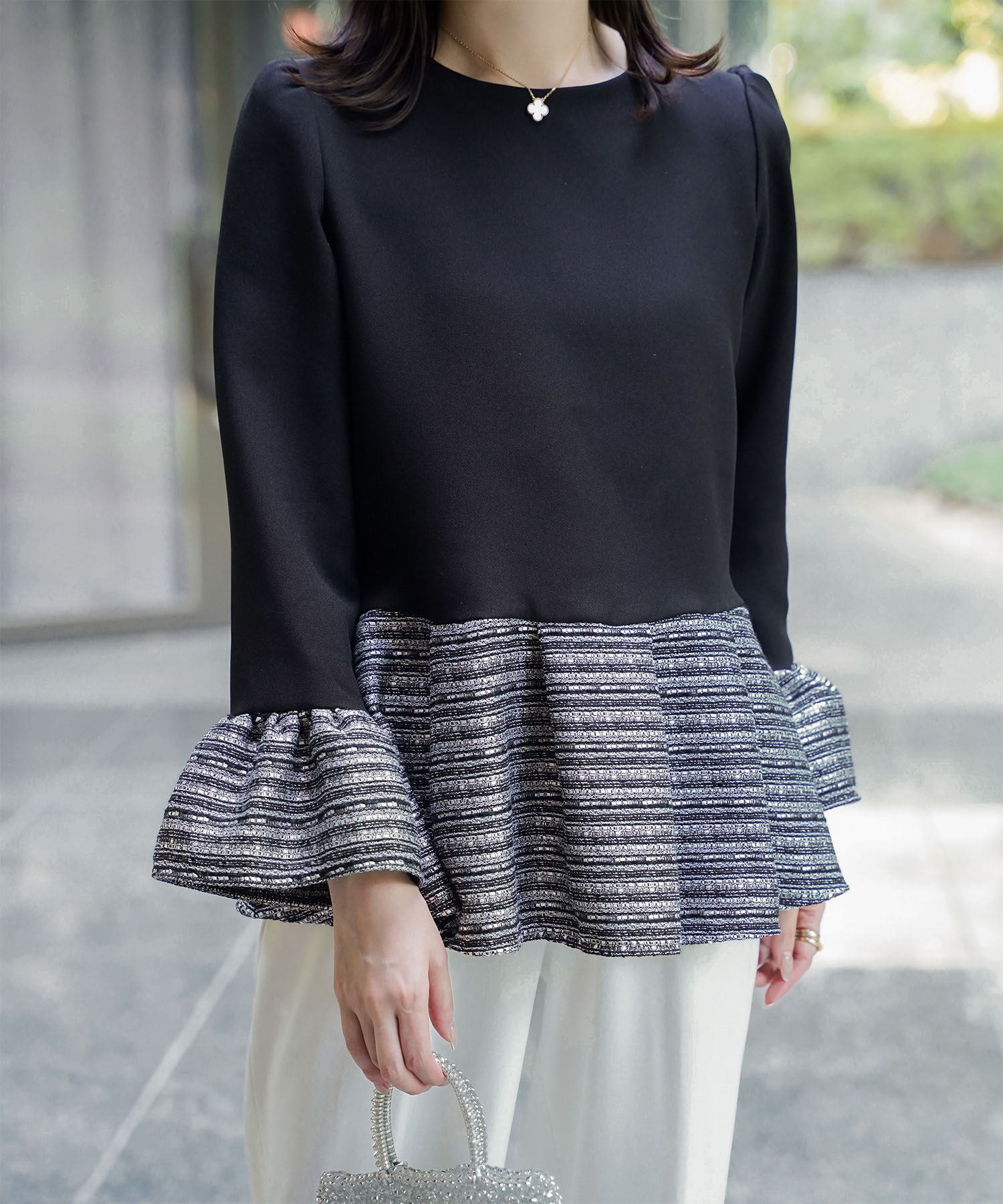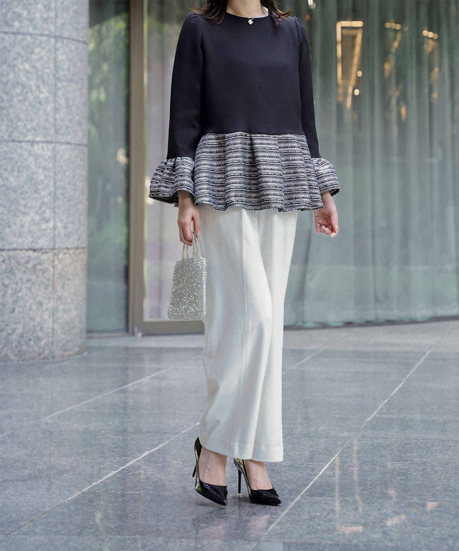 ツイード 切り替え ペプラム トップス(HUIT bouquet)¥9,900(税込)