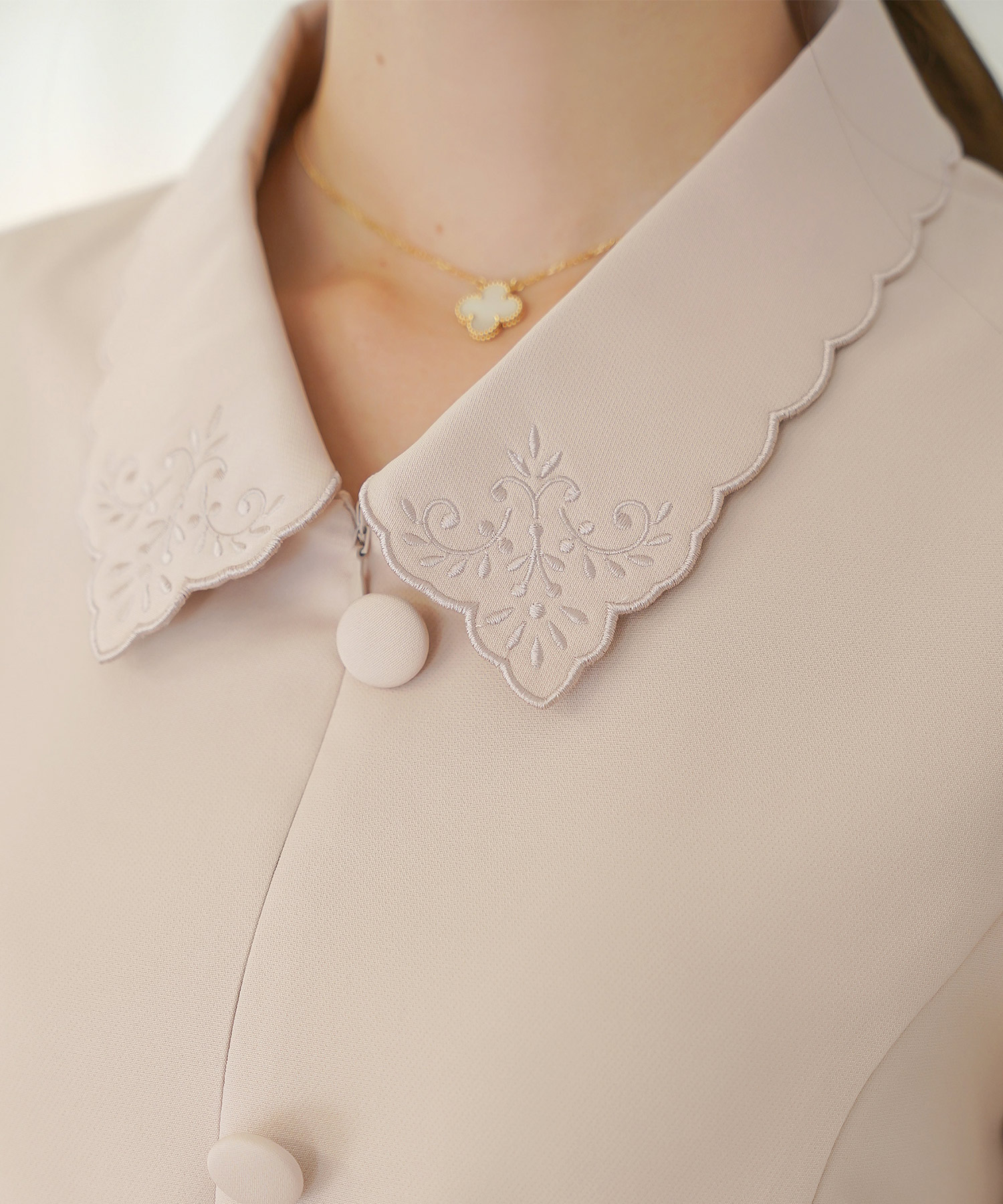 刺繍 襟付き フロントファスナー ワンピース(le reve vaniller)¥16,500(税込)
