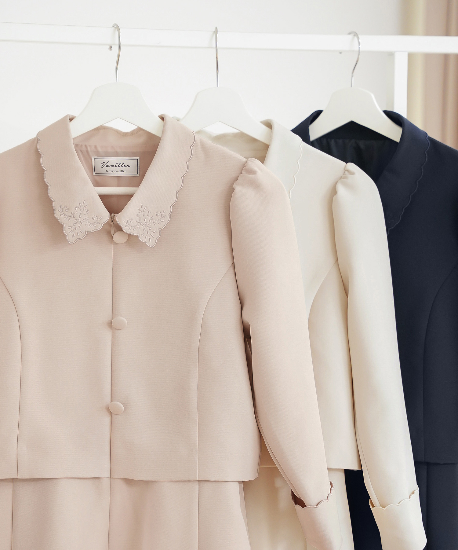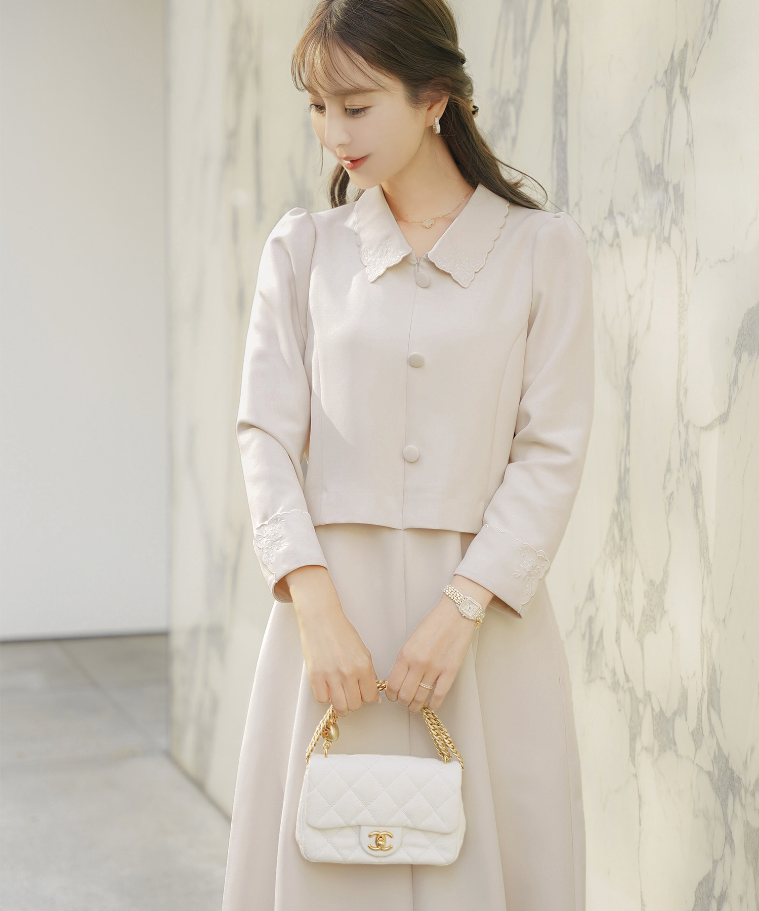 オケージョン スカラップ Vネック ショート ジャケット(Liala×PG)¥16,500(税込)