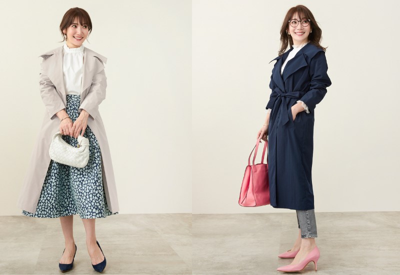 なんといっても1枚は持っておきたいのがトレンチコートです。ショート丈やロング丈など色々ありますが、まずはロング丈のベーシック形を準備しておくと様々なシーンで活躍します。色はベージュorブラックがあると安心です。