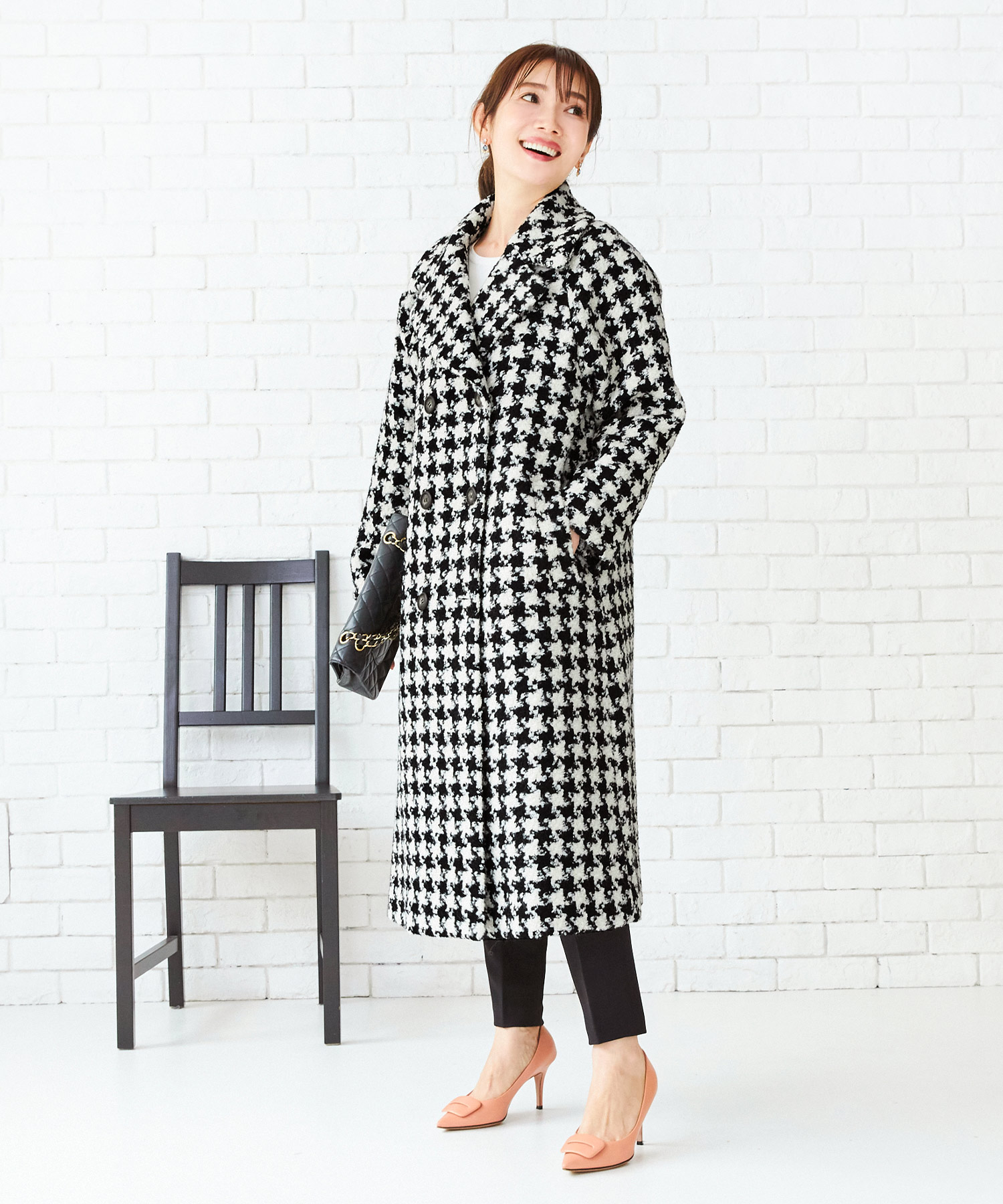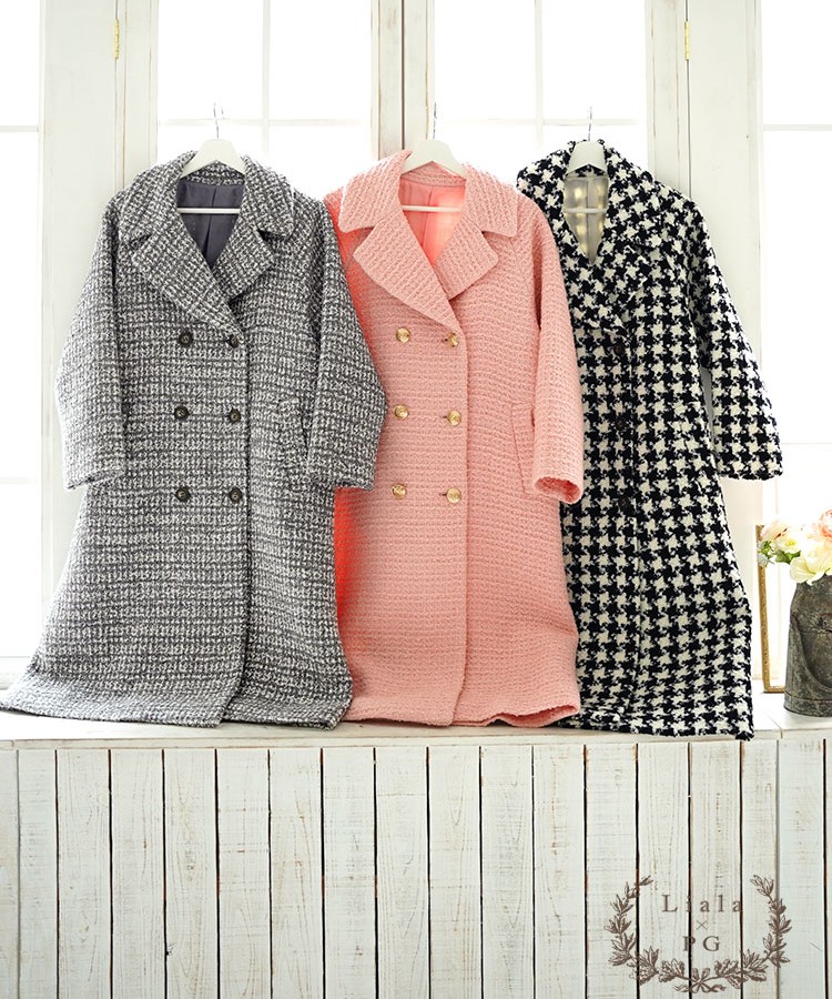 テーラーカラー ダブル釦 ツイード コート (Liala×PG)¥30,690