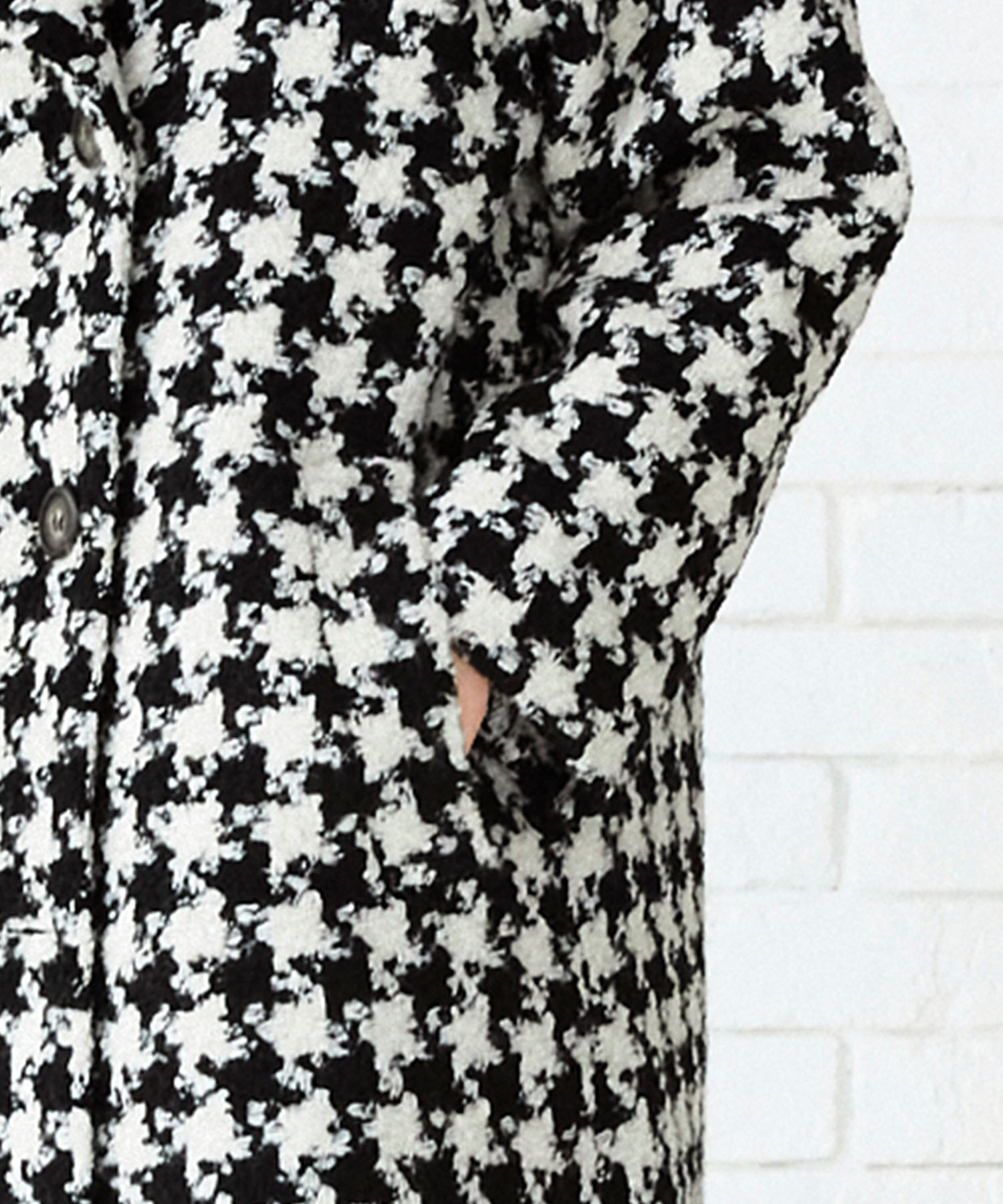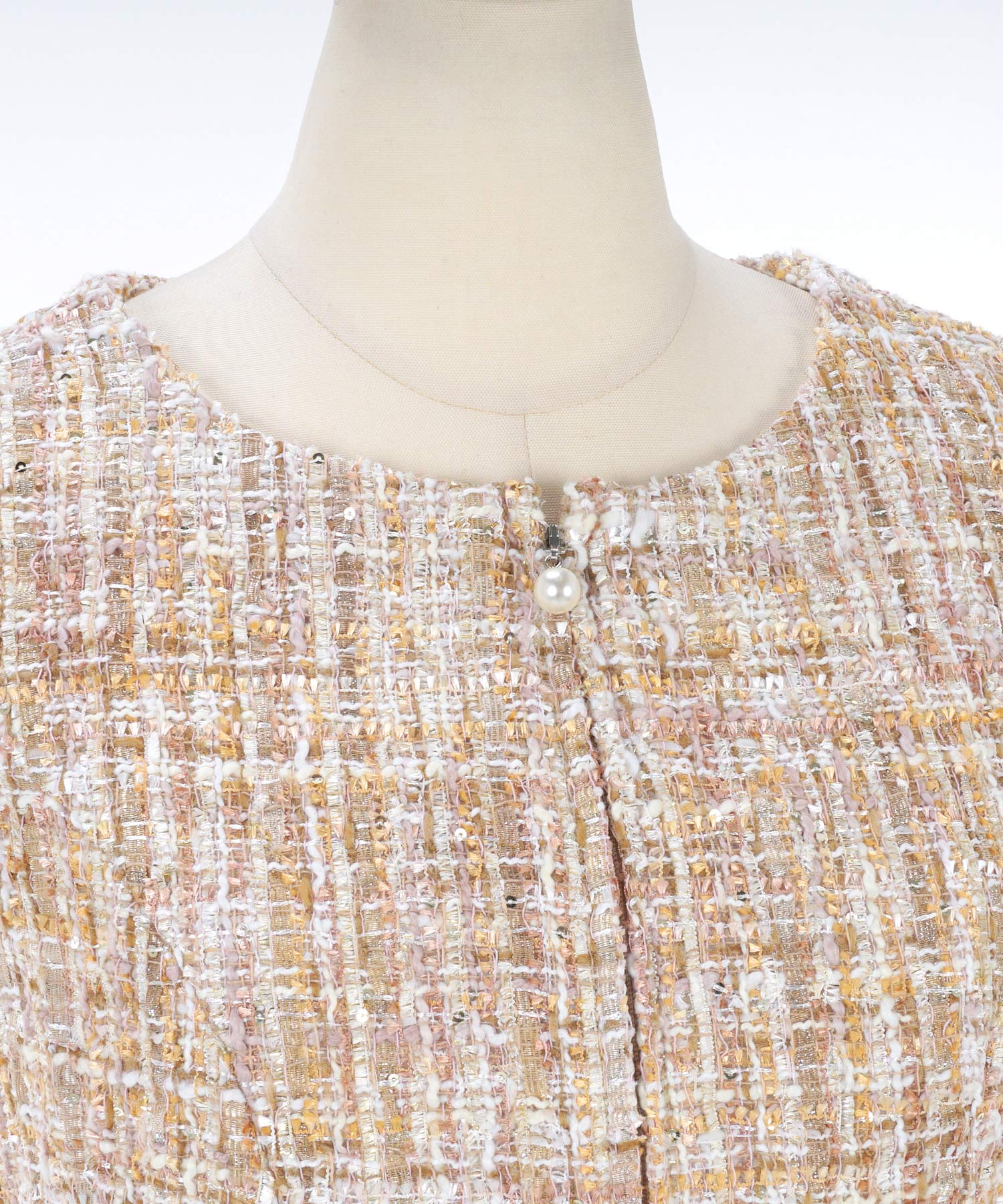 テーラードカラーでマニッシュなデザインのツイードコート。洒落感のある「柄」と甘すぎない「ピンク」の色展開で大人のアウターコーデを華やかにまとめてくれます。