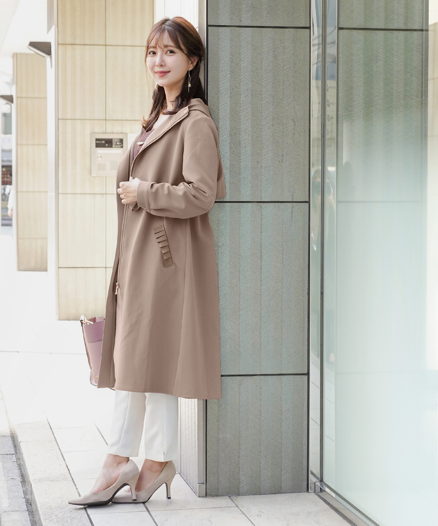 大きめのテーラード襟が女性らしくエレガント印象なFEERICHELUのコート。