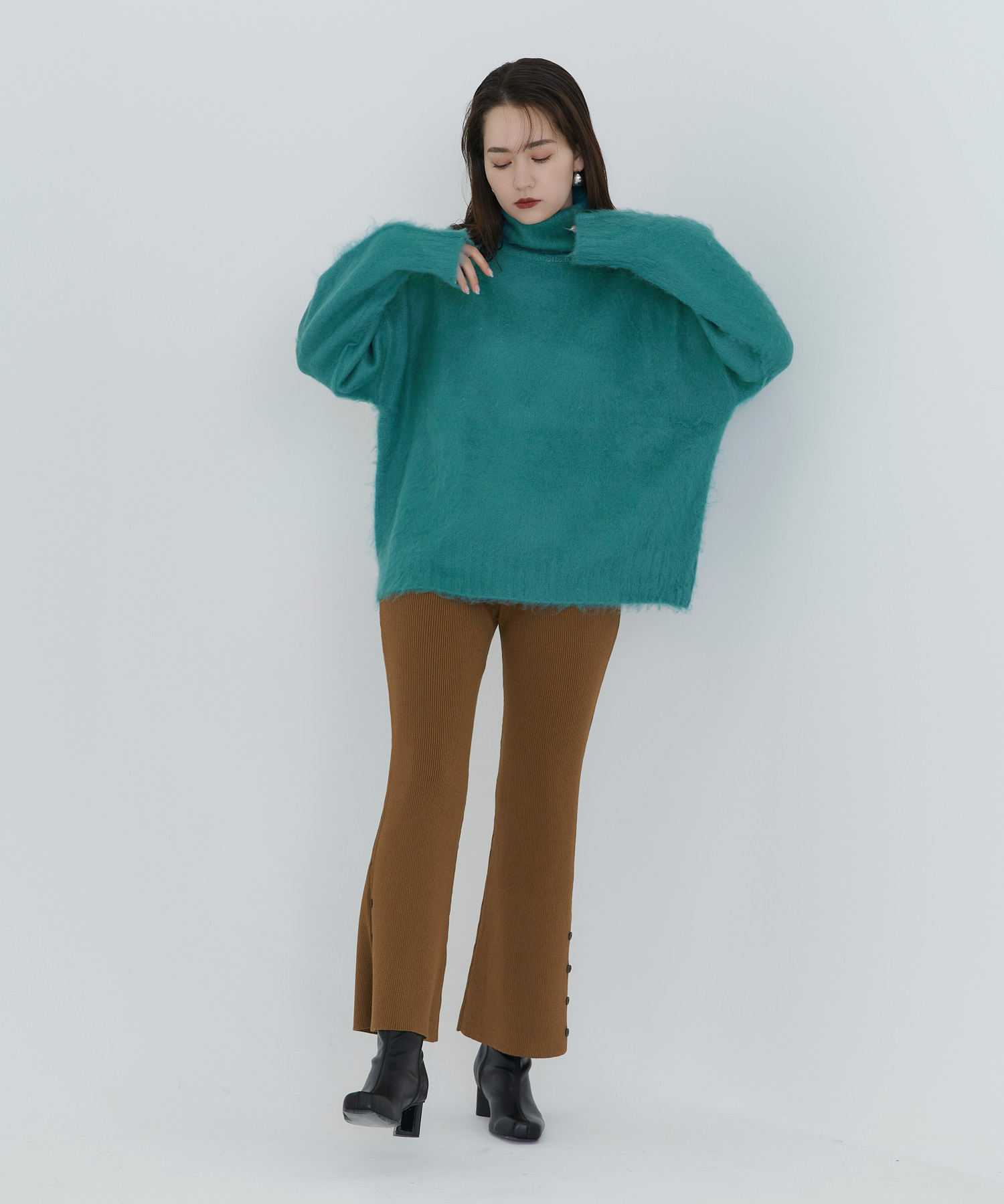 起毛加工で毛足を長く、お洒落な風合いのニット。