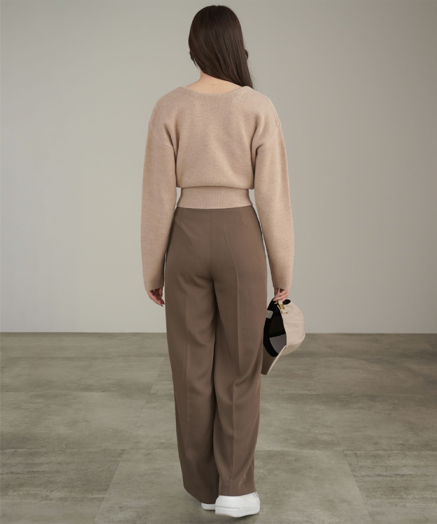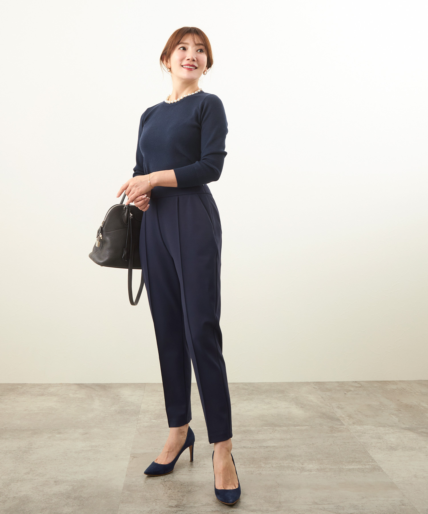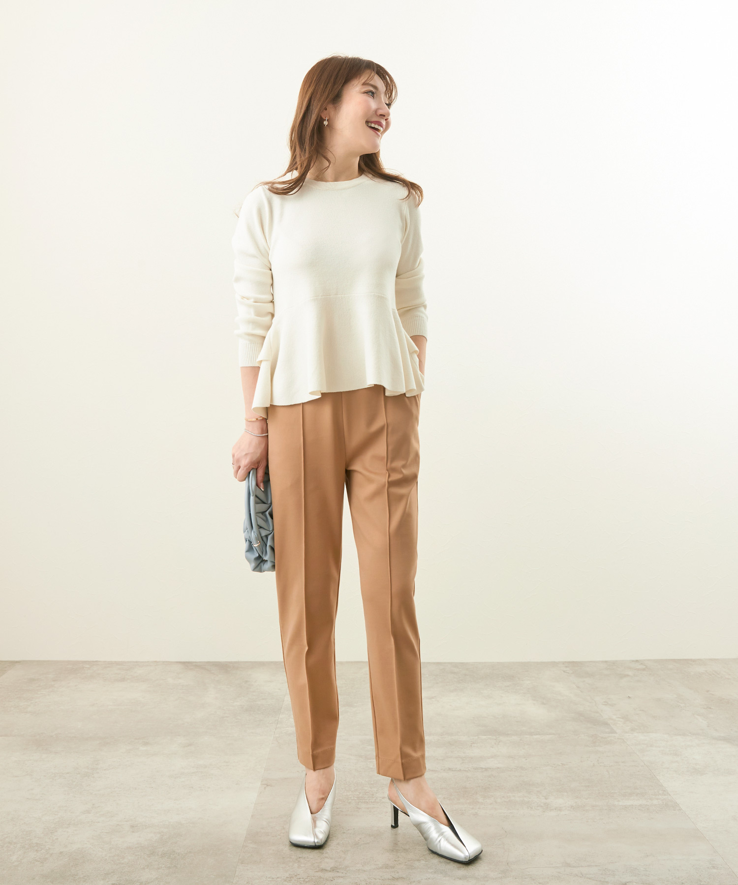 大人のこなれコーデに欠かせないワイドパンツはややとろみのある落ち感素材がポイント。あえてオーバーサイズのブラウスやニットを合わせることでモダンで洗練された着こなしが楽しめます。センタープレス入りなので脚をすっきりと長く見せてくれるところも嬉しいポイント。普段は細身パンツを穿く機会が多い方こそ新年は新しいデザインにトライするというのがおすすめです。