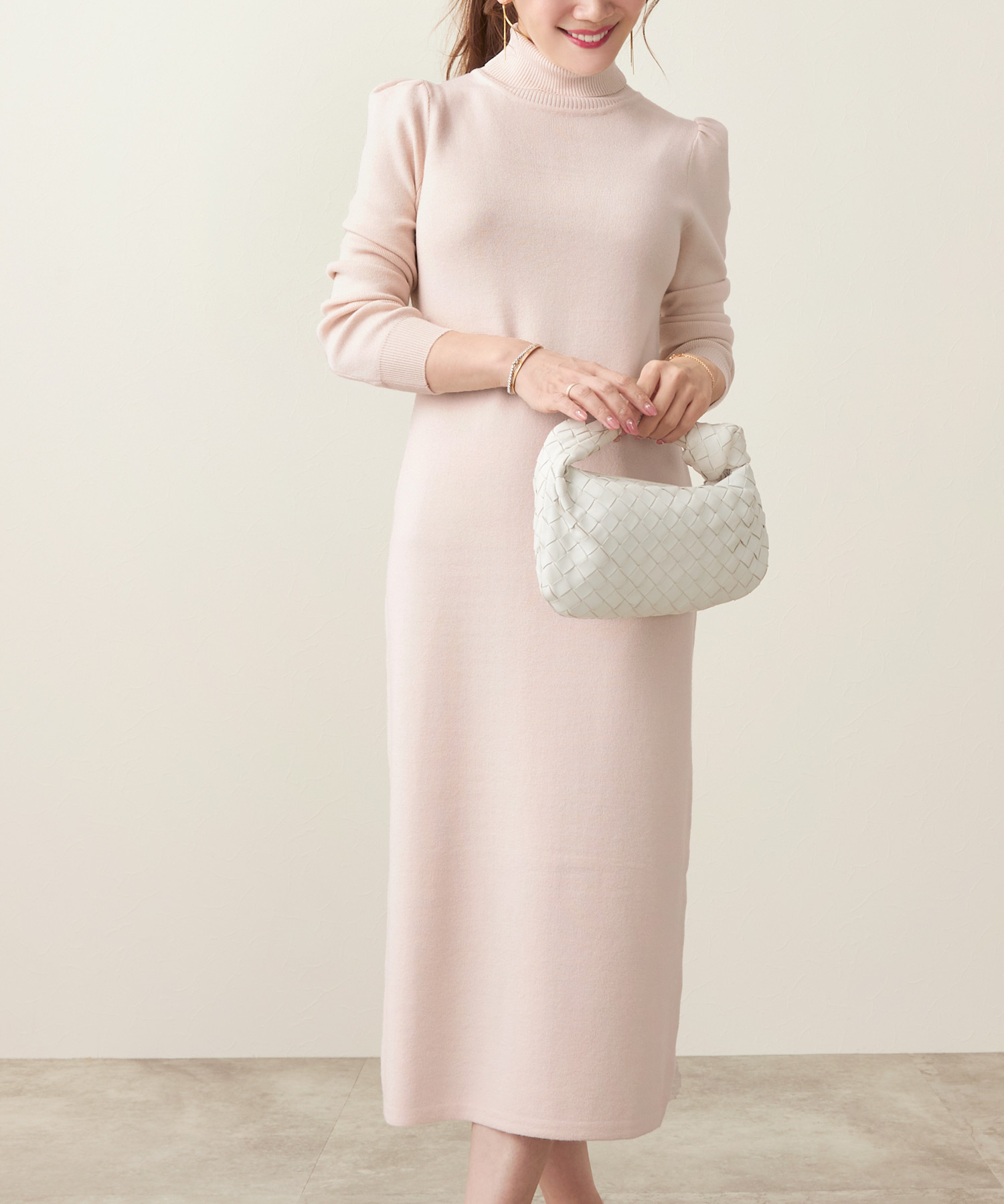 タートルネック 肩ギャザー入り ニット ワンピース (Liala×PG)¥8,800