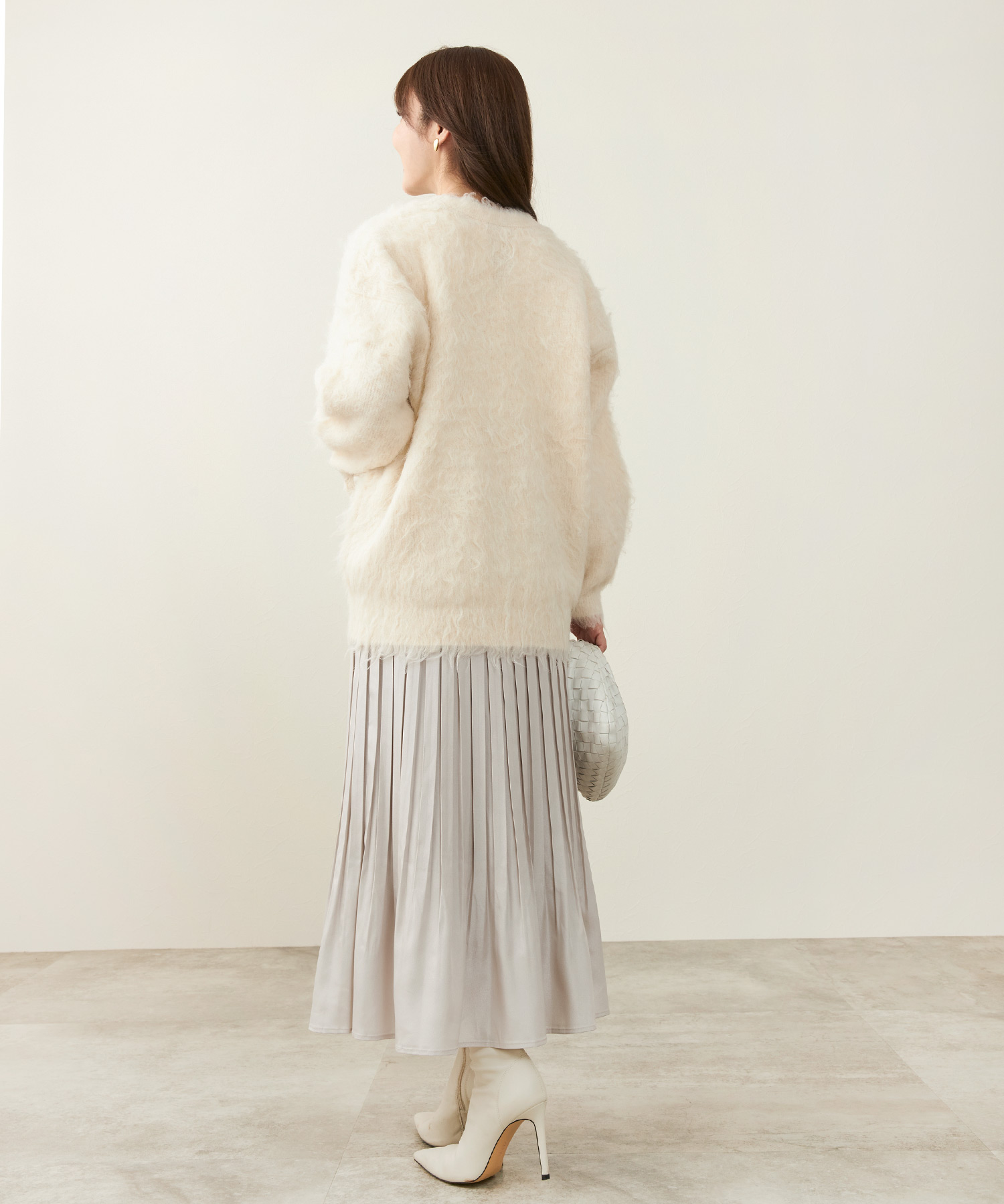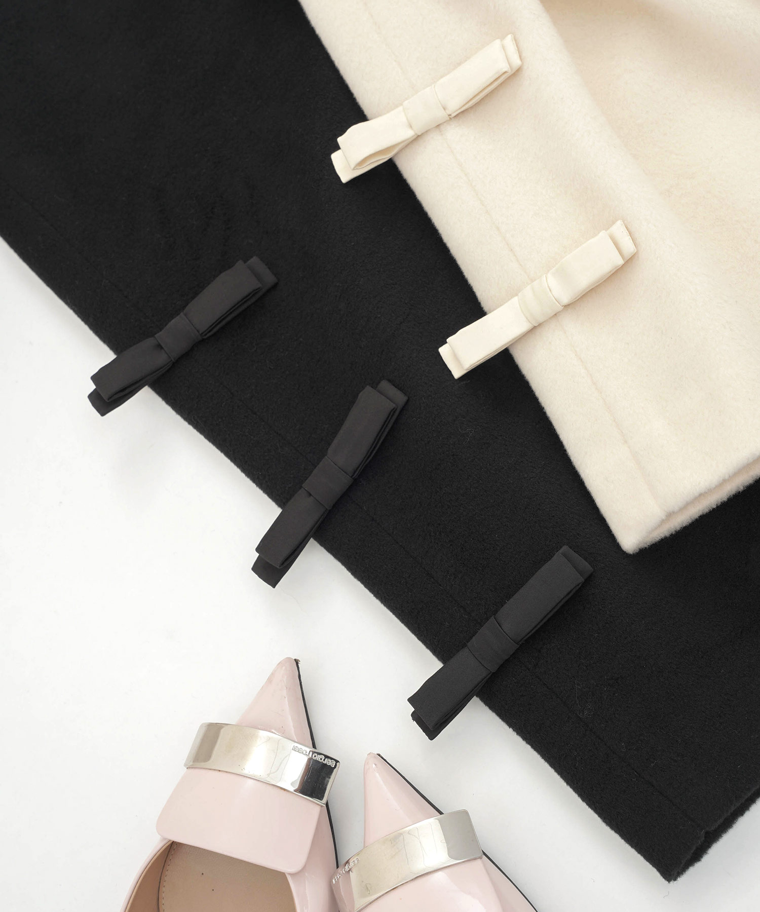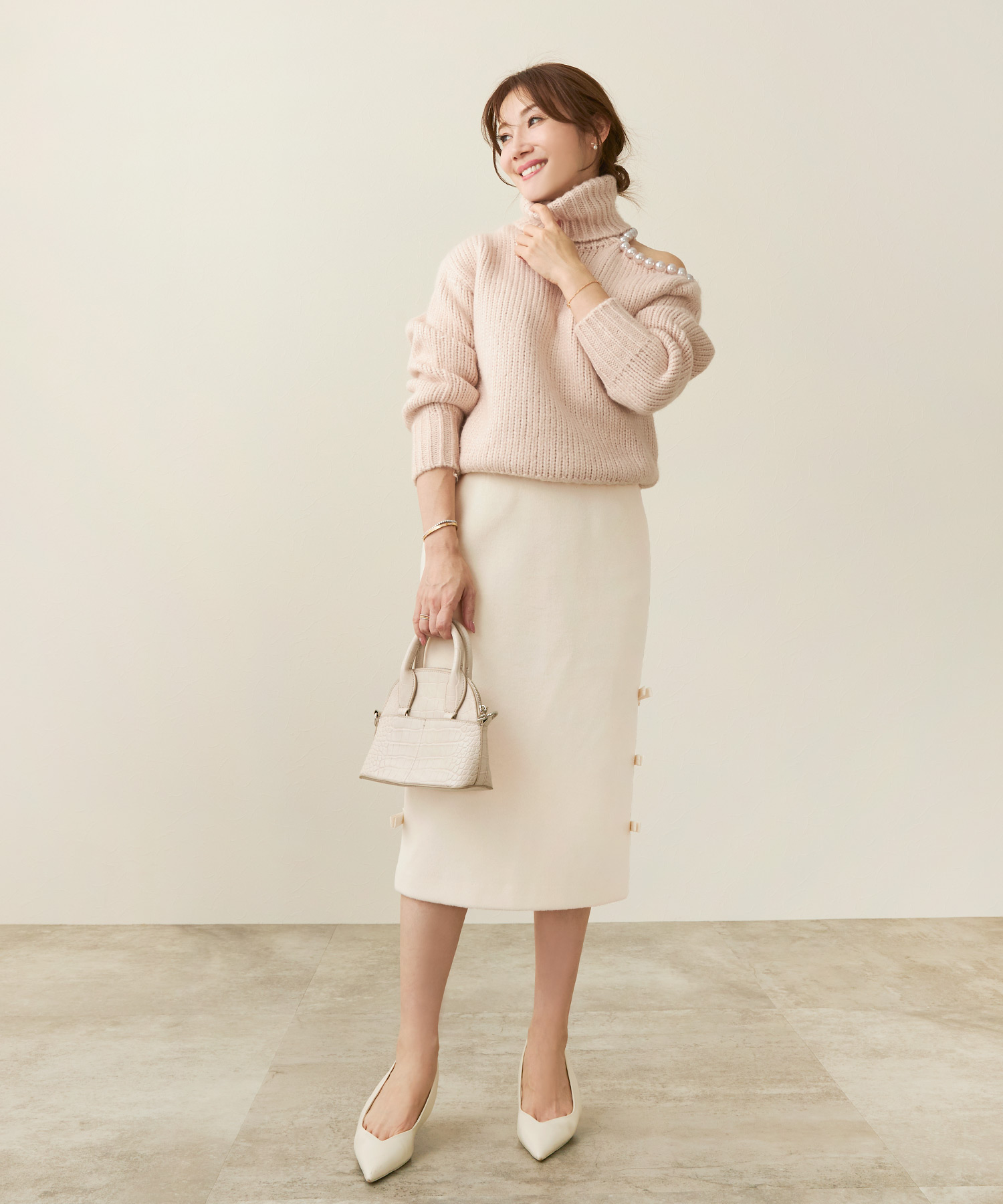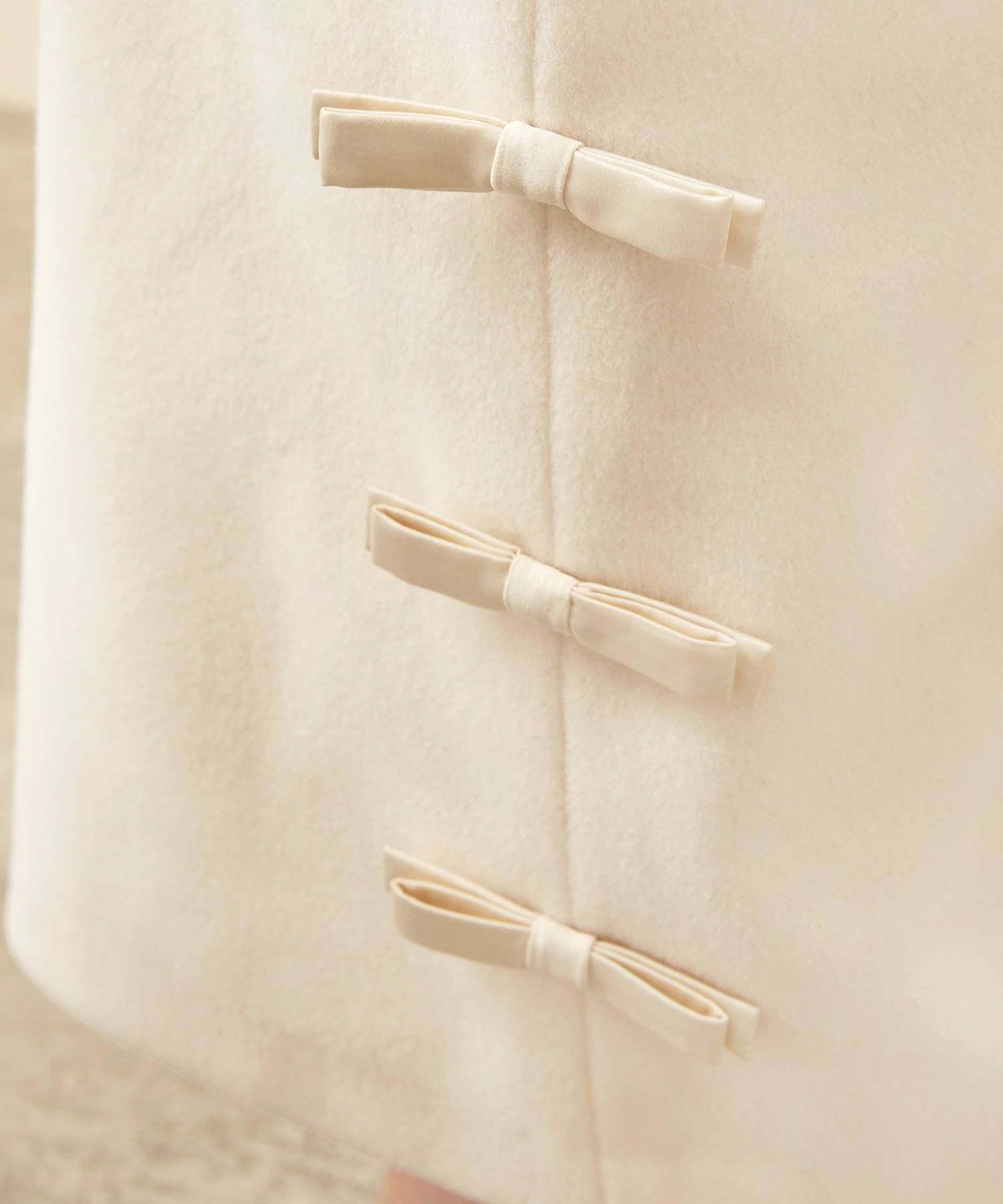 スカートのサイドにマットなサテン素材のリボンをあしらった大人の甘さが魅力のタイトスカート。起毛感のあるソフトな素材を使用しているので、冷え込む年明けもぬくもりをキープしてくれます。バックスリット入りで歩きやすさも◎。