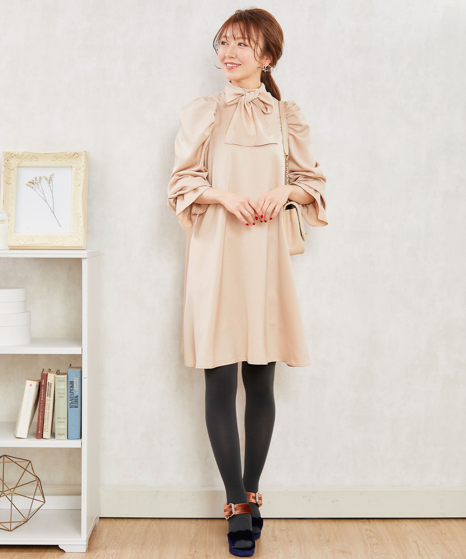 結ぶとビッグリボンができるボータイワンピース。