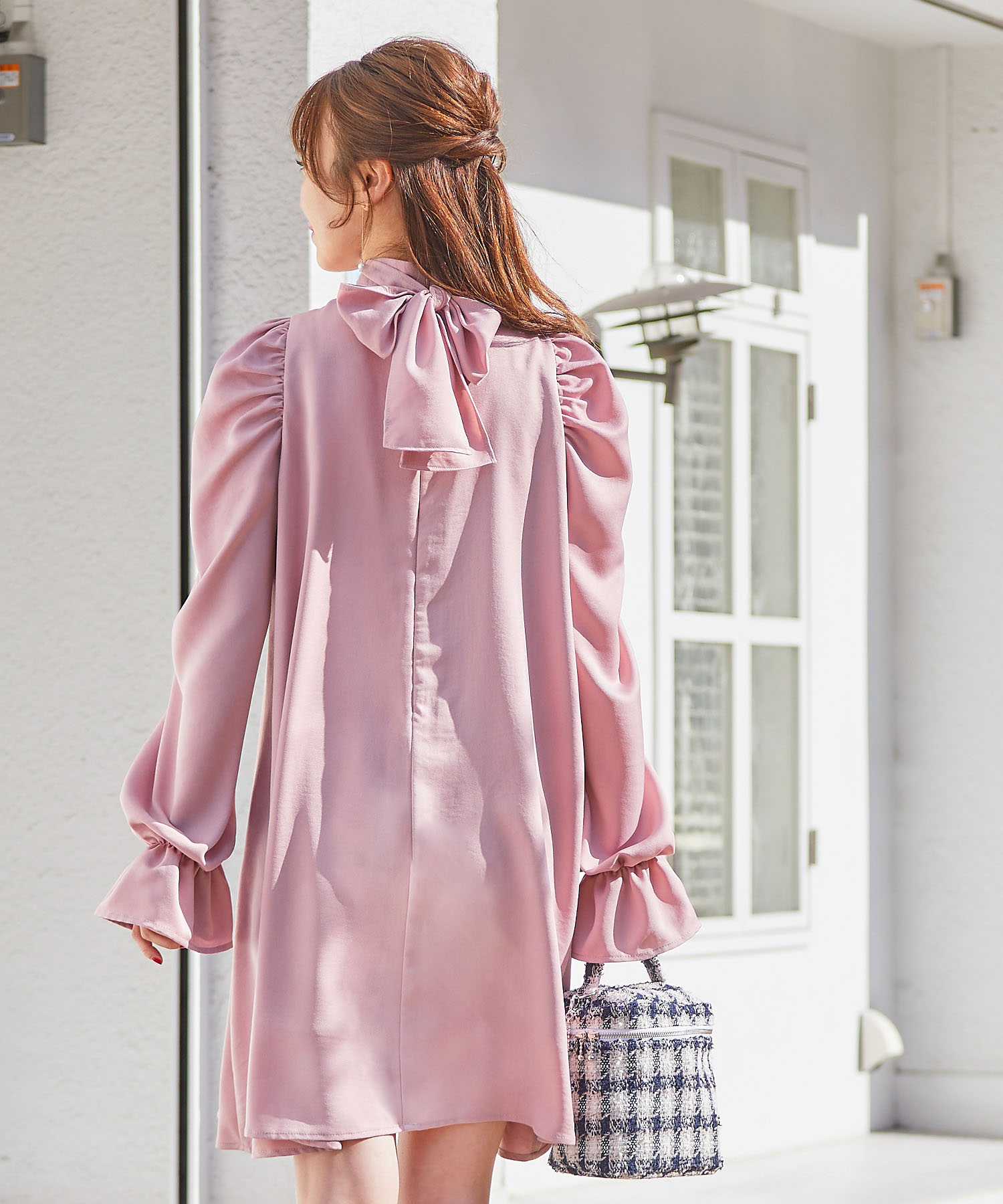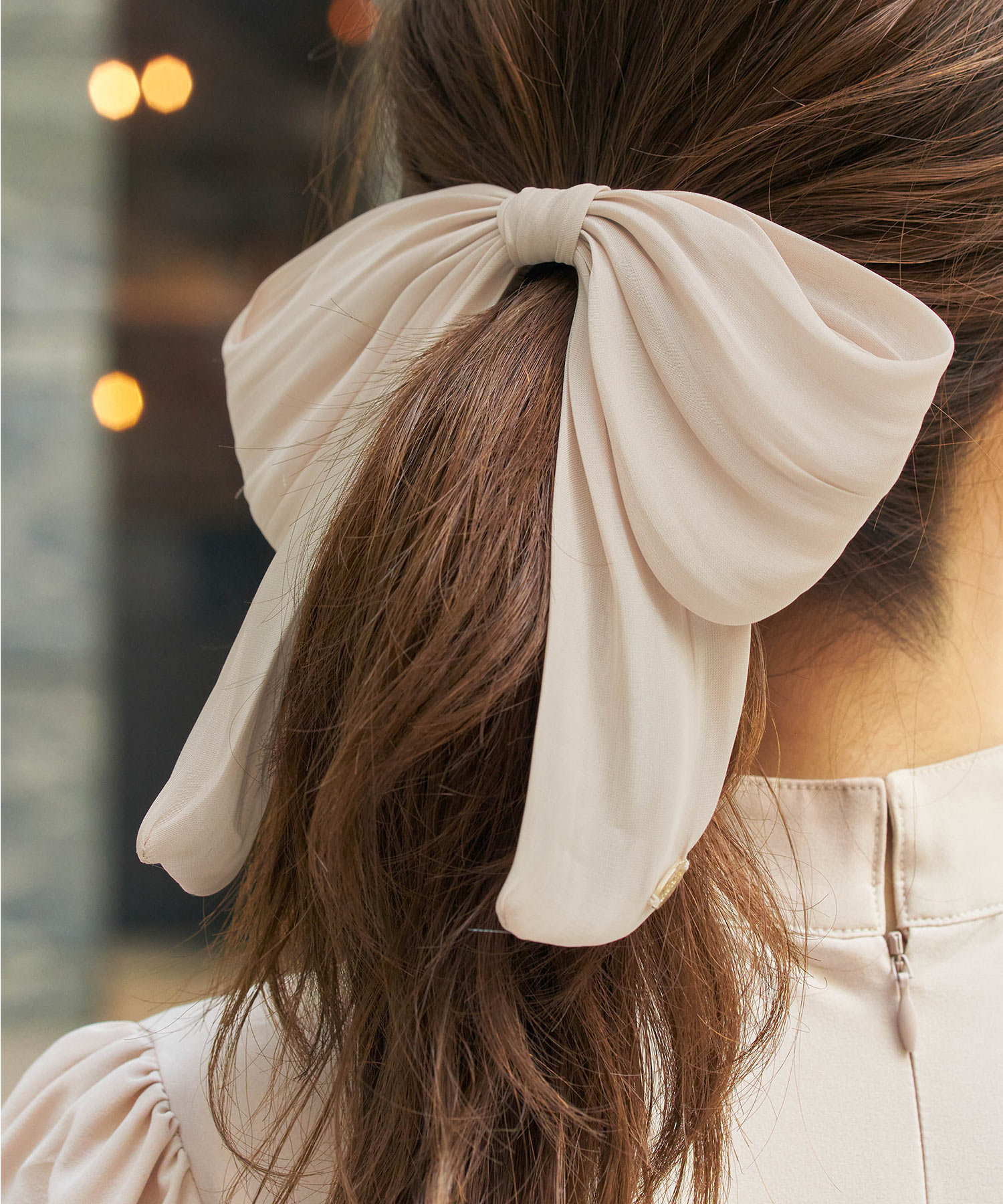 大人っぽく仕上げるにはビッグリボンの素材選びが重要。
