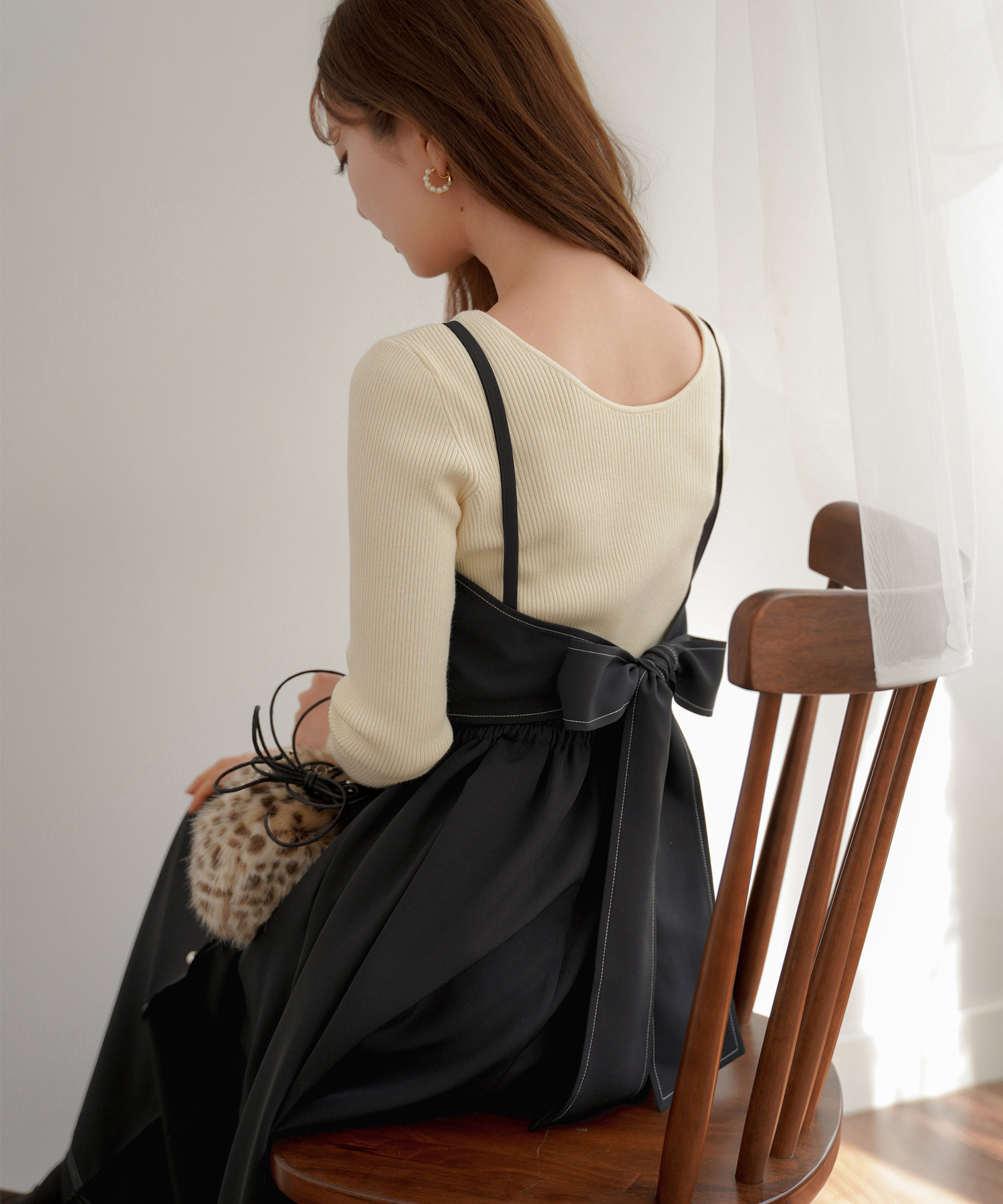 背中で結ぶ大きめのバックリボンが、後ろ姿もお洒落に見せてくれるので