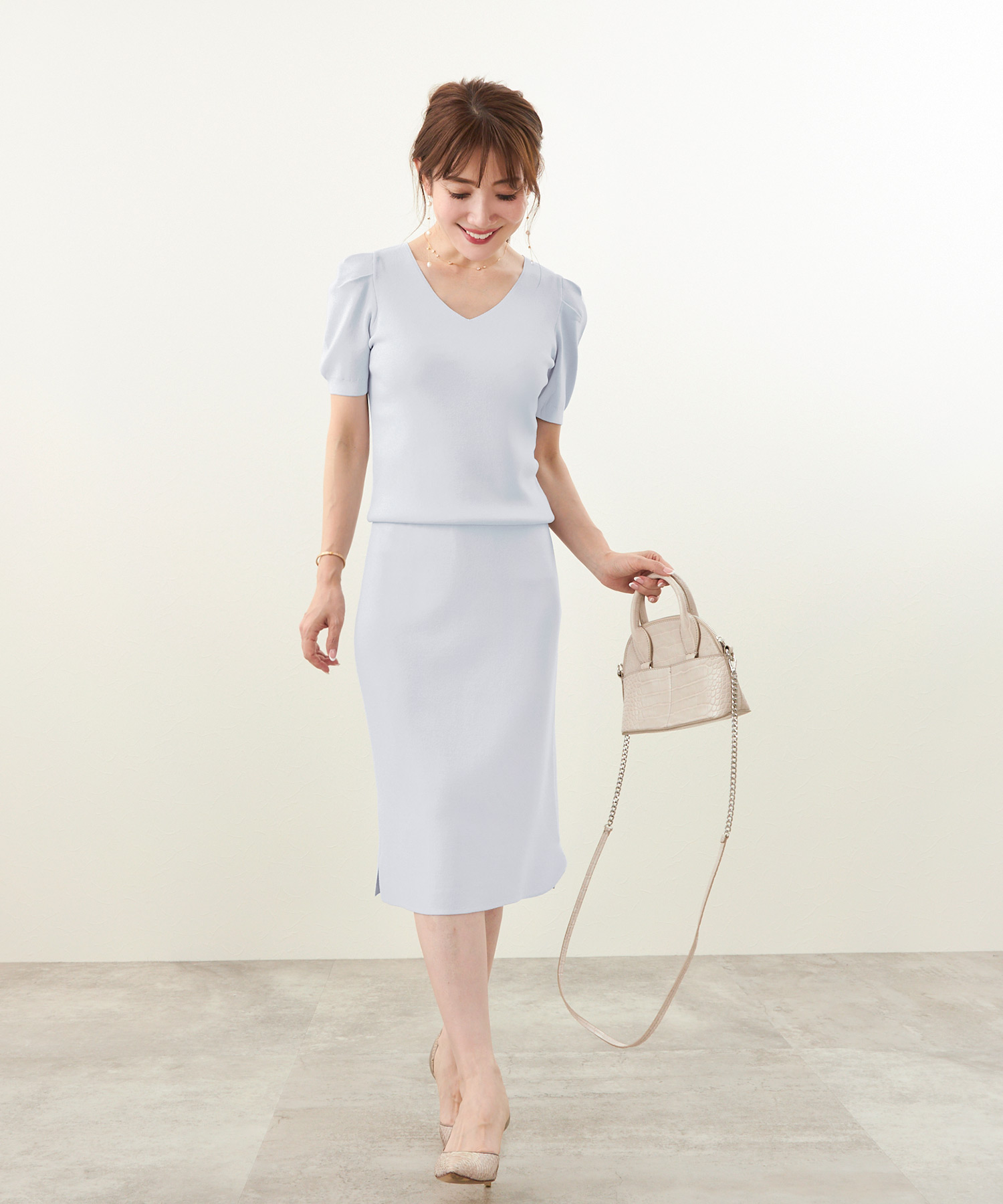 膝からふくらはぎの中間あたりの長さで、大人っぽく清楚な雰囲気に仕上がります。
