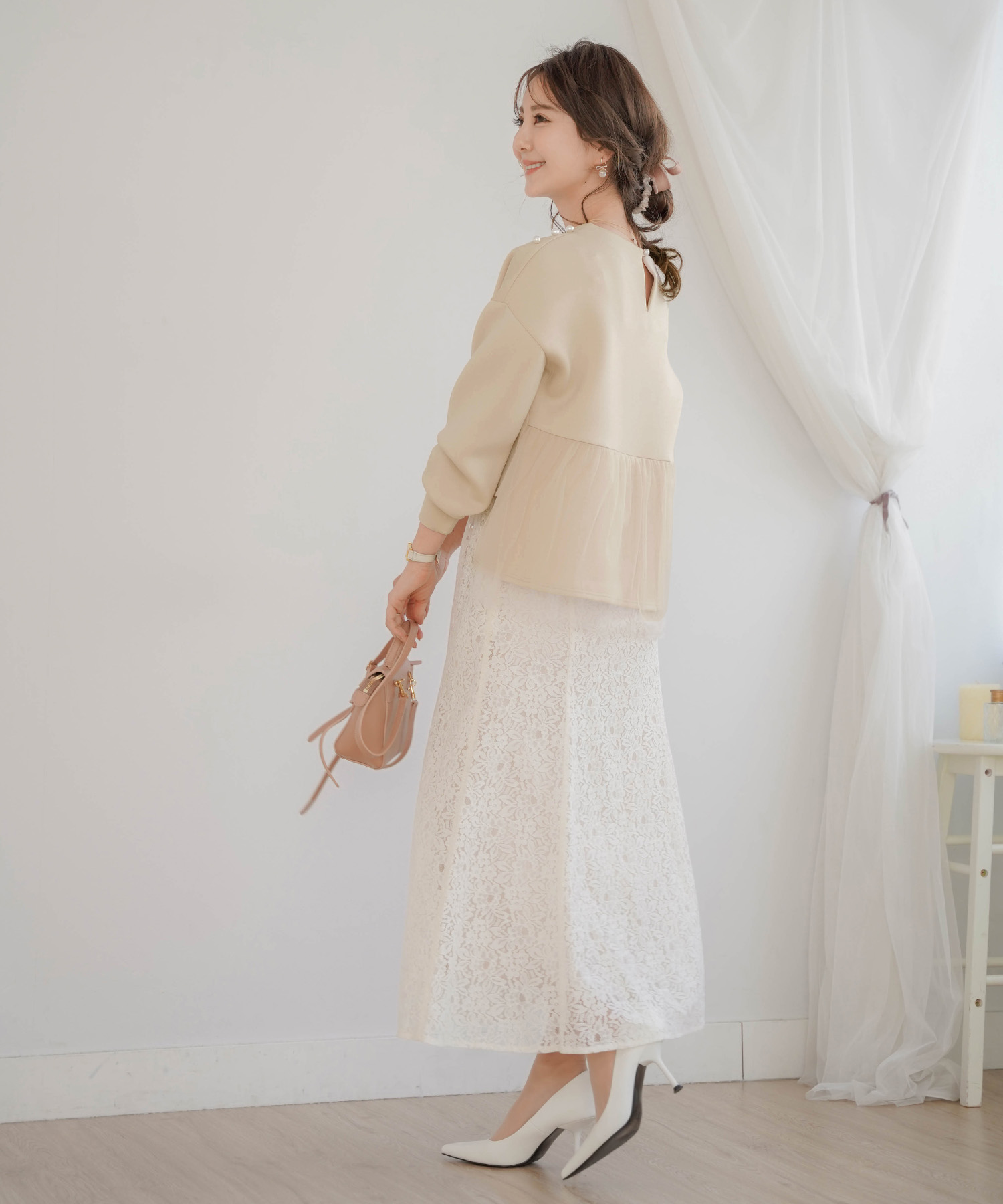 後ろをチュール切り替えデザインで仕上げ、ふんわりとしたフェミニンなシルエットに♡
