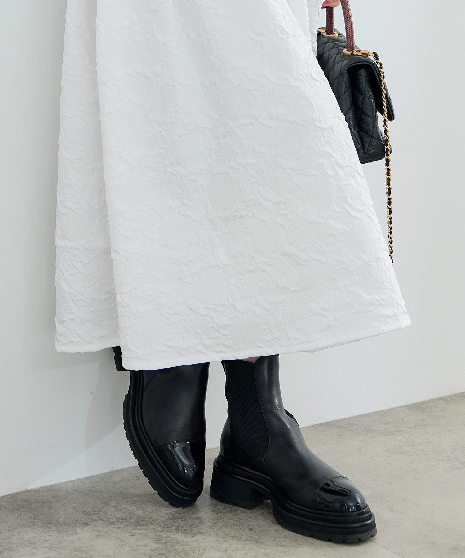 雨の日のデートも、華やかさはキープしたい。そんな時に頼れるのが、表情豊かなジャカード素材のフレアスカート。水滴や泥ハネが気になりにくく、風通しの良いシルエットで湿度が高い日でも快適な着心地を叶えます。存在感のあるデザインだから、シンプルなトップスを合わせるだけでメリハリのある上品コーデが完成。一枚で気分が上がる、雨の日の心強い味方です。