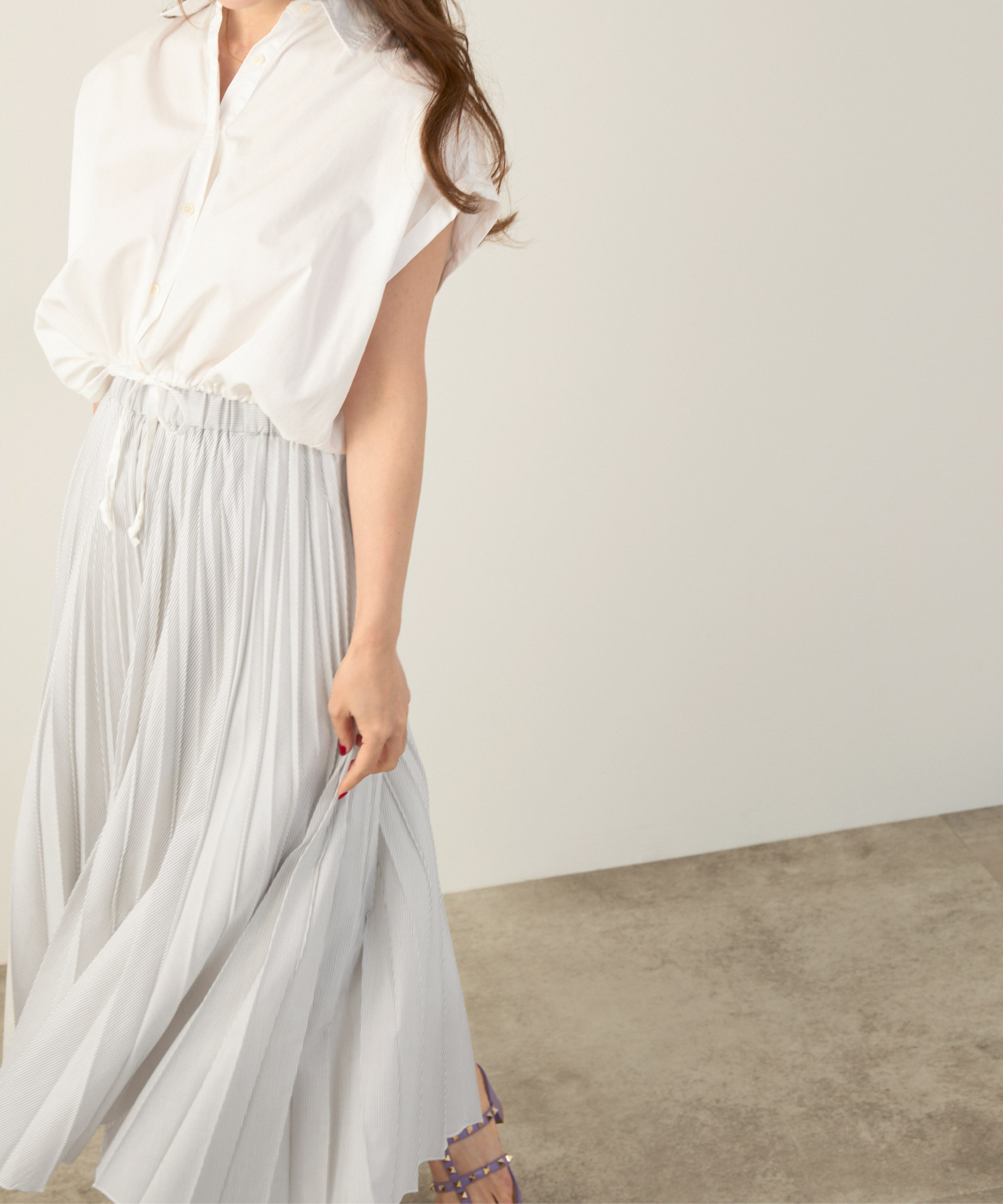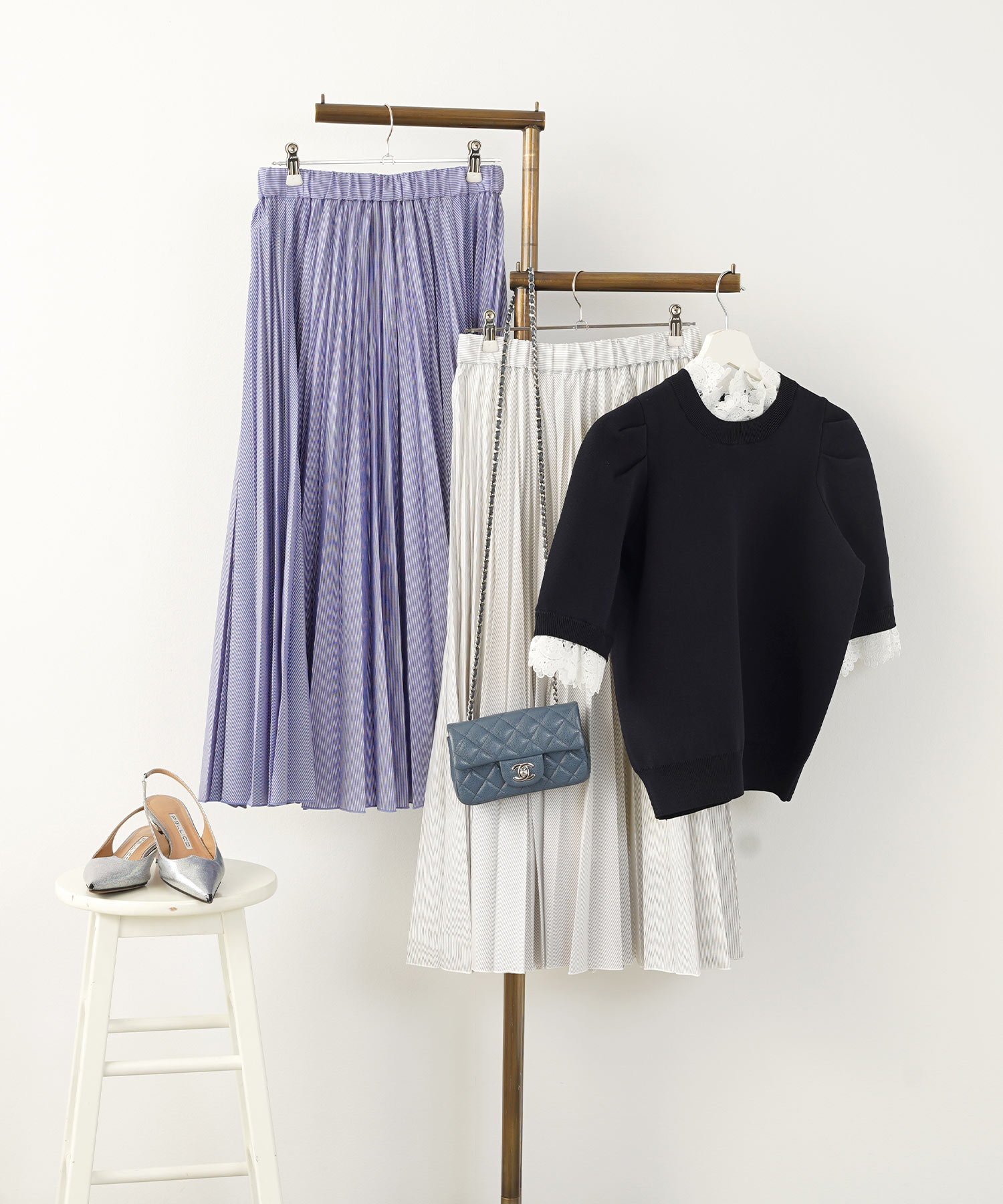 ストライプ プリーツ スカート(Liala×PG)¥12,100(税込)
