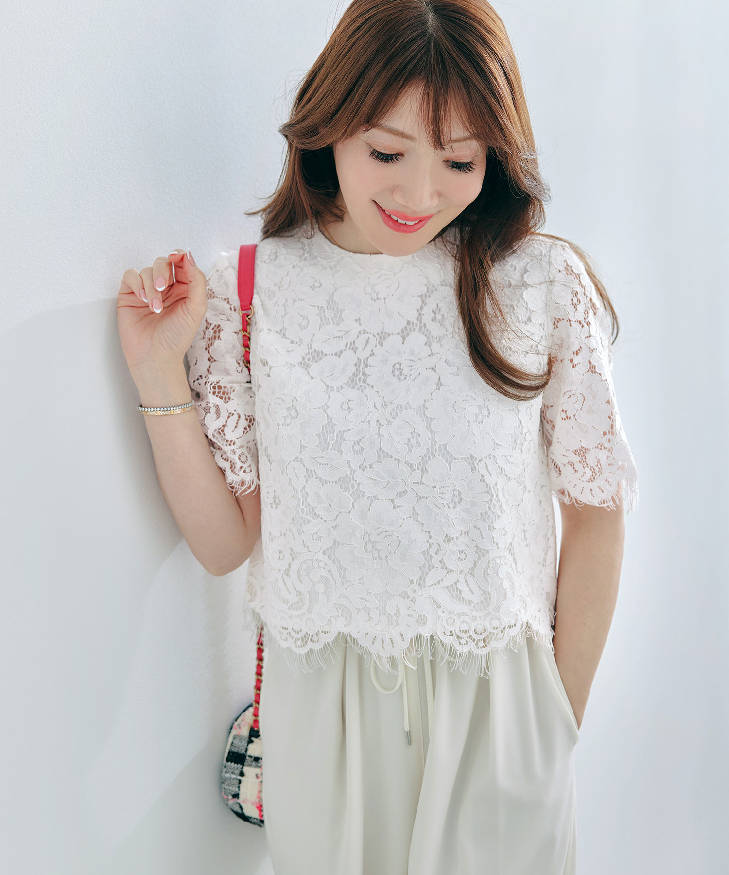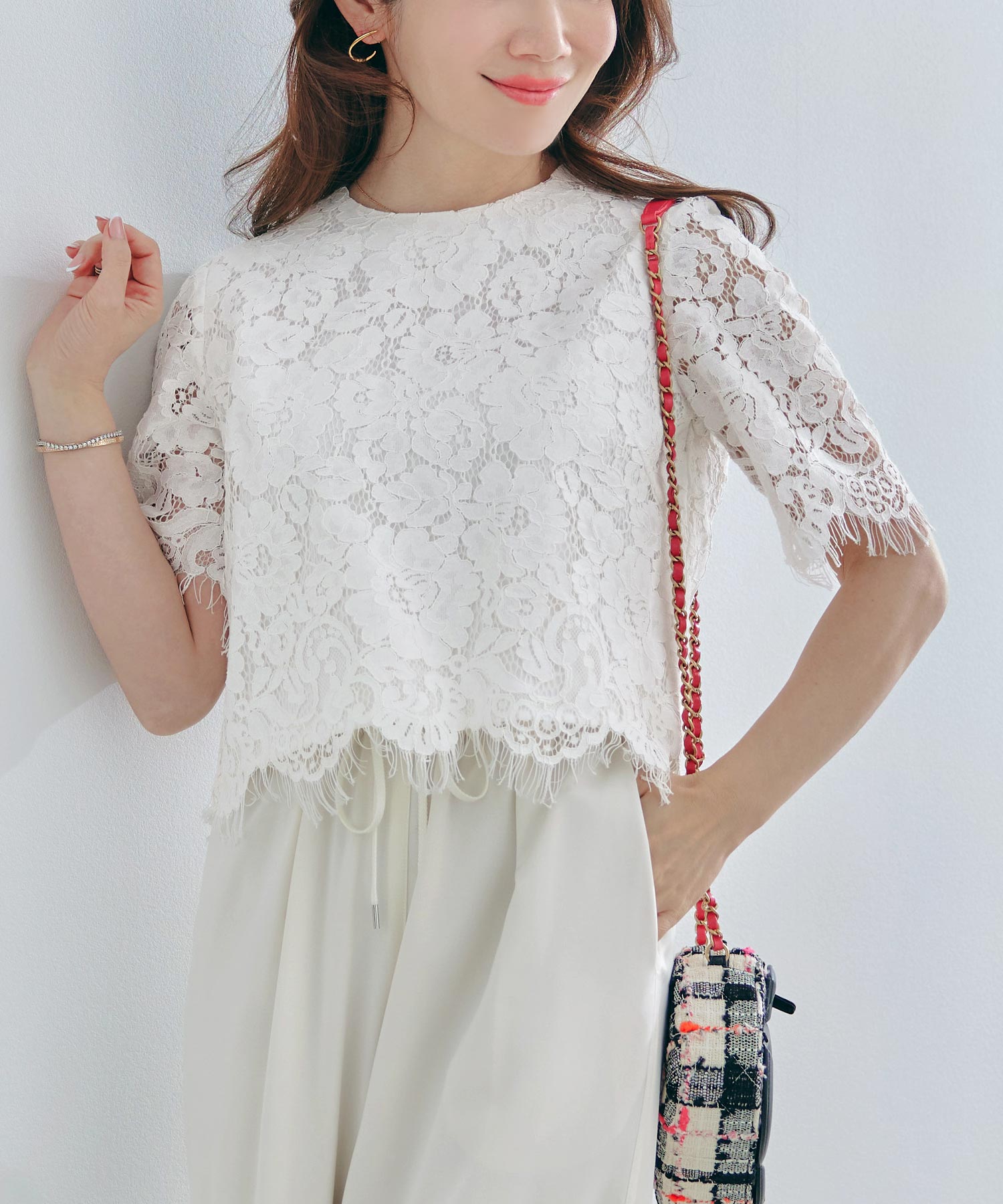 スカラップ レース ショート丈 ブラウス(Liala×PG)¥11,000(税込)