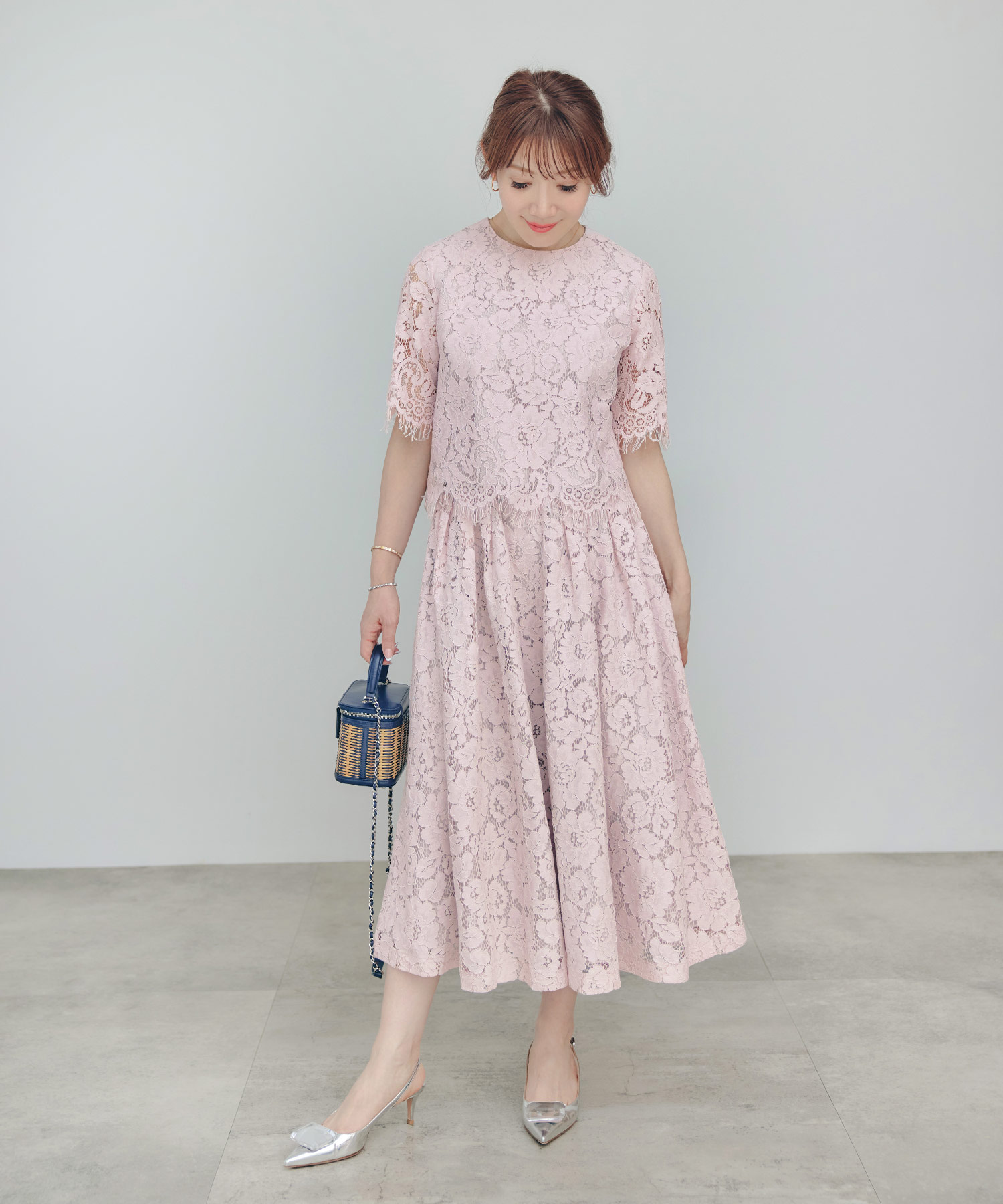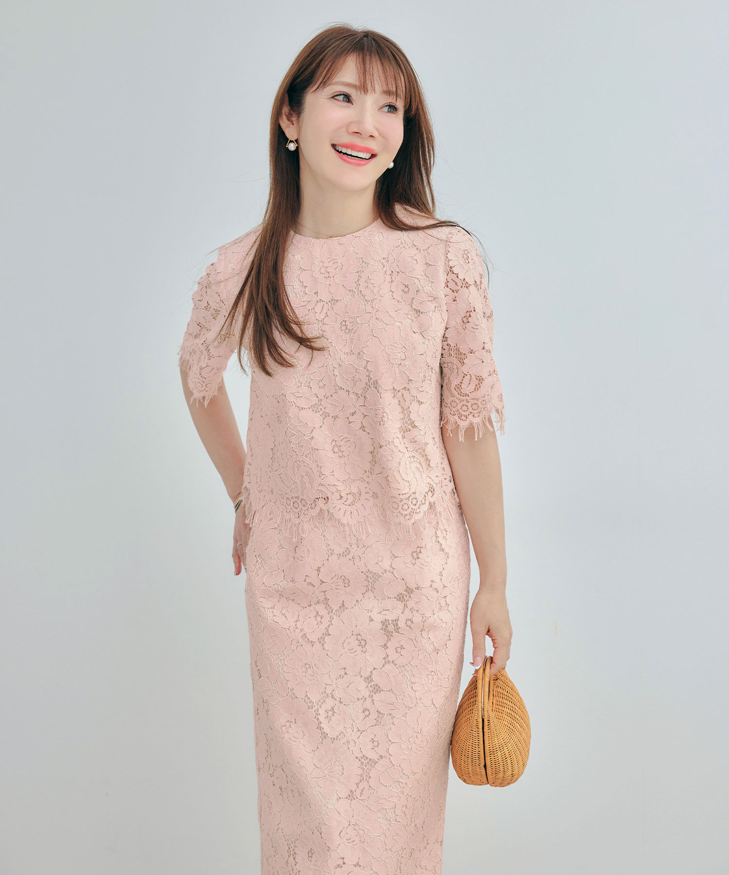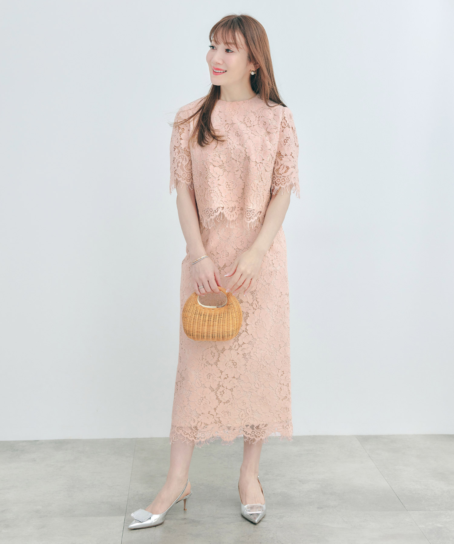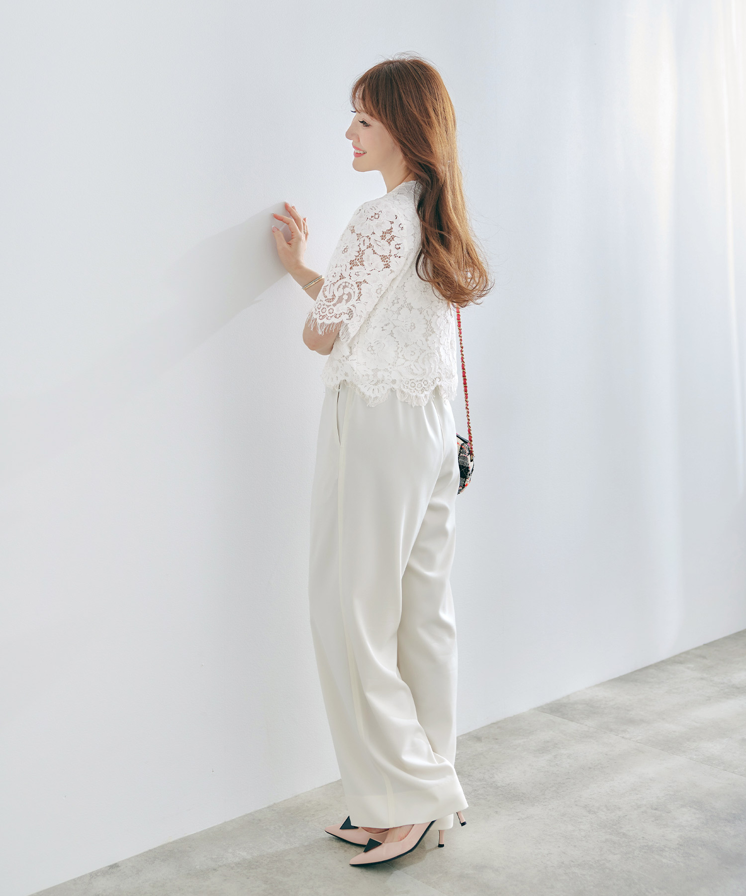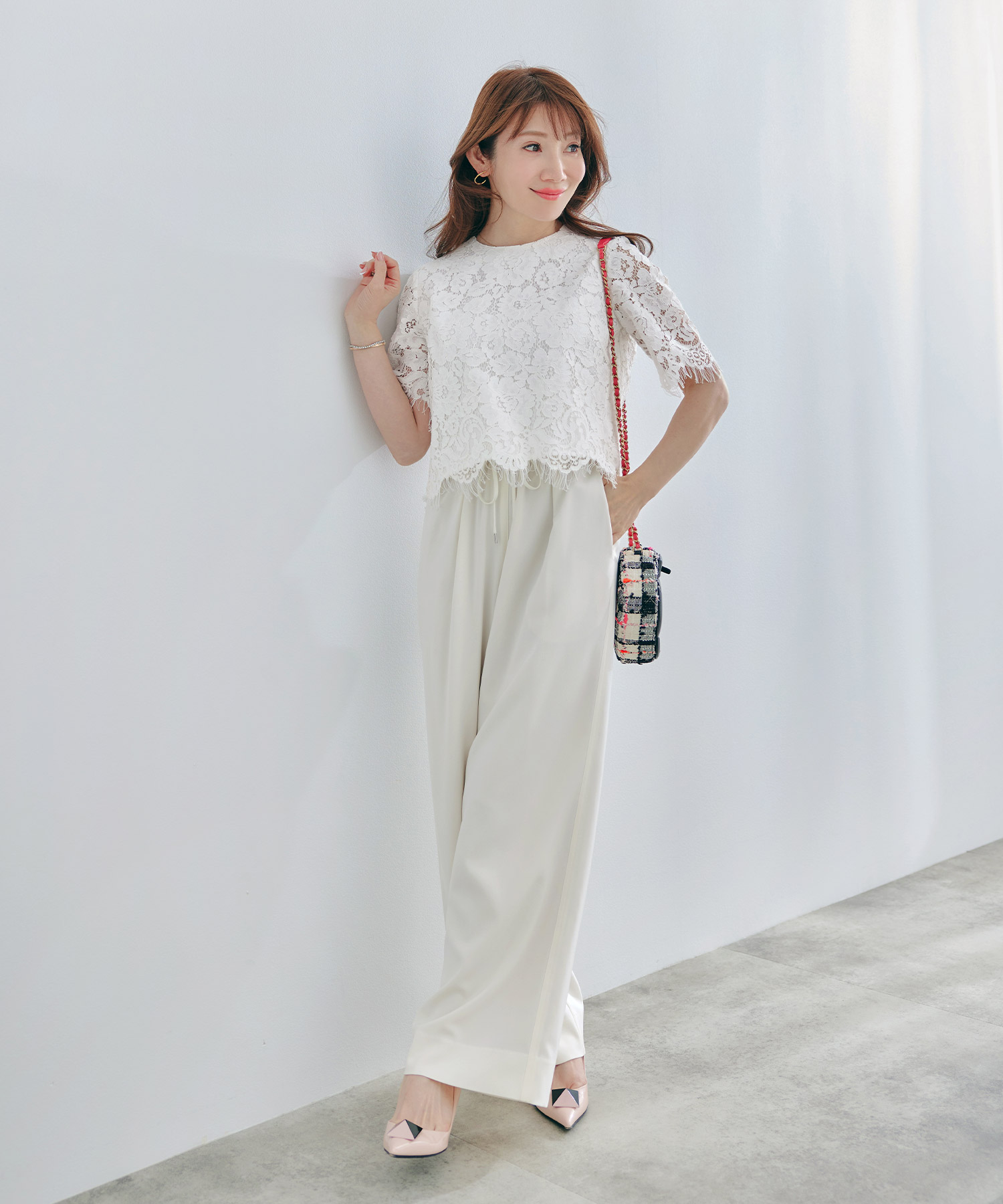 パートナーとの食事会に。華やぎを添えるレースセットアップで雨の日もエレガントに