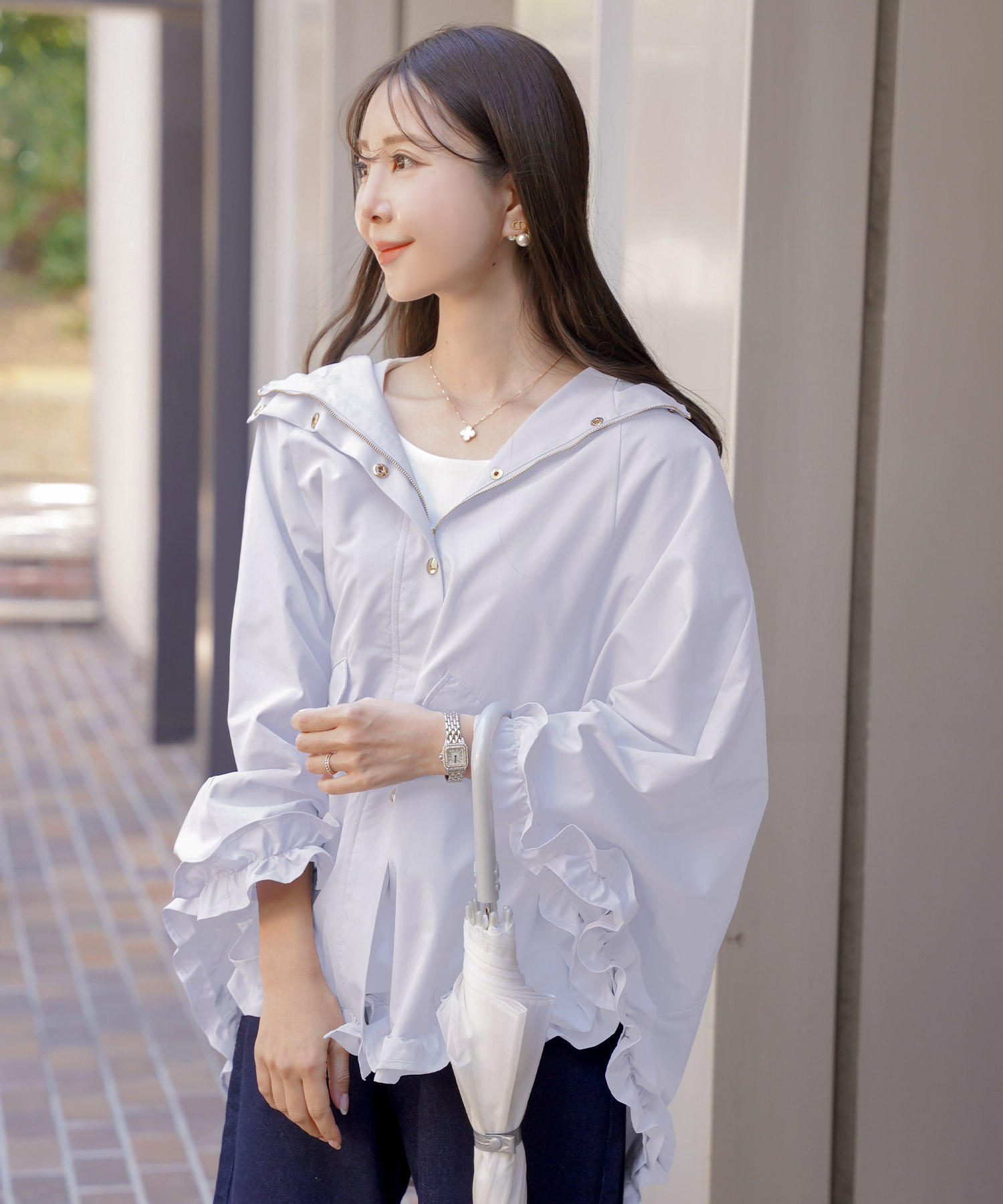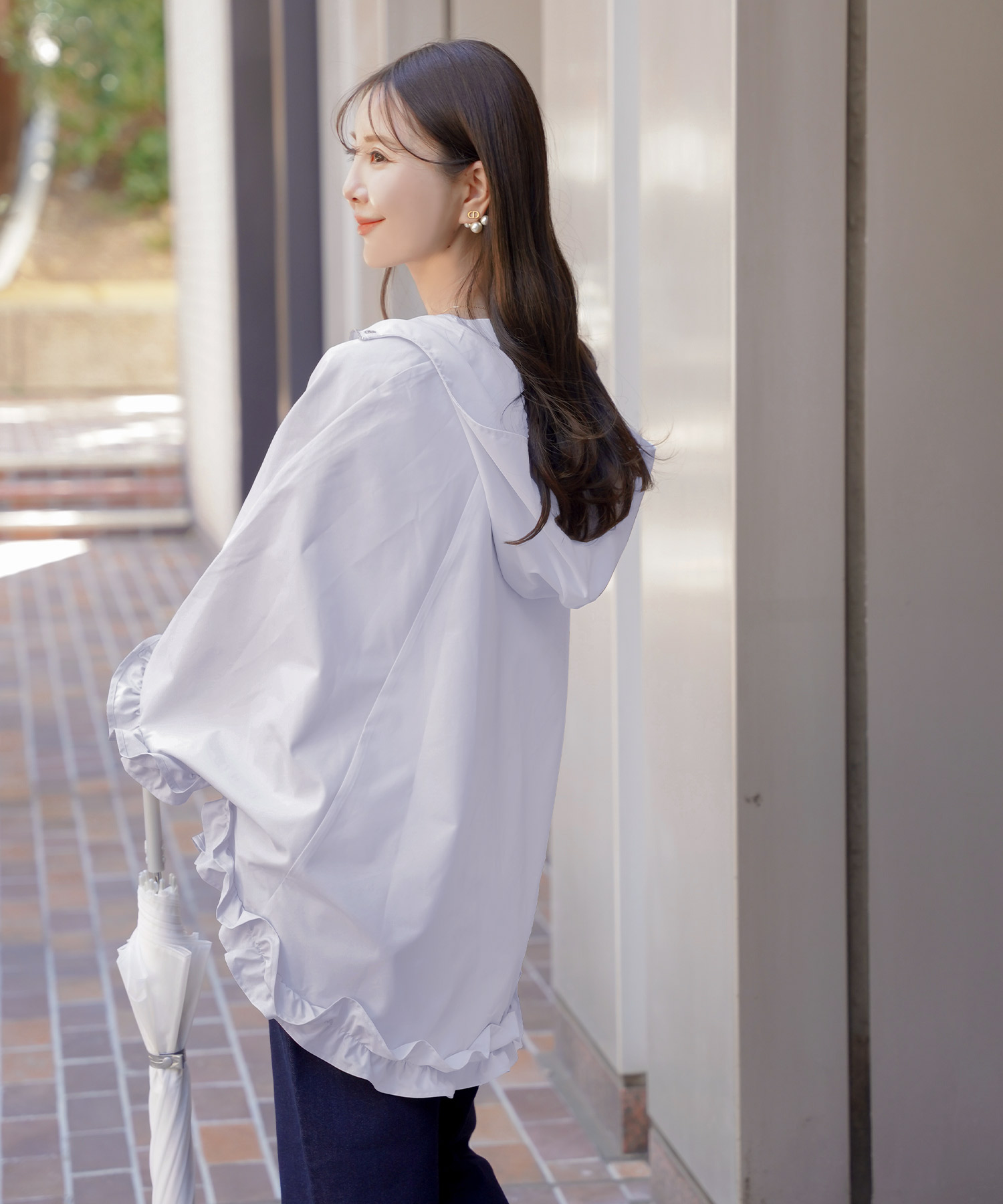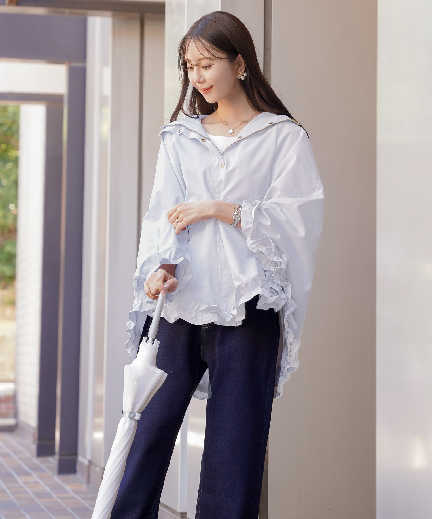 雨の日アウトドアデートに最適!女性らしさ際立つフリル付き撥水ポンチョ