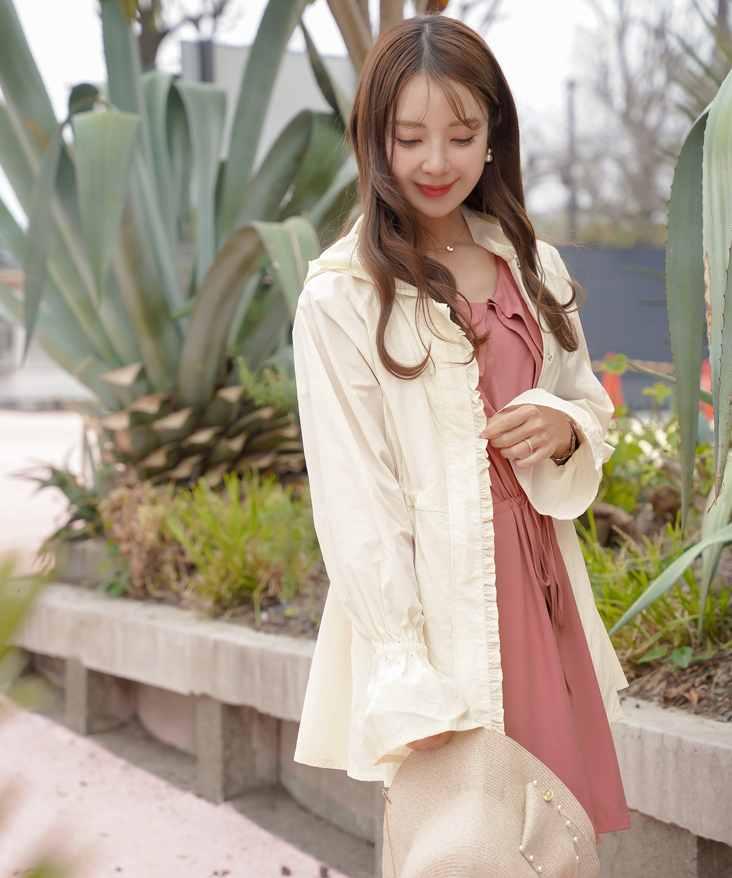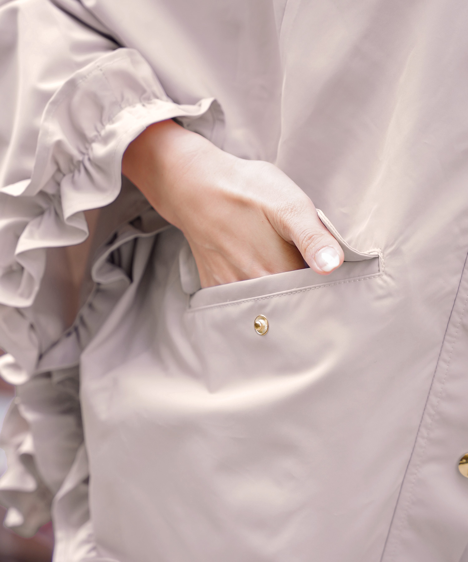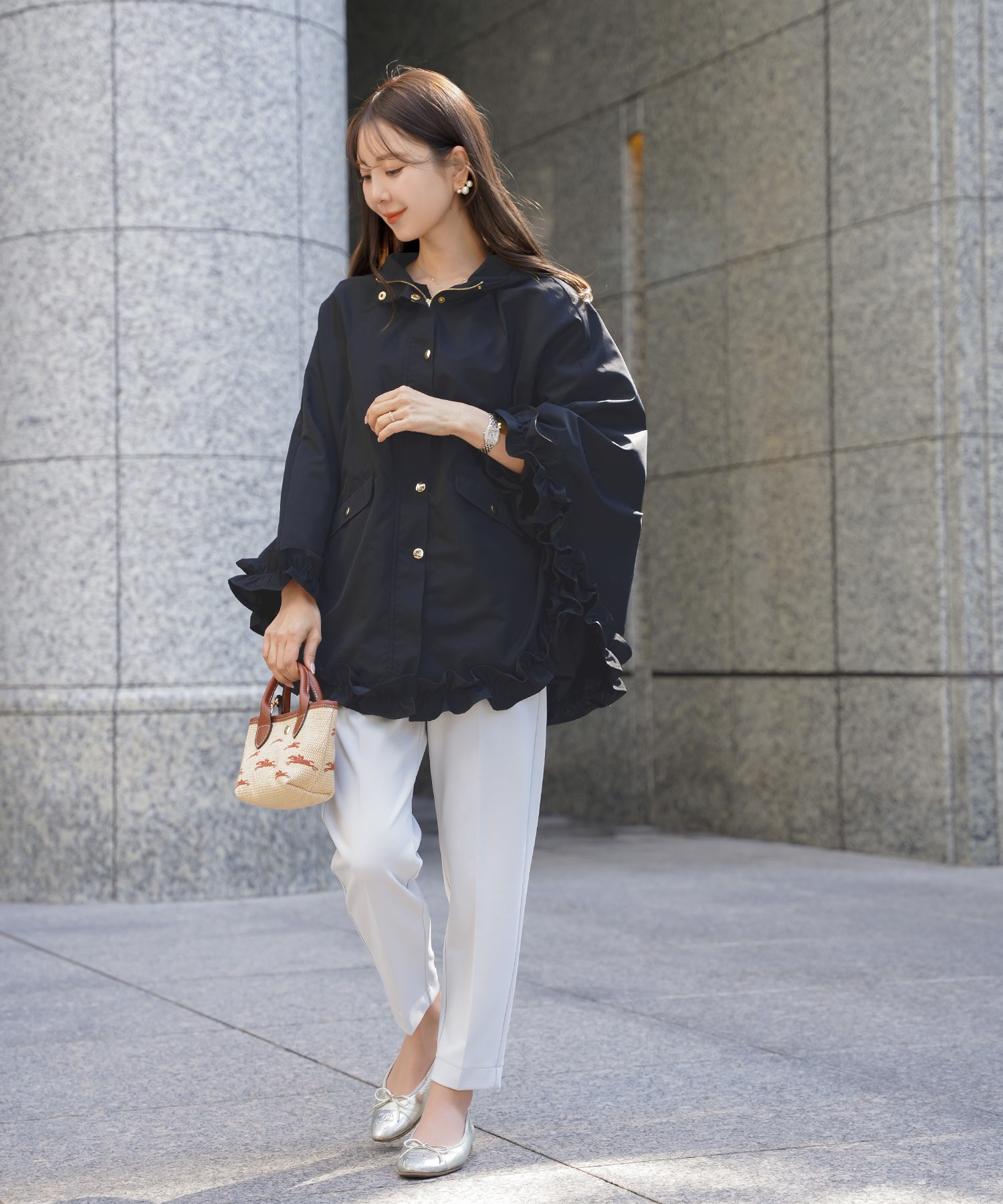 機能性と甘さを両立したアウターで、気分が沈みがちな雨の日もおしゃれに乗り切りましょう。