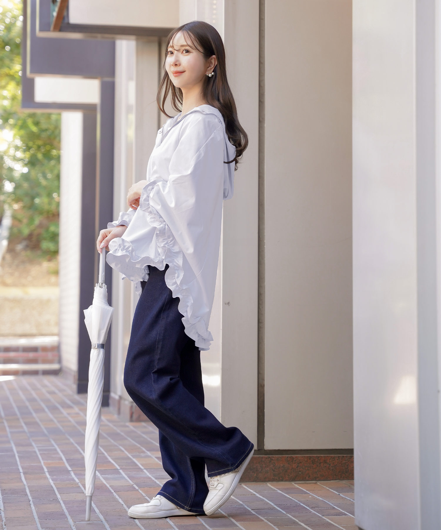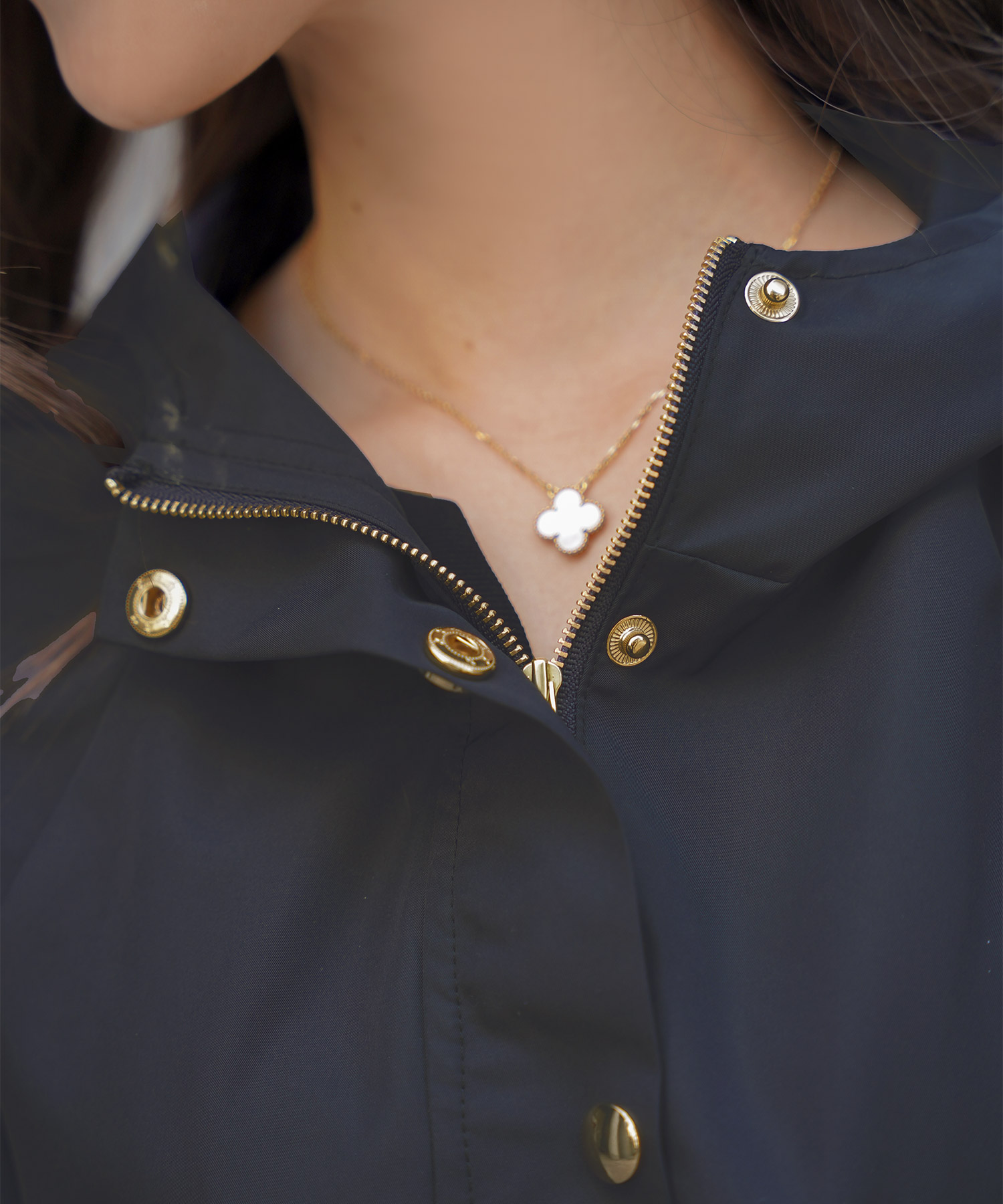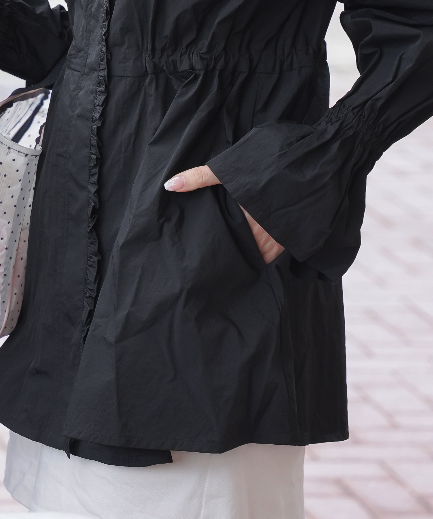 機能性と甘さを両立したアウターで、気分が沈みがちな雨の日もおしゃれに乗り切りましょう。