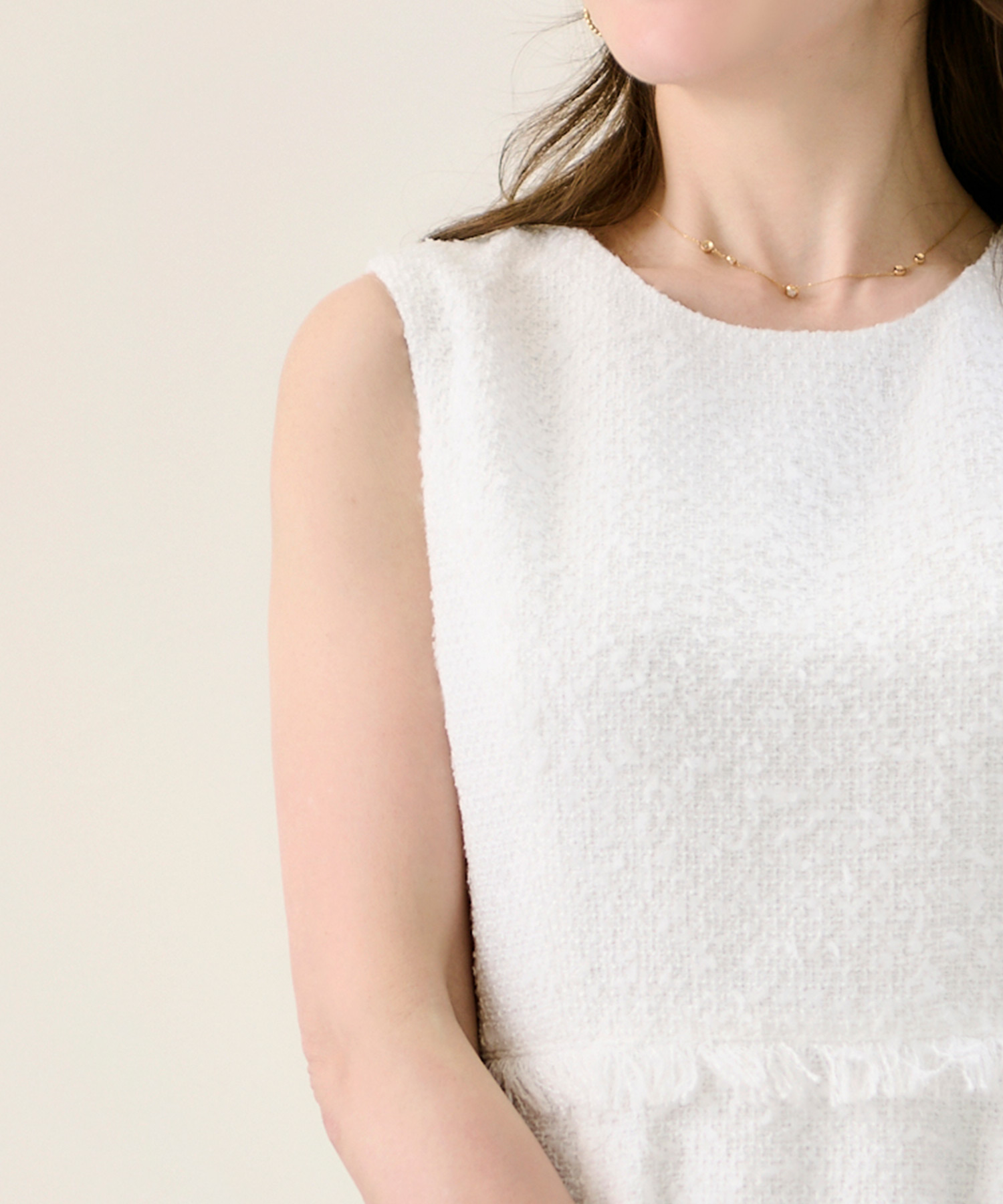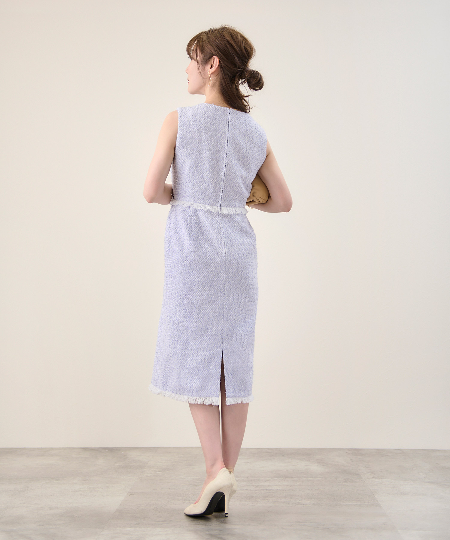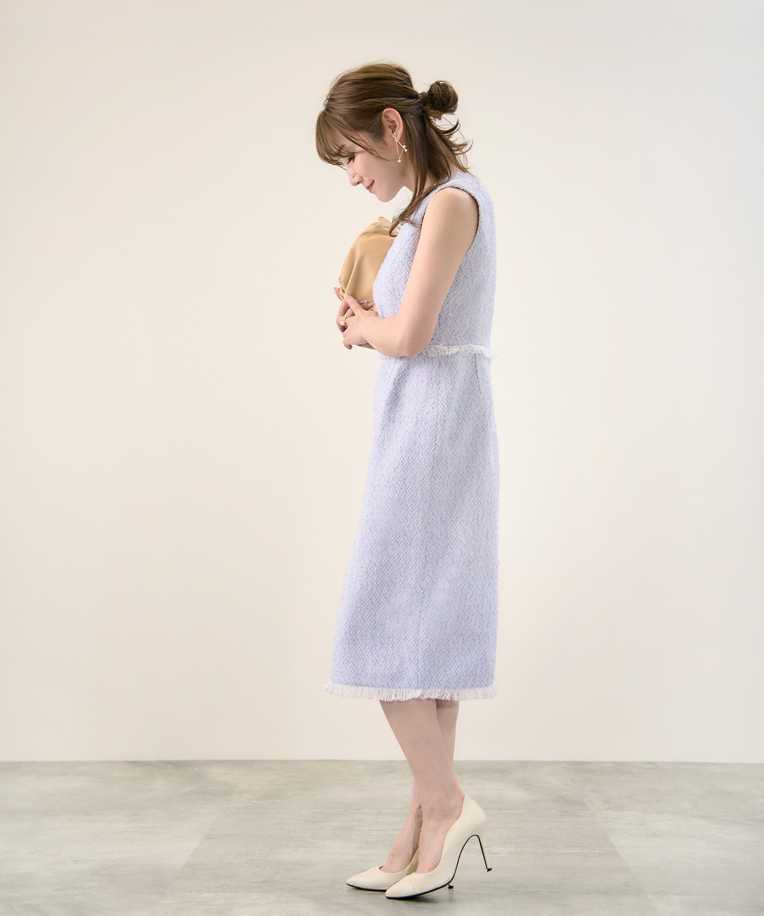 ■アイライン ウエスト切り替え ツイードフリンジ ワンピース (Prima Scherrer)¥16,390