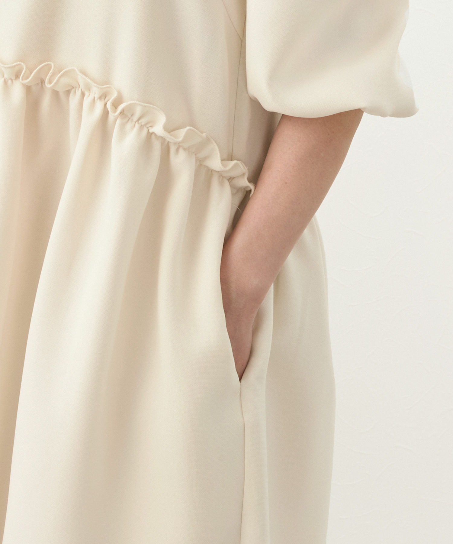 ■パフスリーブ フリル切り替え ワンピース (Liala×PG)¥9,900