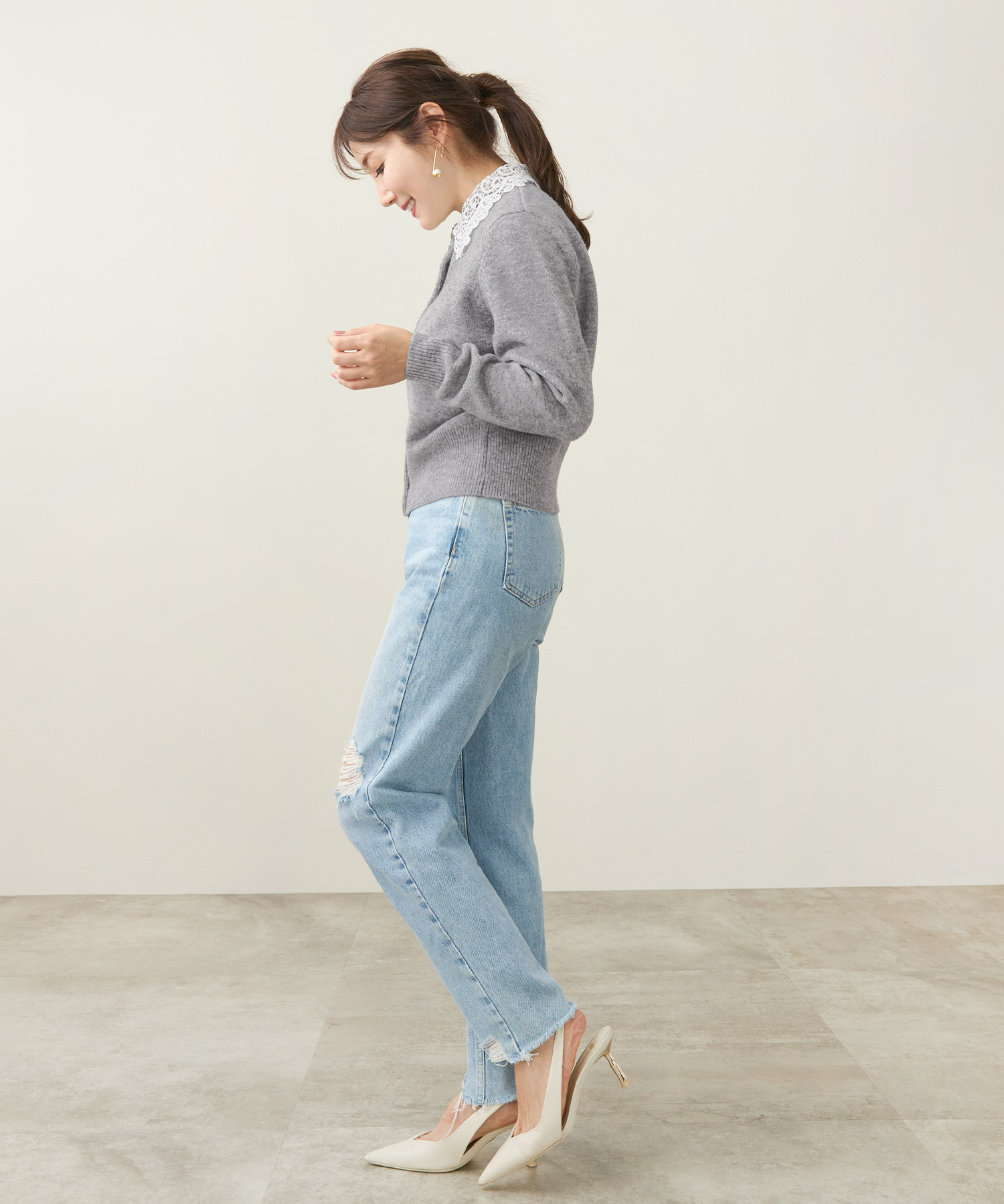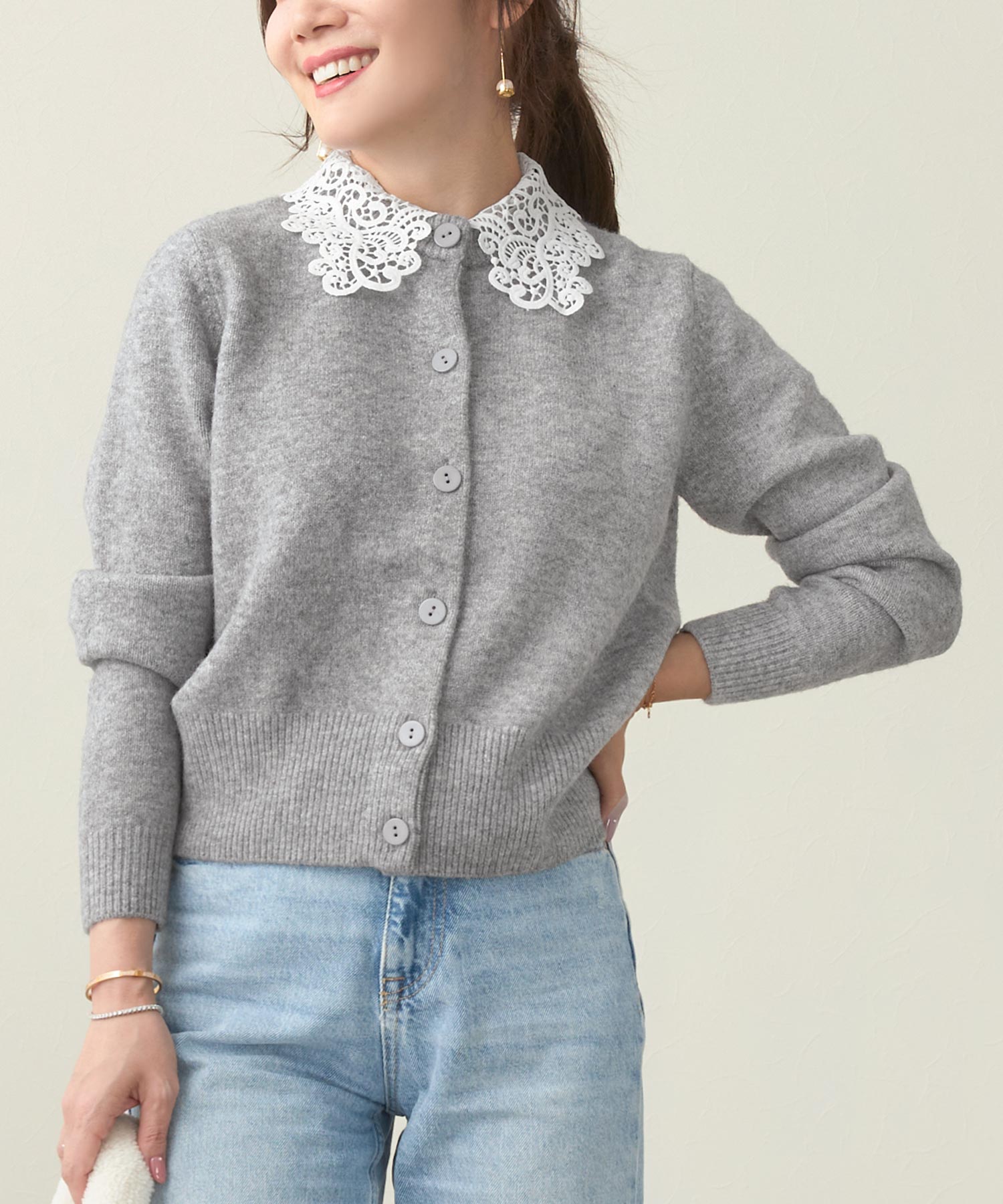 レース衿 取り外し可 ニット カーディガン 長袖(Liala×PG)¥9,900(税込)