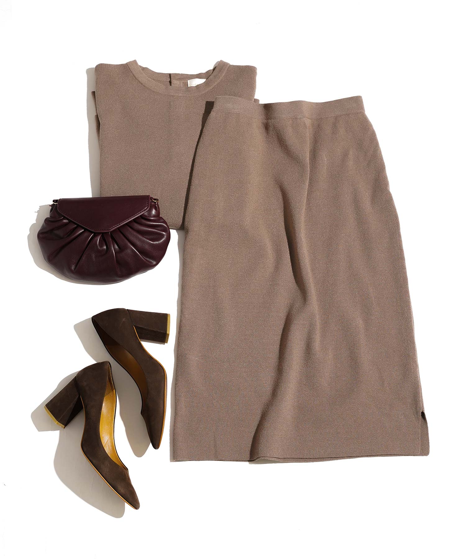 人気のエコヴェロ™シリーズをIラインスカートで表現。同じくエコヴェロ™シリーズ素材のトップスを合わせるとことで、セットアップで着るとよりきちんと感がアップします。