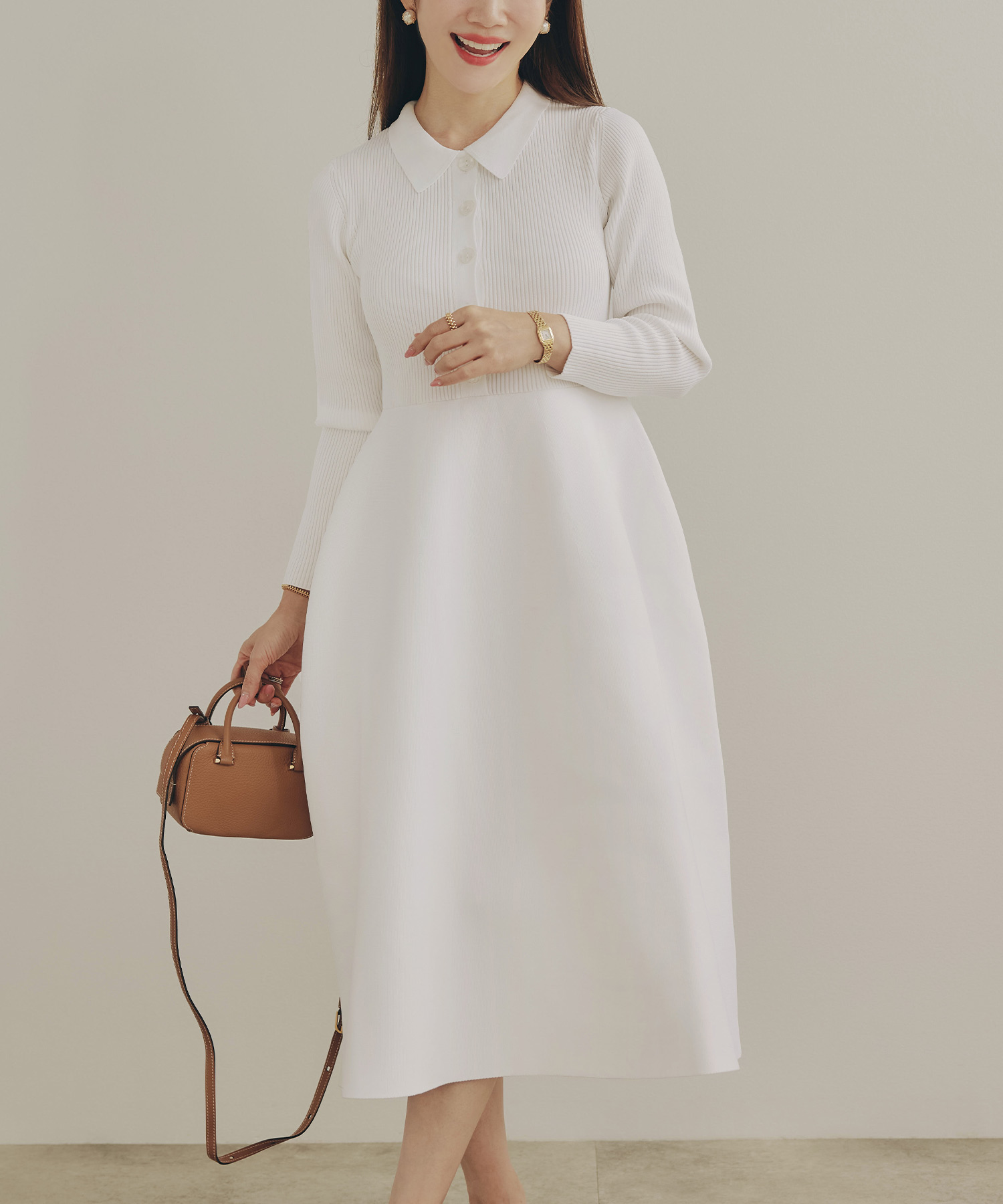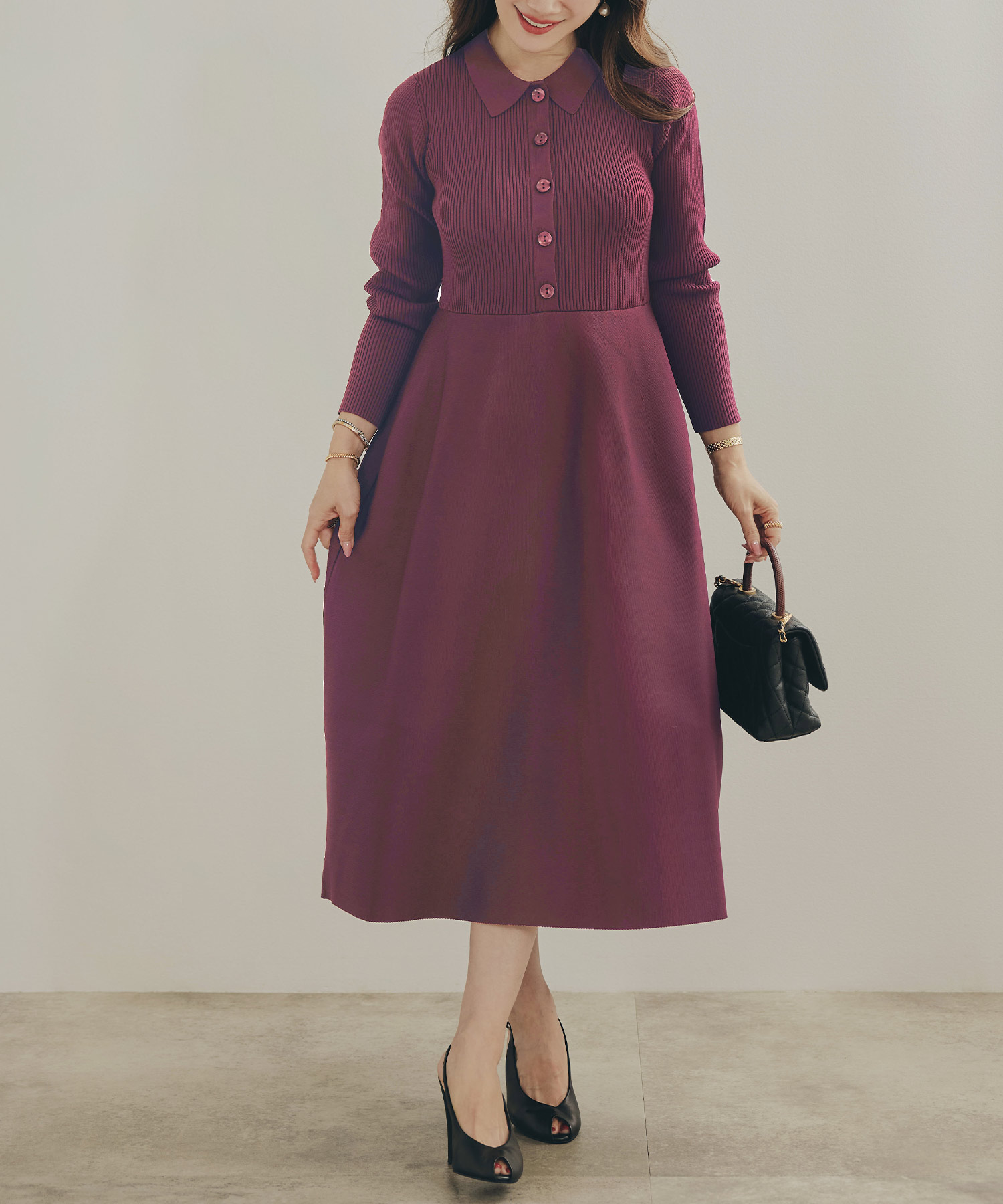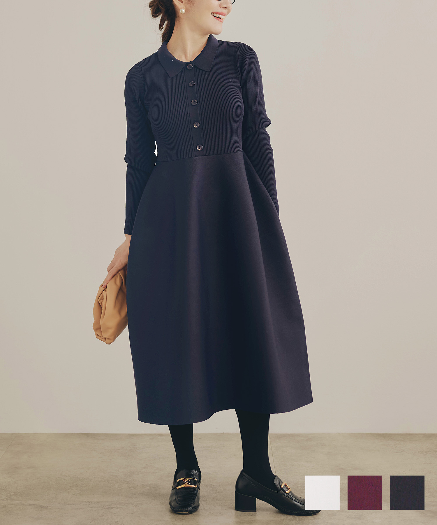 ミラノリブ 襟付き ニット ワンピース(Liala×PG)